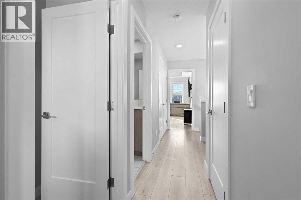 BEAUTIFUL OPEN FLOOR PLAN | EXTRA LARGE CORNER LOT | TONS OF NATURAL LIGHT ALL DAY!! This exquisite town house encompasses a modern palette with fabulous finishes and large living spaces perfectly suited for a family with children, empty nesters or a professional working from home! Situated on an EXTRA LARGE CORNER LOT, the back yard has room for a large family including a side yard for the pup's dog run, a large area for children to play...even a trampoline will fit easily here PLUS an area for DINING AND RELAXING AL FRESCO after a long work day! Let's step inside where a sizeable ENTRY WAY flows nicely into your main living area that features LARGE WINDOWS, HIGH CEILINGS and lots of room for furnishing in style! Enjoy cooking and entertaining in the well equipped kitchen boasting a GAS RANGE, WORKING ISLAND, AMPLE QUARTZ COUNTERS and STAINLESS STEEL APPLIANCES! Tall to the ceiling Thermofoil wood cabinets ( resist fading) with modern linear hardware add to the beauty of clean lines and ample storage capability while a CENTRAL OPEN DINING ROOM is the perfect hub for casual or formal dinners that easily seats 8-10 persons comfortably! The main floor gleams all day long in natural sunlight that beams through numerous windows front and back, easy to keep an eye on the kids playing in the fully fenced backyard while creating in the kitchen. The extra wide main level floor plan also allows for a SPACIOUS WORK AREA where business can be carried out in the privacy and comfort of your own home! The HALF BATH is conveniently tucked away for privacy. Upstairs is a comfortable and roomy place to unwind featuring a LUXURIOUS PRIMARY BEDROOM spacious enough for a king sized bed and side tables, beautiful large windows, sizeable walk in closet and fabulous 4 PIECE ENSUITE with DUAL VANITIES & HUGE GLASS & TILE SHOWER! The UPPER HALL LAUNDRY is convenient and serves as a great work area for folding and ironing...not just a tight closet housing a washer and dryer! Comp leting this floor are 2 ADDITIONAL LARGE BEDROOMS each encapsulated in natural sunlight and sizeable enough for bigger furniture! The 4 PIECE BATH is conveniently located right beside for easy preparation before bed and early mornings! The lower level basement is wide open for your creative development and offers ample space for any additional lifestyle elements. This beautiful home has so much to offer including WIDE PLANK LAMINATE FLOORS | NEWLY PAINTED THROUGHOUT | NEW ROOF ON HOUSE AND GARAGE (2025) | NEW SIDING (2025) | NEW EAVES TROUGHS (2025) | NEW GUTTERS (2025) | DOUBLE DETACHED GARAGE WITH BUILT-IN WORK BENCH! A PARK AND PLAYGROUND is just steps away for the kids to enjoy! Carrington offers a vast array of amenities just minutes from your door and major routes such as Stoney Trail and Deerfoot Trail are only minutes away for weekend escapes and a quick commute to downtown! Come take a look...HOME IS HERE! (id:6769)