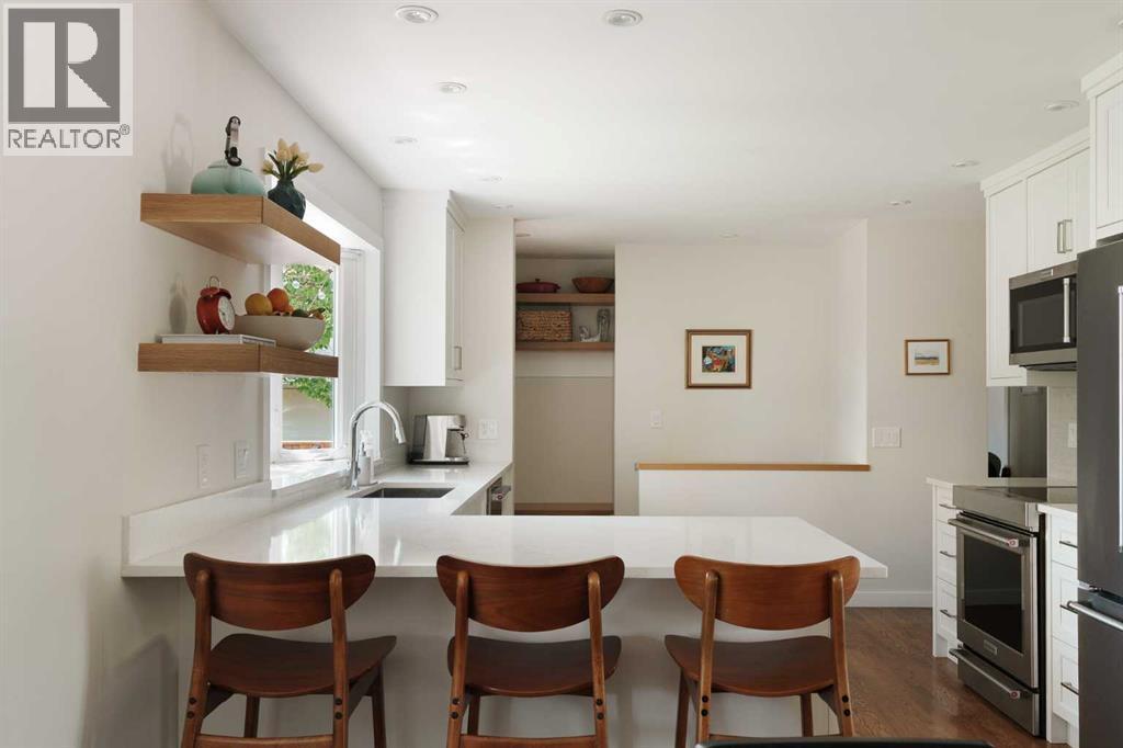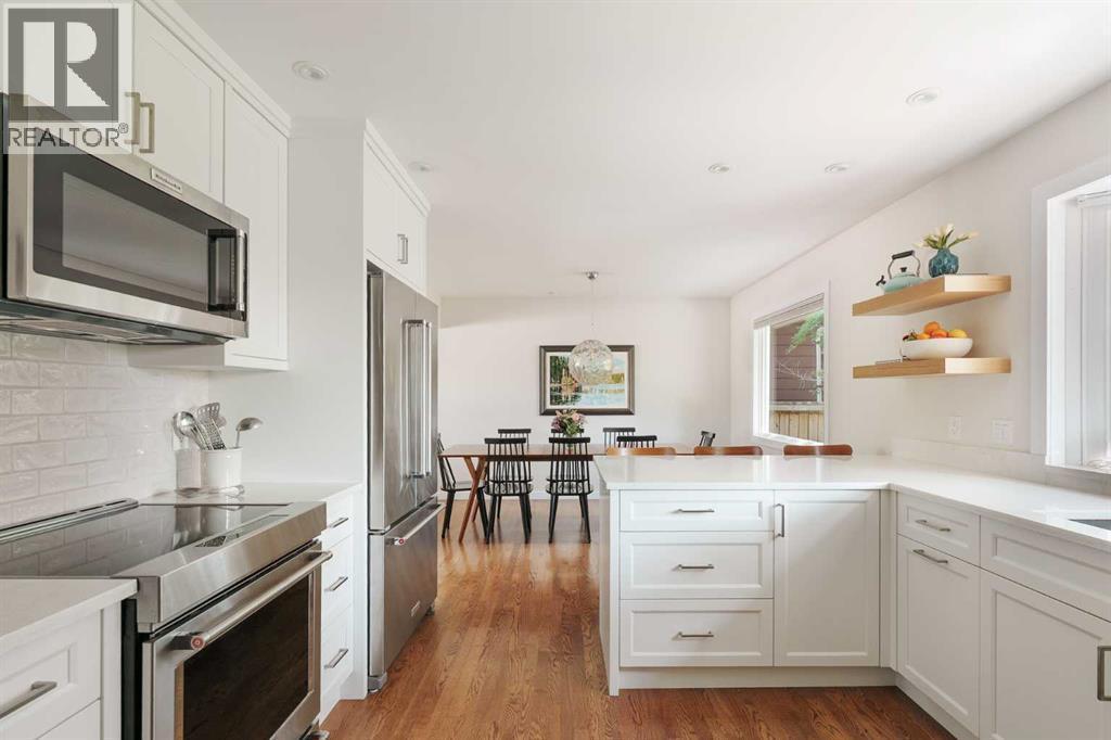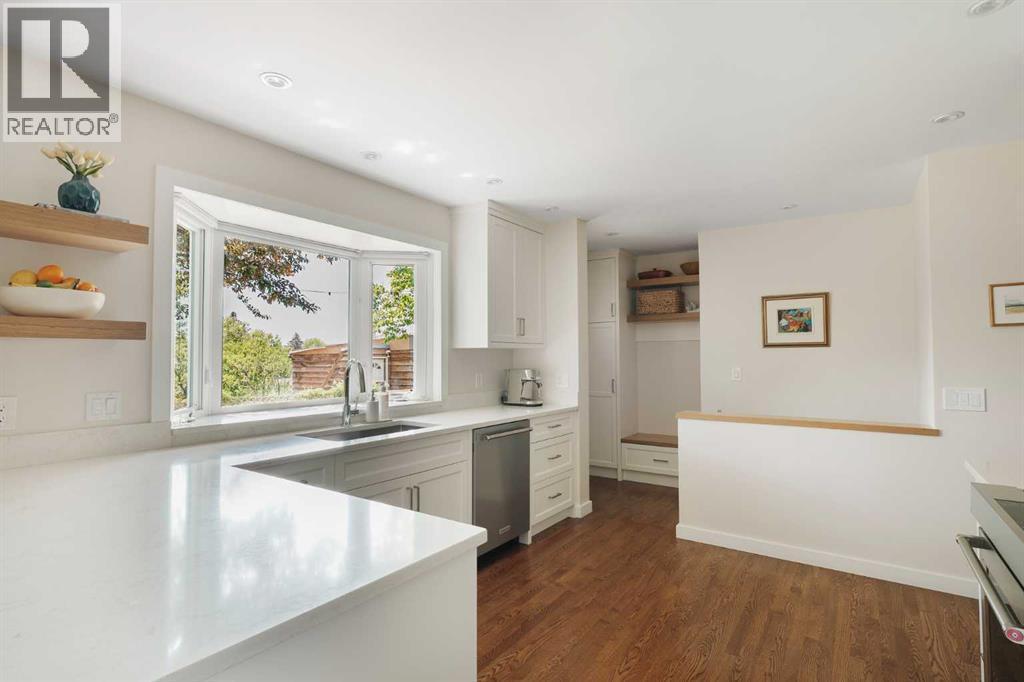 This updated bungalow situated in St. Andrews Heights, one of Calgary’s most established inner-city communities, spans a 6,049 sqft southwest lot. Inside you’ll see where timeless character meets elevated modern finishes. The redesigned kitchen features a peninsula layout, quartz countertops, stainless steel appliances, a garden window, white cabinetry, glossy subway tile, and open shelving. A custom mudroom area with built-in cabinetry sits just off the kitchen. Hardwood flooring flows across the main level, leading to three well-appointed bedrooms and a renovated full bath with quartz counters, coordinated cabinetry, and a sleek tiled shower. The lower level offers a spacious, inviting rec room anchored by a tiled gas fireplace, along with a combined laundry/bathroom area for added practicality. Outside, the private yard is framed by mature trees and features a hardscaped patio ideal for relaxed outdoor living. Set on a quiet, tree-lined street, this 1,271 sq ft bungalow enjoys a premier location steps from the Foothills Medical Centre, Alberta Children’s Hospital, University of Calgary, and McMahon Stadium. Residents benefit from nearby schools, such as Maria Montessori School and Briar Hill Elementary, off-leash parks, Bow River pathways, tennis and basketball courts, a skating rink, and sledding hill. With a 10-minute commute to downtown, easy access to local shops and restaurants, and a direct route to the mountains, this home offers an exceptional blend of lifestyle, convenience, and comfort. (id:6769)
