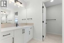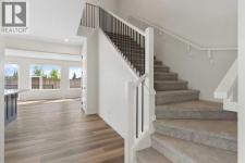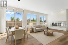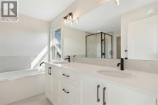From the moment you step inside the Elbow by Cedarglen Homes, you feel it - this is a home designed for connection, comfort, and possibility. With over 2300 square feet of thoughtfully crafted living space, every detail balances style and function for the way modern families live today. The main floor welcomes you with an open flow that makes gathering effortless. At the heart of the home, the kitchen anchors the space with its striking two-toned cabinetry - bright white along the perimeter contrasted by a bold, dark island that doubles as a casual dining hub. Sleek black hardware, upgraded quartz countertops, and a central island invite conversation while meals are prepared. As the buyer of this home, you'll get to choose your own appliances at the builder's supplier with an allowance of $8954. Just beyond, the great room glows with the warmth of an upgraded fireplace tile feature, while the dining nook spills seamlessly onto the deck - perfect for summer nights spent entertaining under the stars. What sets this home apart is the versatility of a main-floor bedroom tucked just off the foyer. Whether for overnight guests, aging parents, or as a private home office, it offers comfort and convenience rarely found at this price point. A nearby powder room completes this welcoming main level, with the front-attached garage adding everyday practicality. Upstairs, the layout shines for family living. The primary suite is a retreat all its own, privately positioned at the back of the home with a spa-inspired ensuite featuring dual sinks, a walk-in shower, and a generous walk-in closet. Two additional bedrooms at the front share a full bathroom, while a central bonus room creates a flexible hub for movie nights, homework, or quiet reading. Laundry is also upstairs exactly where you need it most. The basement is unfinished with a side entrance - waiting for your creative touch. Set in the prestigious community of West Grove Estates in Calgary’s West District, this home pairs timeless design with an address that truly elevates your lifestyle. Tree-lined streets, nearby parks, and top-rated schools create a sense of community, while shopping, dining, and easy access to downtown or the mountains make every day more convenient and more inspiring. With finishes like warm luxury vinyl plank on the main floor, cozy carpet upstairs, and designer accents throughout, the Elbow is built not just to live in, but to grow into - a place for milestones, memories, and everything in between. Don’t just imagine the lifestyle, come experience it. The Elbow at West Grove Estates is ready to welcome you home. *Some photos are virtually staged* (id:6769)