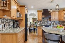 *Open House Saturday November 22nd 1:00 - 3:30pm* Perched high on Signal Hill, this gem of a home blends quiet cul-de-sac living with unbeatable convenience. A grand two-storey foyer sets the tone, featuring a sweeping curved staircase and a brass chandelier with a classic Ralph Lauren aesthetic. An arched entry leads to the effortlessly elegant living and dining rooms, where a vaulted ceiling and fireplace create an inviting, graceful space that you’ll love sharing with your friends. Generous in size, the dining room accommodates a large table and credenza with ease. The heart of the home is the kitchen, where two-toned cabinetry, granite counters and an island with seating flow into a casual dining nook and a welcoming family room anchored by a fireplace and book cases. A tucked-away office with wood wainscotting and a striking powder room with designer wallpaper add a touch of county-club sophistication. Upstairs, the standout is the exceptionally large primary retreat, complete with a cozy sitting area, fireplace, bay window, and views toward the reservoir. Wake up to sunrise vistas from this private corner, ideal for lingering over Sunday coffee. The ensuite offers a double vanity with makeup counter, soaker tub, water closet, and walk-in closet. Two additional bedrooms and a full bath complete this level.Built for entertaining, the lower level includes a spacious media area with fireplace, a games room, a large bar with wine storage and bar fridges, a gym, plus a fourth bedroom and full bath ideal for guests. The beautifully landscaped, expansive yard features mature trees, tiered decks, a fire pit, hot tub, and lovingly tended flower beds filled with tulips, peonies and hydrangeas. Recent upgrades include new hardwood, carpet, furnace and A/C (2021). Perfect for families with teens or older kids, this timeless home offers space, style, and an exceptional location just steps to West Hills’ shops, dining, schools and parks. Come discover a home that is both el evated and welcoming. Your next chapter begins here. (id:6769)