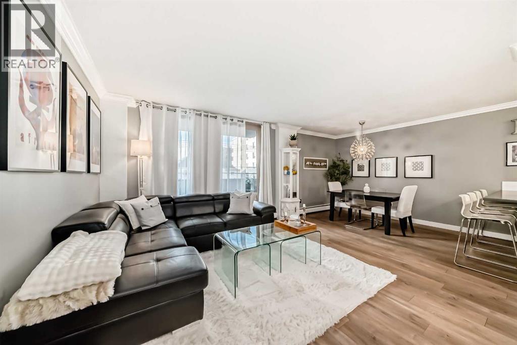Get ready to fall in love! Absolutely STUNNING home! FULLY RENOVATED HOME! Sunny South Facing Home | End Unit | One of the few complexes in this area WITHOUT Post Tension Cables. Proudly welcoming you home to Manor House – this well-cared for, well managed complex features this STUNNING 2-bedroom home that has been transformed and modernized, in the desirable Beltline neighbourhood – just steps away from all the action! Your new home is ideally tucked away in a quiet corner. Inside you will instantly appreciate the new beautifully elegant luxury vinyl plank flooring throughout the home which matches the modern décor throughout. The home features exceptional updates and upgrades throughout, which start out in the striking kitchen. The kitchen has been completely renovated, highlighted by all-new cabinetry and stunning Quartz gun metal grey countertops, with undermount sink. Counter level seating awaits, perfect for visiting with friends and family as you entertain from your exquisite gourmet kitchen. Updated SS appliances await. There is ample space for a deep freeze IN your kitchen, without losing any counter or cupboard space! Just off the kitchen is a large dining room, which can easily host a sizable dining table. This home features beautiful crown moulding throughout; as well as beautifully updated lighting throughout. The large stunning living room is an exceptional space, large enough to accommodate all of your furniture, providing plenty of space to relax or provide the ideal space to entertain friends and family! The tour continues with 2 large closets, and an updated & stunning 4-pc bathroom. The Primary bedroom is one of the largest you will find – hosting a King size bed, dresser and nightstands with ease, while still allowing for ample space leftover. The Primary closet features custom built-ins, easily organizing your wardrobe. The secondary bedroom is of excellent size and is the ideal place to host your home office, guest bedroom or use as a Yoga spac e! Updated vinyl windows allow your home to be energy efficient year-round! The large (11.5x 5 ft) balcony is ready for your enjoyment – offering endless sunshine with a sunny south facing view, perfect to enjoy in the warmer months! There is FREE laundry located on every floor of this superb building. Your new home comes with one assigned secure parking stall + additional storage locker for your items you don’t use every day. There is so much to love about this unique home including its location! A true 'walker’s paradise' with a walk score of 99/100 – it doesn't get any better than this! You can walk or bike easily to work, and take in and enjoy the multitude of local shops, restaurants, pubs, grocery stores, and so much more! (id:6769)