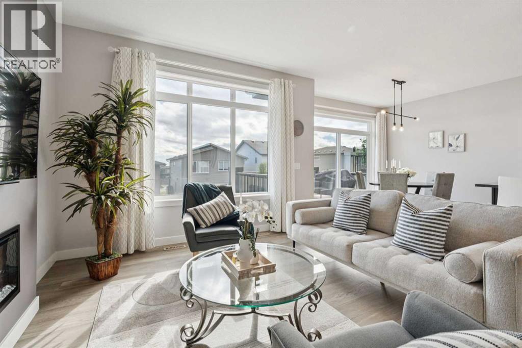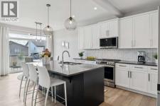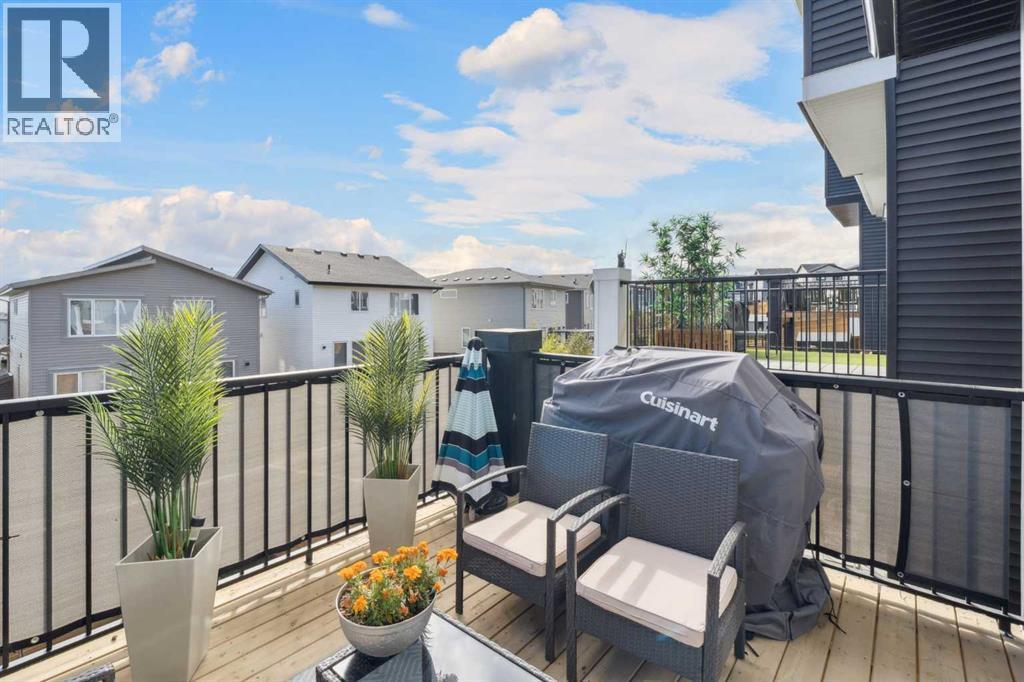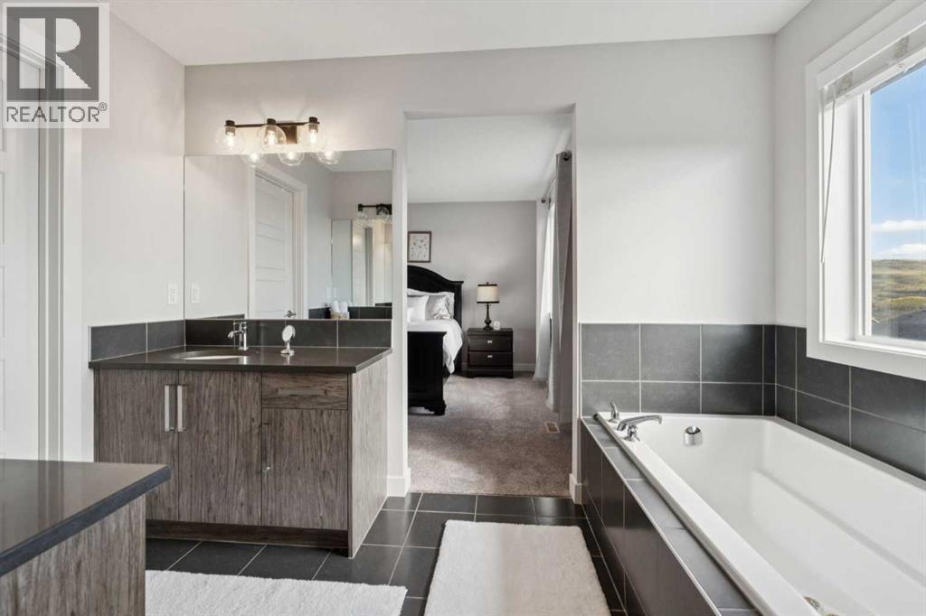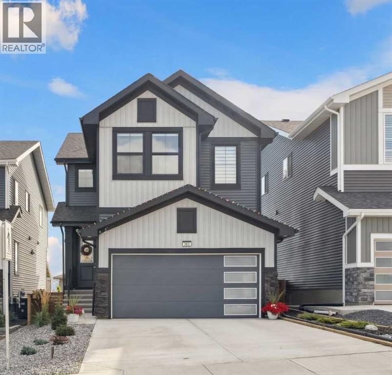 Experience refined living in this beautifully designed 2023-built home, where timeless style meets everyday comfort. The heart of the home is a bright, luxurious WHITE KITCHEN featuring QUARTZ COUNTERTOPS, STAINLESS STEEL APPLIANCES, DESIGNER TILE, and elegant finishes throughout—perfect for both entertaining and daily living.Upstairs, the stunning primary bedroom is a true retreat offering sweeping VIEWS of Cochrane’s Glenbow Valley and a spa-inspired 5-PIECE ENSUITE complete with a SOAKER TUB, STAND-ALONE SHOWER, DOUBLE VANITY, and generous WALK-IN CLOSET. A stylish BONUS ROOM with a TRANSOM WINDOW bringing in natural light and architectural charm, while two additional bedrooms share a beautifully finished 4-PIECE BATHROOM. The LAUNDRY ROOM conveniently completes this upper level.Thoughtful details continue throughout, including a welcoming BUILT-IN BENCH at the entry, QUARTZ COUNTERS in every bathroom, and an elegant ELECTRIC FIREPLACE creating a cozy focal point in the main living area.The UNFINISHED WALKOUT BASEMENT offers endless potential with a BATHROOM ROUGH-IN and direct access to a PRIVATE LOWER DECK. Outside, enjoy your fully fenced EAST-FACING BACKYARD, lined with trees and featuring two outdoor living spaces—an UPPER DECK with PRIVACY SCREEN and a LOWER PATIO, both with STUNNING VIEWS of the valley.Located within walking distance to the river valley, parks, schools, and amenities, with quick access to the Rec Centre, shopping, and more, this home offers elevated living in a peaceful, scenic setting—a perfect blend of luxury, lifestyle, and location. (id:6769)