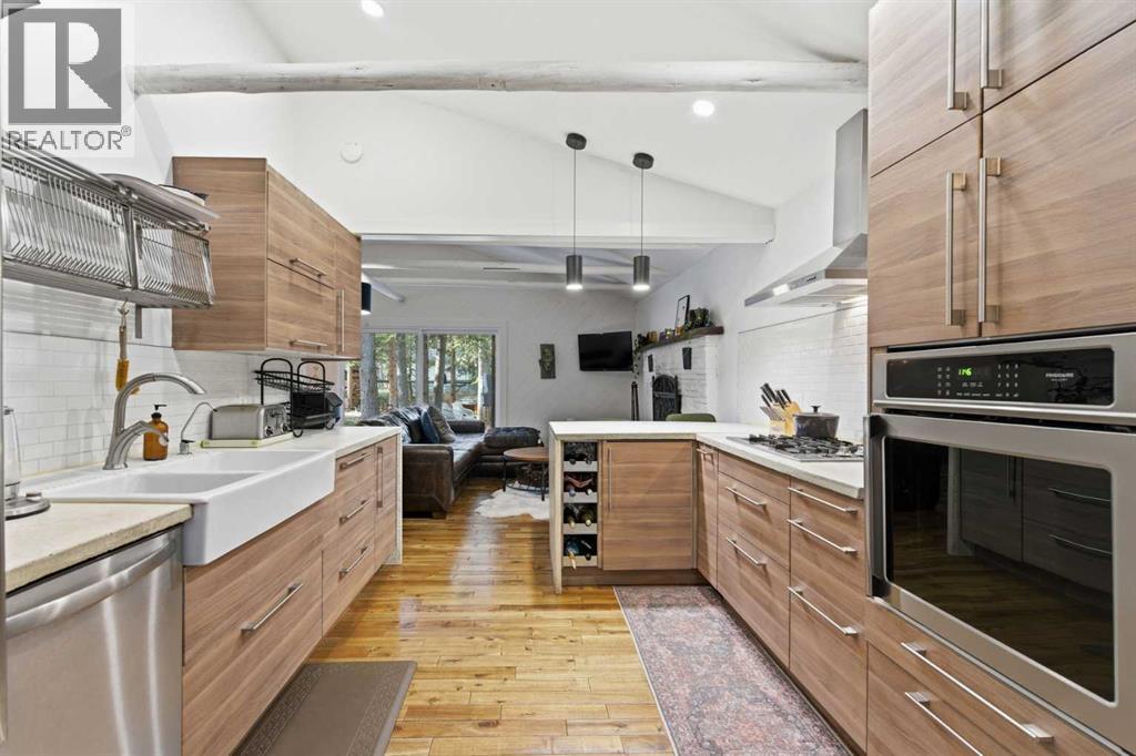Discover exceptional privacy and natural beauty in the heart of Bragg Creek. Tucked away on a serene one-acre parcel, this charming property offers the perfect blend of peaceful country living and modern convenience—just a short walk to the river, pathways, shops, and restaurants. And a quick 20-minute commute to Calgary. Thoughtfully updated over the years, the home features a welcoming main floor with a newer kitchen showcasing stainless steel appliances, abundant workspace, and warm cabin-inspired details that honor the property’s history. A sun-filled flex room with patio access provides an ideal office or creative space, while a separate main-floor area with its own entrance and full bath offers a perfect retreat for guests. Upstairs, three comfortable bedrooms and a NEW 5-piece bath provide a quiet place to unwind. Whether enjoying morning coffee on the deck or entertaining in the spacious yard, you’ll feel immersed in nature while remaining connected to all that this vibrant hamlet has to offer. With a brand new double detached garage and new municipal water and sewer connections, this is more than a home—it’s a gateway to the unmatched lifestyle, outdoor adventure, and community spirit of Bragg Creek. (id:6769)