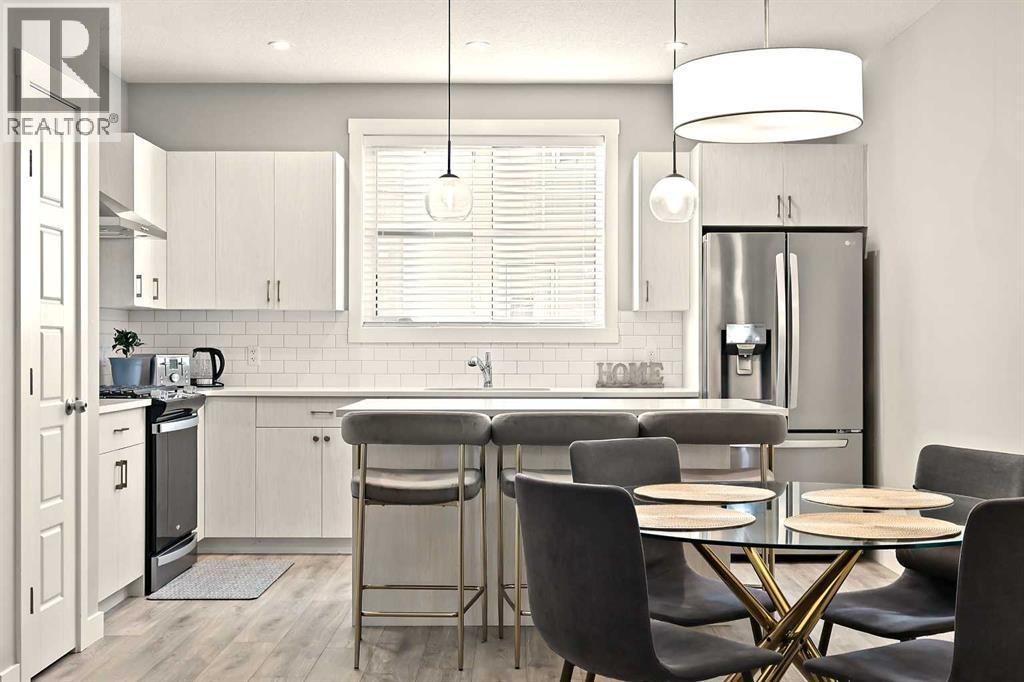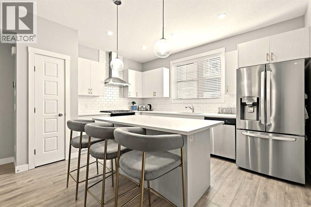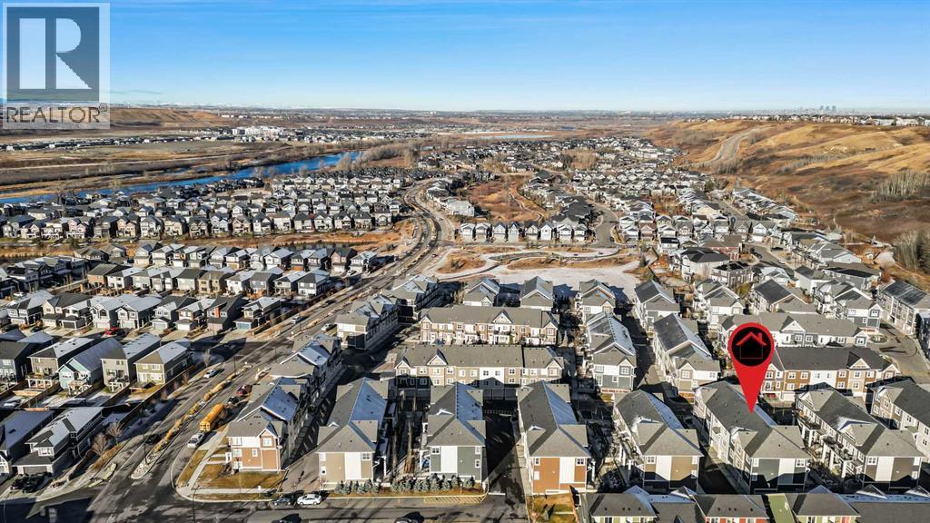 Welcome to the serene and sought-after community of Riverstone in Cranston, where nature becomes your neighbour and the Bow River’s beauty is just steps from your door. Framed by lush green spaces, parks, playgrounds, and an endless network of scenic walking paths, this newer-built 2-storey townhome offers the perfect blend of tranquility and modern convenience. Boasting nearly 1,200 square feet of thoughtfully designed living space, this home welcomes you with a bright, airy colour palette and an inviting sense of openness. The expansive main floor showcases stunning barn-style wide plank luxury vinyl flooring that flows seamlessly from front to back, tying the entire space together with both durability and style. The spacious living room transitions effortlessly into the designated dining area, creating the ideal layout for everyday living and entertaining. At the heart of the home, the gorgeous kitchen features an oversized stone island with flush eating bar, quartz countertops, timeless subway tile backsplash, a designer chimney hood, sleek stainless steel appliances, a convenient pantry, stylish pendant lighting, and impressive 9-foot ceilings that enhance the overall airy ambiance. A perfectly placed half bath completes the main level. Upstairs, you’ll find two beautifully appointed primary bedrooms, each offering its own private 4-piece ensuite—both complete with full tubs—making the upper level ideal for guests, roommates, or family members seeking their own space. The convenience of upper-floor laundry adds a touch of everyday luxury. The lower level hosts the double attached tandem garage, providing ample room for parking, storage, and lifestyle flexibility. Step outside to your spacious fenced concrete patio, an inviting outdoor haven perfect for morning coffee, evening dinners, or simply relaxing in the peaceful Riverstone surroundings. Located in one of Calgary’s most treasured natural communities, you’re just minutes from Deerfoot Trail, Stoney Trail, and the abundant amenities of Seton, including restaurants, shopping, a movie theatre, the South Health Campus, and the world’s largest YMCA. With the shops of 130th Avenue also close by, you’ll enjoy the rare balance of serene living paired with easy access to big-city conveniences. Experience the peace, beauty, and elevated lifestyle of Riverstone—where modern living meets nature’s finest. Welcome home. (id:6769)