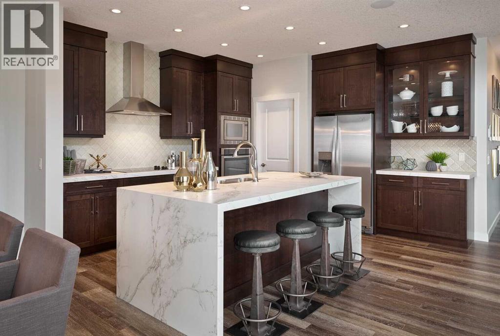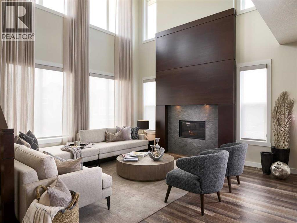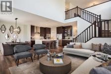 The stunning Savona 3 Estate model by Brookfield Residential is now available in the community of Livingston. Situated on a premium walkout lot backing directly onto green space, this home offers the rare luxury of no neighbours directly behind. This fully developed residence features 4 bedrooms, 3.5 bathrooms, 3 spacious living areas, and a dedicated office, offering the perfect blend of design, functionality, and high-end finishes. Set on a 4,844 sq. ft. east-facing lot, this beautiful property boasts over 3,500 sq. ft. of developed living space across three levels. The main floor features a bright, open-concept layout with 9’ ceilings, 8' doors and hardwood flooring throughout. Expansive rear-facing windows flood the home with natural light throughout the day, creating a warm and inviting atmosphere. The gourmet kitchen is equipped with full-height cabinetry and a premium suite of stainless-steel appliances, including a gas cooktop, chimney-style hood fan, built-in wall oven and microwave, and a French-door refrigerator. A large walk-through pantry adds both functionality and additional storage. The kitchen flows seamlessly into the adjacent dining area, which easily accommodates a full-sized dining set, and the impressive rear great room featuring an open-to-above design and a full-height tiled gas fireplace overlooking the backyard. Completing the main level is a generous front foyer, a versatile office/flex room, a 2-piece powder room, and a rear mudroom with a large walk-in closet for added storage. Upstairs, the primary suite (14’ x 13’) overlooks the backyard and includes a spa-inspired ensuite with a fully tiled glass shower, deep soaker tub, dual sinks, and a walk-in closet complete with storage. Two additional bedrooms, a well-appointed 4-piece bathroom, a large bonus room, and an upper-level laundry room complete this floor. The fully developed walkout basement adds nearly 1,000 sq. ft. of additional living space, including a fourth bedroom, full bathro om, and a bright recreation/media room with large windows. A wet bar and flexible open area make this an ideal space for a home gym, playroom, or entertainment zone. The west-facing backyard offers ample space for children, pets, and outdoor entertaining. A triple-car garage completes the property, providing exceptional storage and secure parking year-round. Backed by Brookfield’s comprehensive builder warranty and the Alberta New Home Warranty Program, this move-in-ready home offers both quality and peace of mind. Located in the vibrant community of Livingston, residents will enjoy access to parks, pathways, and future commercial amenities. Please note: Photos are of a show home model and may not be an exact representation of the property for sale. (id:6769)