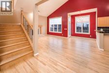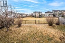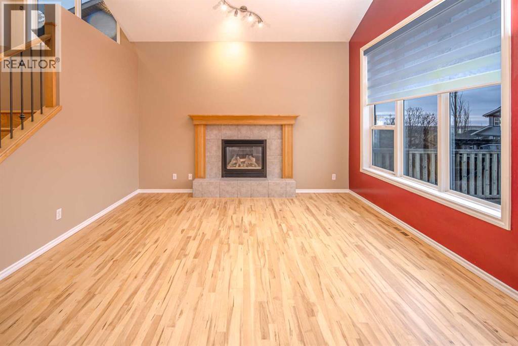 Backing onto a serene green belt, this cozy and well-kept 2-storey home is located in the highly sought-after community of Hanson Ranch. Offering a total of over 2,200 sq. ft. of living space, the main level features an open-concept design starting with a bright den/office, a spacious formal dining area, and a vaulted gourmet kitchen complete with granite countertops and maple cabinetry. The impressive 17-ft open-to-below living room is highlighted by a beautiful fireplace, while maple hardwood floors flow throughout the main floor.The upper level includes a generous primary bedroom with a 4-piece ensuite, along with two additional well-sized bedrooms. The fully finished basement adds even more value with a large family room featuring an elegant wet bar, a fourth bedroom, and a third full bathroom.Additional recent upgrades include new window coverings, new stove and fridge, and newly polished hardwood flooring throughout. The home also offers a double attached garage.Ideally located with easy access to Vivo Centre, Superstore, shopping, schools, and public transit.Call today for your private viewing — shows 10/10! (id:6769)