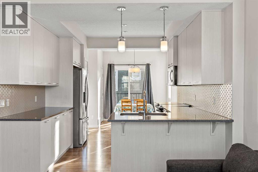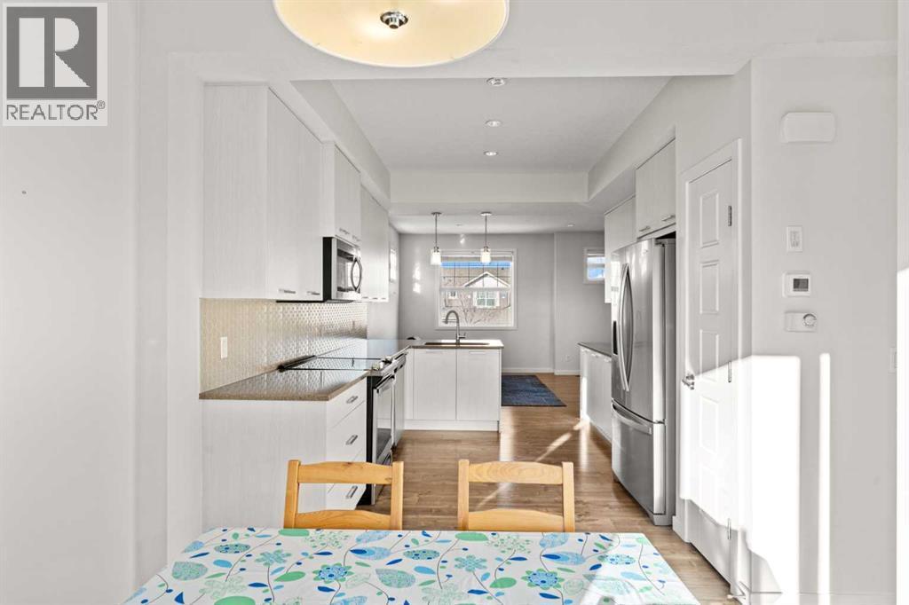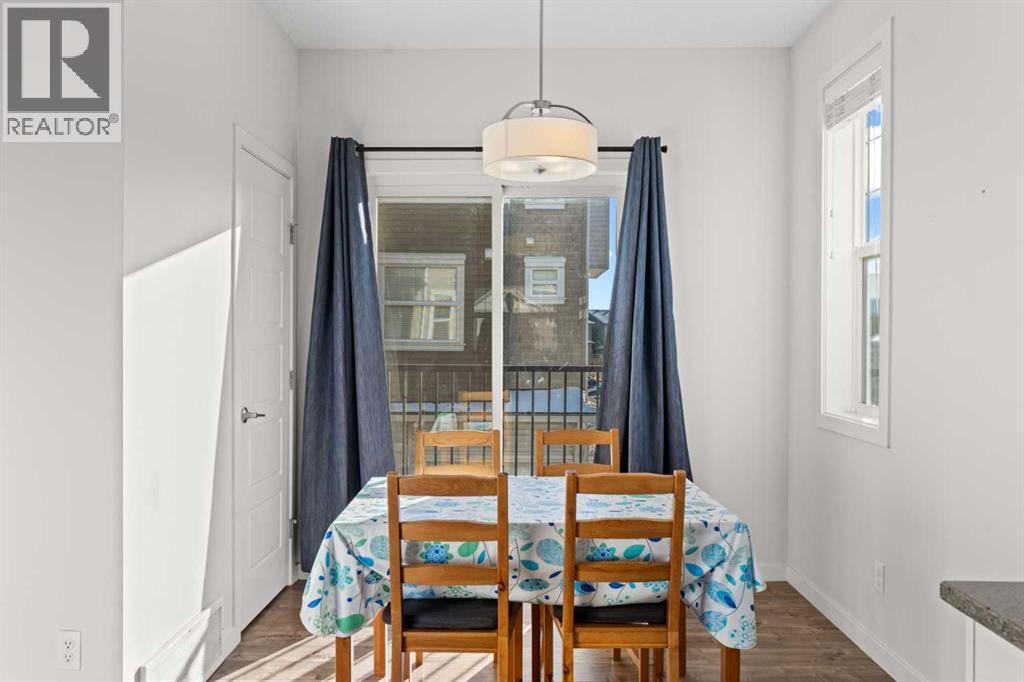 Welcome to this beautifully kept corner-unit townhouse in the established community of Sagewood, offering peaceful living while staying close to all amenities. This bright and functional home features 3 bedrooms, 2.5 bathrooms, and a double attached tandem garage, ideal for families, first-time buyers, or anyone seeking convenience plus peace.As you walk up to the main level, you are greeted by a sun-filled dining area with a south-facing patio door that opens onto a private balcony equipped with a BBQ gas line. The open-concept kitchen includes stainless steel appliances, granite counters, ample cabinetry, and a convenient pantry. Adjacent to the kitchen is a spacious living room with a large window overlooking the quiet street. A well-placed 2-piece bathroom completes the main floor.The upper level is bright and thoughtfully designed. It features a generous primary bedroom with a 3-piece ensuite and walk-in closet, a second bedroom with its own walk-in closet, a third bedroom with ample storage, a 4-piece common bathroom, and upper-floor laundry for added convenience.This well-maintained home is ideally positioned in a convenient and family-friendly location. You are within walking distance of Our Lady Queen of Peace Elementary School, C. W. Perry Middle School, ponds, playgrounds, walking paths, and Woodside Golf Course. Everyday amenities including Sobeys, restaurants, gas station, and local shops are only minutes away. Commuting is smooth with quick access to 8 Street, Veterans Boulevard, and easy connectivity to Deerfoot Trail. You are also a short drive from Airdrie Main Street, Genesis Place Recreation Centre, and the new Airdrie Public Library, making this property a perfect blend of comfort, accessibility, and lifestyle.This home has everything you need and more. Book your private showing today and experience the value for yourself. (id:6769)