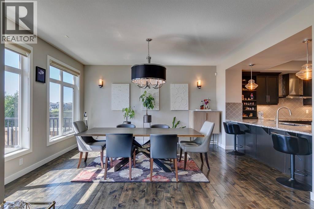 TRANQUIL VIEWS OF THE POND | FULLY DEVELOPED 5 BDRM HOME WITH AN ABUNDANCE OF UPGRADES | NO NEIGHBOURS BEHIND YOU | This gorgeous home is nicely located on a quiet street, featuring a south backyard with no neighbours behind you & has a long list of fabulous upgrades! The main level, bright with an abundance of natural light, welcomes you in to a large foyer with oversized tile flooring & opens to a spacious & inviting floorplan. The gourmet kitchen showcases a ceiling detail bulkhead, full height cabinetry in a rich dark tone that is contrasted with the soft, neutral arabesque custom tile backsplash & elegant granite countertops. The stainless steel appliances include a sleek ceramic cooktop & built-in oven & microwave; there is a central island as well as a peninsula style island making this kitchen not only stunning but also highly functional…plus there is a walk-through pantry! The peninsula island offers an eating bar & overlooks the large dining area that opens to the sunny backyard. Finished with beautiful hand-scraped hardwood flooring throughout the living & dining areas, while the living room features a stylish gas fireplace with raised hearth…this space is warm & inviting, creating a perfect atmosphere for quiet family time or entertaining guests, offering views of green belt & pond! Completing this main level is a private den with sliding pocket doors. Upstairs is sure to please as well…there is a generous sized bonus room with built-in dry bar with beverage fridge; the sliding barn door creates an ideal separation for the “kid’s area” where you will find 3 bedrooms, separated by a 5pc bathroom with dual sinks, as well as a built-in homework station! The Master bedroom, located at the rear of the home, offers fantastic views of the pond & has a lovely spa-like ensuite…freestanding bathtub with a modern full height subway tile feature wall, dual vessel sinks, & custom tiled shower with 10mm glass…plus a walk-in closet with custom built-in organi zers! You will enjoy the convenience of the upper laundry room with expansive counter space & lower cabinets! The lower level, professionally finished, is host to a huge open family/rec room, 5th bedroom & full bathroom. This home is also wired with in-ceiling speakers on all 3 levels, central A/C…plus it is pet-free & smoke-free! The south backyard can become your private oasis…fully fenced & landscaped with a full-width skirted deck…and no neighbours behind! Enjoy this amazing home in a desirable 4 season community that offers great access, endless shops, restaurants & services…plus nearby community schools! (id:6769)