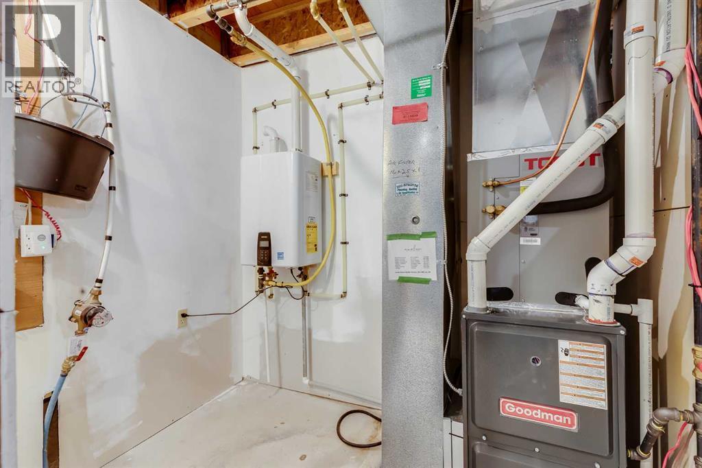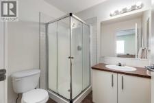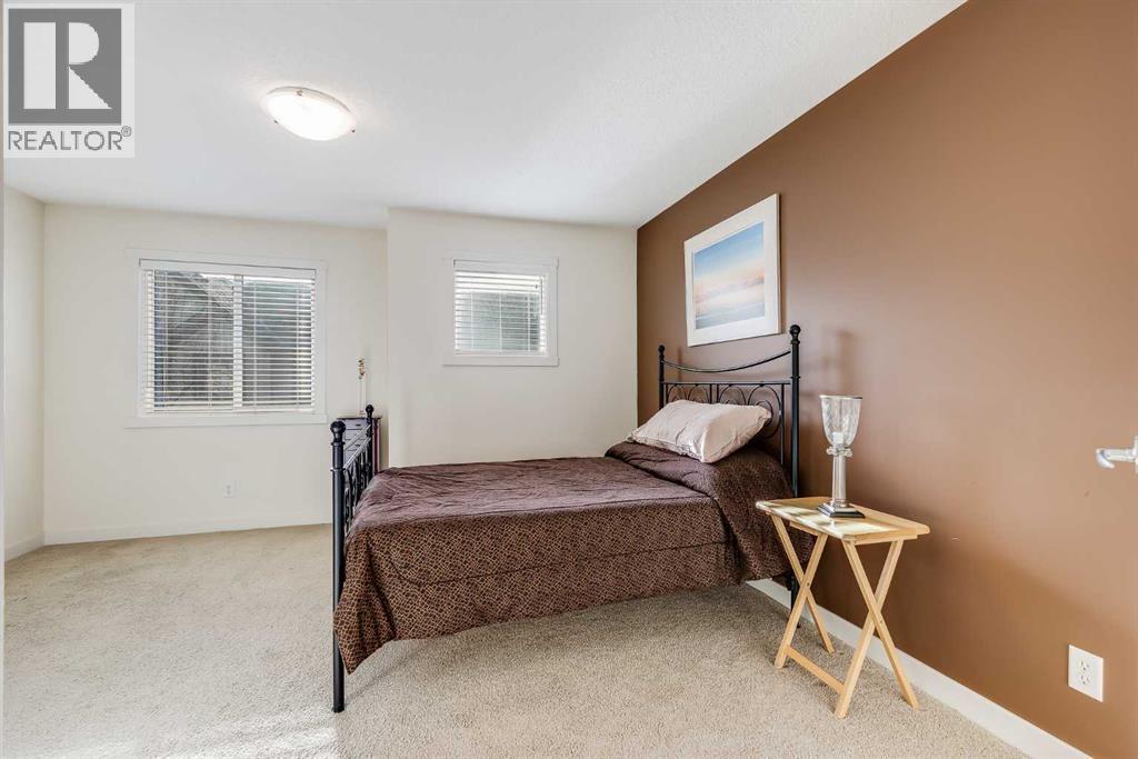 This thoughtful townhome blends comfort, convenience and year-round efficiency with a bright layout, dual primary bedrooms and a sunny south backyard that creates appealing outdoor space. Generous front windows fill the living room with natural light, setting a relaxed tone from the moment you step inside. Clear sightlines into the dining area support easy everyday living while the rear patio slider enables smooth transitions to the deck for barbeque nights or quiet mornings outside. A well-organized kitchen adds functional value with timeless subway tile, updated hardware, ample cabinetry and a pantry that keeps busy households running smoothly. A main floor powder room enhances day-to-day practicality. Upstairs, each bedroom enjoys its own private ensuite, offering comfort, privacy and flexibility for shared living, guests or future resale appeal. Carpeted floors add warmth across the upper level and windows in both rooms bring in consistent natural light. A partially finished basement presents abundant storage and future potential for additional living space as needs evolve. Air conditioning provides steady comfort in warm months, while the new tankless hot water heater ensures efficient, on-demand hot water. A fully fenced south-facing backyard extends living outdoors with room for gardening, relaxing or creating a pet-friendly space, supported by direct sunshine throughout the day. 2 dedicated parking stalls sit just steps from the front door for everyday convenience. Location adds further value, placing you minutes from Kingsview Market and Kings Heights amenities for groceries, dining and daily errands, along with quick access to CrossIron Mills for larger shopping trips. Proximity to local schools supports young families and smooth connections to Deerfoot offer efficient commuting into Calgary or around Airdrie. Investors, first-time buyers and downsizers will appreciate the low-maintenance lifestyle, smart layout and thoughtful improvements that make this h ome an easy choice in a well-loved community. (id:6769)