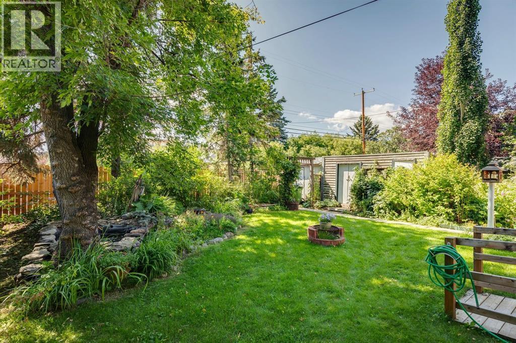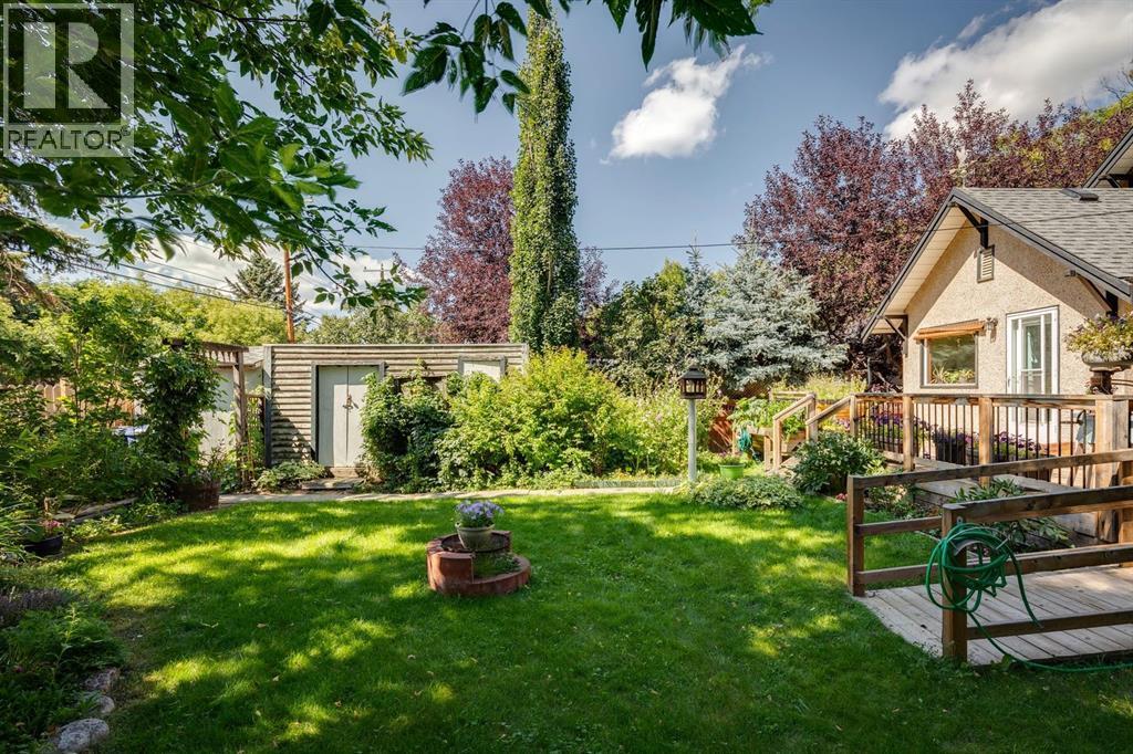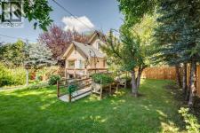 THIS IS A RARE FIND! A charming heritage home on highly coveted Elma Street, one of Okotoks’ most historic and picturesque locations. This beautifully maintained 1.5 storey property sits on a large, private, tree-filled lot with an updated exterior, a white picket fence, a welcoming covered veranda, and a stunning backyard oasis w/ pond and stunning flower beds, making it feel like your own private park.Zoned Heritage Mixed Use, this property offers exceptional flexibility—ideal as a warm, character-filled residence or a discretionary commercial space, giving you the rare opportunity to open a business before the busy summer and fall season on Elma Street.Inside, the home radiates timeless character with beautiful original wood charm, original fir flooring, high ceilings, and a warm, welcoming layout. The main floor features a spacious living room/dining room, a bright kitchen with a breakfast nook addition, an updated 4-piece bathroom, and a main floor bedroom. Two generously sized bedrooms complete the upper level. The basement is partially developed with a large flex room, plus storage.Extensive updates provide peace of mind, including:New shingles, eavestroughs, and soffit, Updated electrical, New water line to the main, Newer hot water tank, Updated exterior, new fence and back deck. Ongoing improvements since early 2000s including plumbing, wiring, furnace, and sump pumpHomes on Elma Street seldom come available—especially ones with this much character, modernization, and zoning versatility. A truly special property worth viewing! (id:6769)