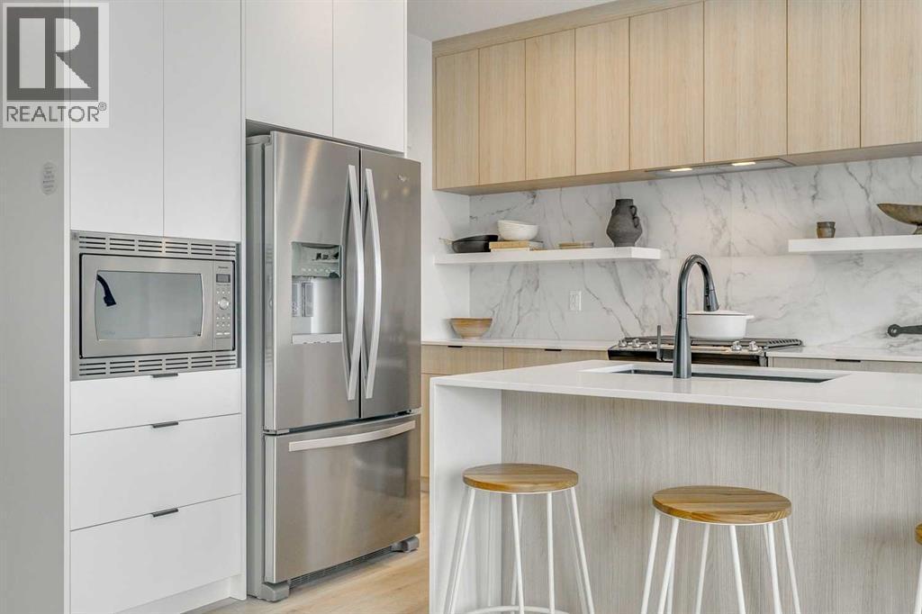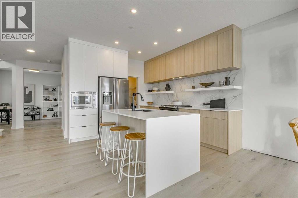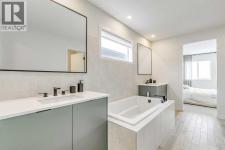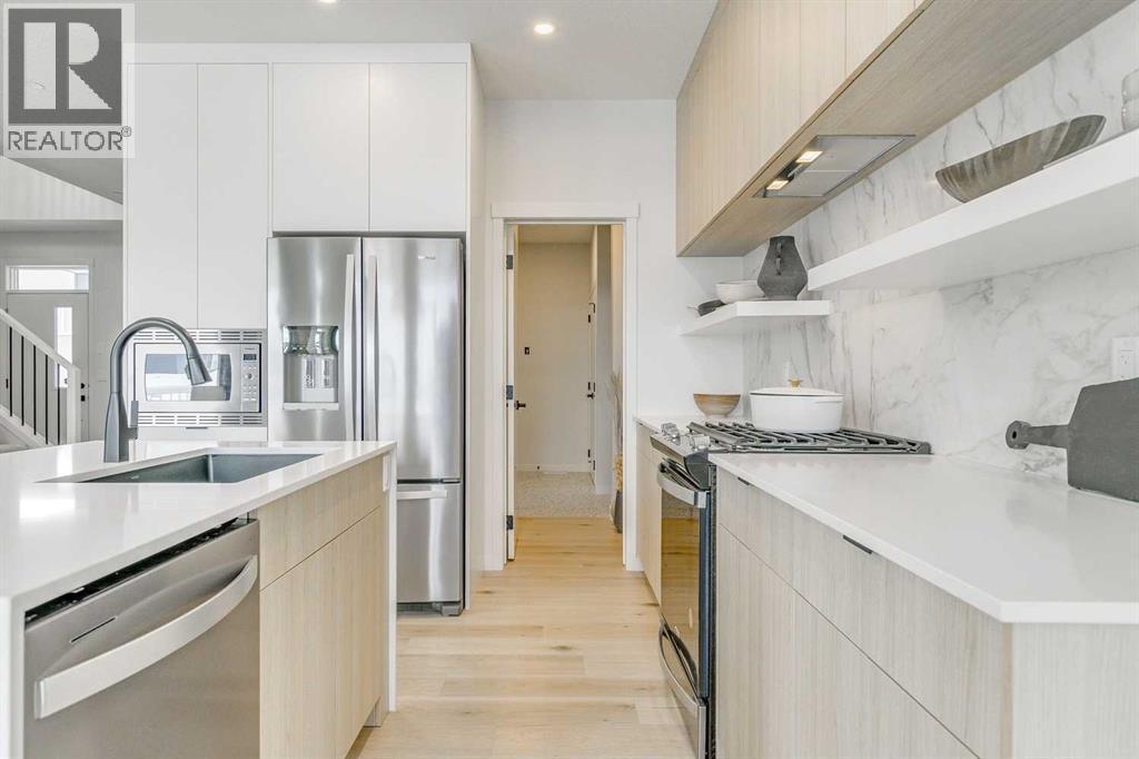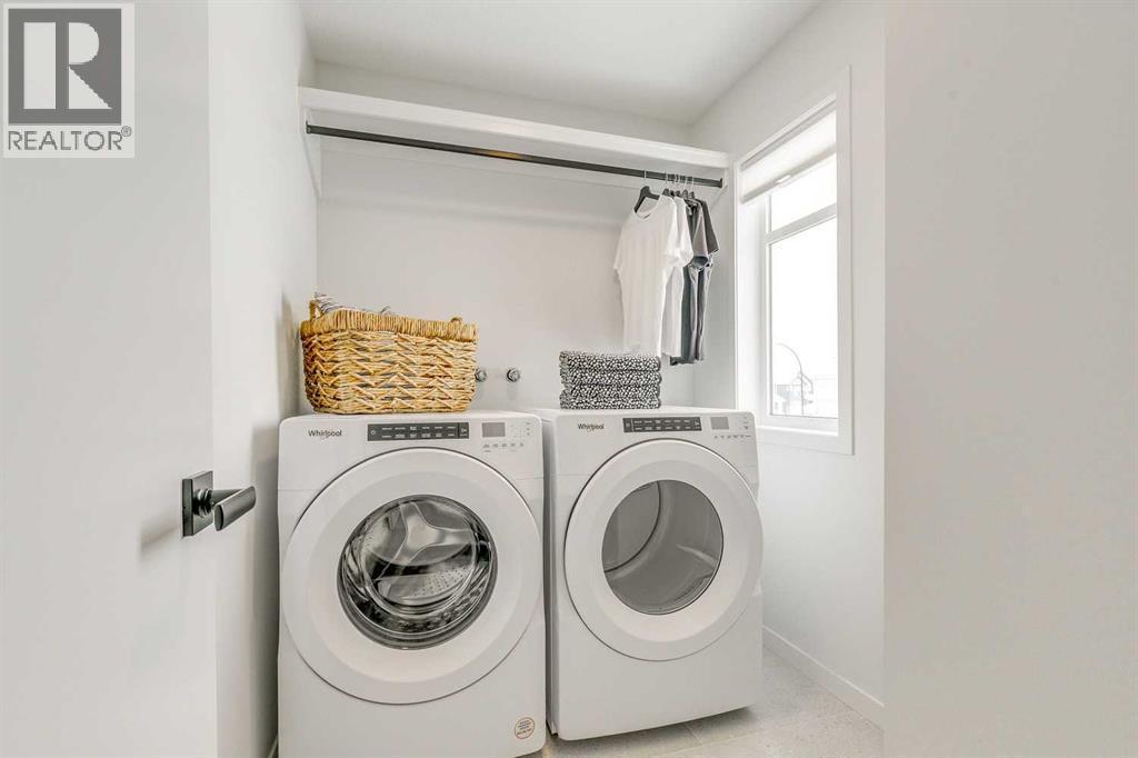 Welcome to this stunning former Morrison Homes that has 2800+ sq.ft. of developed space in the community of Livingston. Situated on a coveted corner lot, this detached property features central air conditioning, exterior Gemstone lighting, an attached front double garage, spindle railing throughout, and showcases premium upgrades from top to bottom. The main floor offers an open-concept layout highlighted by pot lights, elegant LVP flooring, and an electric fireplace that adds warmth and style to the living room. The gourmet kitchen includes a gas range, a beautifully designed kitchen island, a walk-in pantry connected directly to the mud room for effortless grocery unloading, a dining area, and a dedicated den perfect for a home office. A convenient 2-piece bathroom completes the main level. Upstairs features a spacious bonus room filled with natural light, a dedicated laundry area with a washer and dryer and three well-appointed bedrooms. The primary suite includes a luxurious 5-piece ensuite with a large tiled walk-in shower with rainfall showerhead, deep soaker tub surrounded by premium tile, dual vanities with quartz countertops, contemporary flat-panel cabinetry, sleek modern mirrors, and direct access to a spacious walk-in closet with built-in shelving. The additional two bedrooms share another 5-piece bathroom designed for comfort and convenience. The fully developed basement extends your living space with a large recreation area, a wet bar with mini-fridge, an additional bedroom, a 3-piece bathroom, and a separate entrance, offering excellent potential for multi-generational living or added privacy. Built on 9' foundations, the basement feels bright, open, and inviting. Outside, enjoy a massive backyard with a deck equipped with a gas line for BBQs. Livingston residents enjoy access to an HOA clubhouse featuring a gymnasium, tennis courts, a splash park, and year-round programming, along with quick access to major routes for easy commuting across the city. This exceptional home blends luxury, comfort, and functionality—perfect for families seeking space, upgrades, amenities, and craftsmanship. (id:6769)