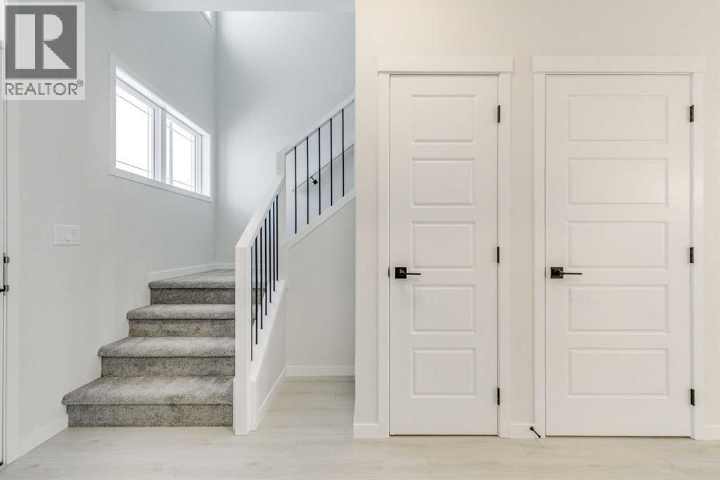 Welcome to this stylish Morrison Homes spec property located in the beautiful community of Sirocco in Pine Creek, SW Calgary. The main floor offers a functional layout with an enclosed den perfect for a home office, a bright living room, luxury vinyl plank flooring, pot lights, a walk-in pantry, and a well-appointed kitchen featuring quartz countertops throughout and a modern island ideal for meal prep and gathering. A convenient 2-piece bathroom completes the main level. Upstairs, a spacious bonus room provides an additional living area separating the three bedrooms. The upper level also includes a dedicated laundry area for added convenience. The primary bedroom features its own 3-piece ensuite with a standalone tiled walk-in shower, while the remaining two bedrooms are served by a comfortable 4-piece bathroom. The basement is currently undeveloped, offering a blank canvas for your own customization. This home also includes a separate entrance, basement suite rough-ins offering excellent potential for a future suite development (A secondary suite would be subject to approval and permitting by the city/municipality). With thoughtful design, quality finishing, and room to grow, this property delivers exceptional value in one of Calgary’s rapidly developing SW communities. (id:6769)