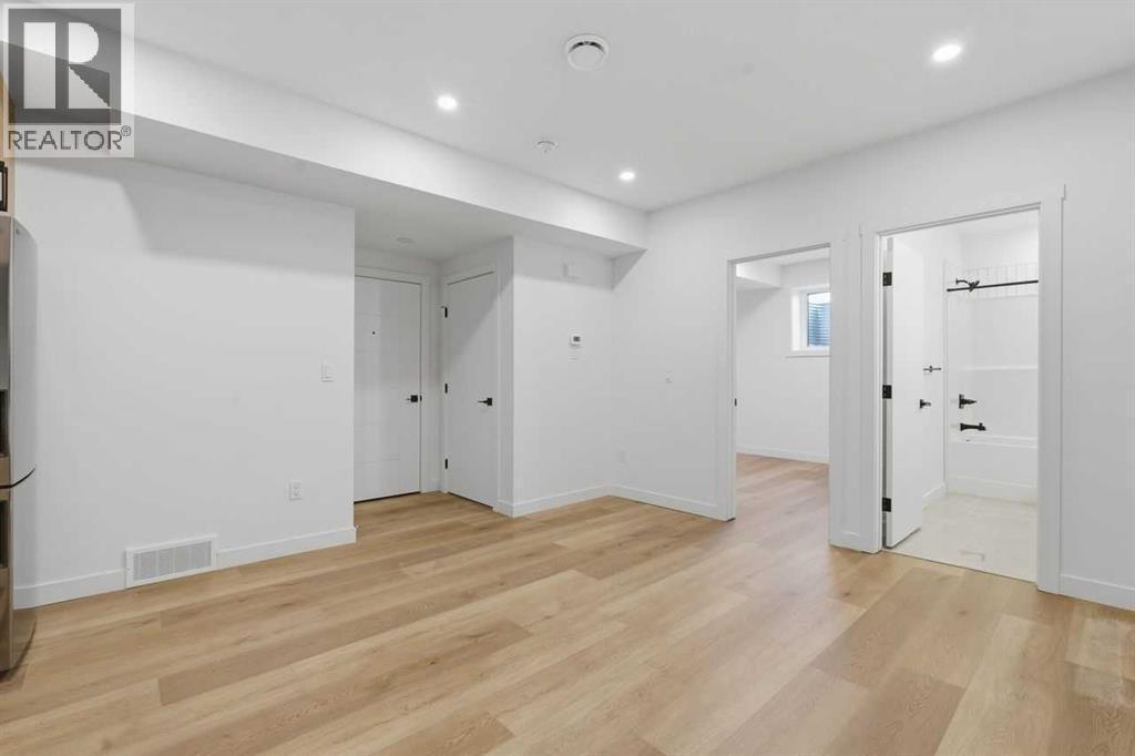 ~ OPEN HOUSE FRIDAY, SATURDAY & SUNDAY ~ FRONT FACING 3 STOREY UNIT | LEGAL BASEMENT SUITE | DOWNTOWN VIEWS | BRAND NEW BUILD | DETACHED GARAGE | CENTRAL LOCATION | Modern style and thoughtful design define this brand new 3 storey townhome that blends upscale finishes with a highly functional layout in a central location near parks, schools, transit and everyday amenities. A bright main floor creates an inviting first impression with luxury vinyl plank flooring, recessed lighting and generous windows that bring in natural light. An open concept layout supports easy daily living as well as effortless entertaining. A spacious living area promotes relaxation with a floor to ceiling window that amplifies light and connection to the outdoors. The kitchen inspires culinary creativity with stone countertops, a gas stove, full height cabinetry, timeless subway tile and a large peninsula that provides casual seating and room to gather. An adjacent dining area promotes hosting with comfort and flow. A dedicated mud room adds daily convenience while a well positioned powder room completes this level. The second floor encourages livability with 2 well proportioned bedrooms including one with a walk-in closet and private 4 piece ensuite. Laundry on this level is a meaningful upgrade that reduces household steps while a second 4 piece bathroom adds comfort for family and guests. The entire top floor forms a private primary retreat that elevates daily living. A spacious layout provides room to unwind while a spa inspired ensuite features dual sinks and an oversized shower for a calming start and finish to each day. A massive walk-in closet with custom organizers improves easy routines and thoughtful storage. A private balcony captures stunning downtown views and creates an inviting spot for morning coffees or evening beverages. A fully developed lower level extends the home’s versatility with a self-contained legal suite featuring a private entrance, modern kitchen, comfortable li ving area, large bedroom, full bathroom and its own laundry. This setup creates strong potential for generating rental income or offering guests impressive comfort and independence. A front grassy area adds welcoming curb appeal while a detached single garage ensures secure parking and additional storage. Outstanding access to Confederation Park, playgrounds, groceries, transit, regional bike pathways, Nose Hill Park and downtown makes this location both convenient and connected, adding meaningful long term value. (id:6769)