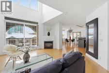 This 2 storey penthouse enjoys uninterrupted 180° city views and a bright, inviting layout designed for relaxed living and effortless entertaining. Soaring 18’ ceiling height combines with oversized windows to create an uplifting main floor living room where natural light defines the space, while a gas fireplace adds warmth on cooler evenings. Patio sliders extend the room onto the 1st west facing balcony where skyline views set a stunning backdrop for morning coffees, quiet breaks or casual after-work unwinding. Beautifully updated, the kitchen delivers abundant 2 toned cabinetry, generous prep space, a raised breakfast bar for easy meals and clear sightlines into the dining area that supports comfortable hosting. A bold chevron feature wall and distinctive lighting give the dining room character and personality, adding visual interest without sacrificing function. Conveniently a powder room and in-suite laundry complete the main level. Ascend the modern geometric railed staircase to the upper level where an open to below loft provides valuable flexibility for a home office, creative studio or fitness space. The primary bedroom offers a restful retreat with access to the 2nd west balcony, ideal for peaceful evenings or weekend lounging and includes a walk-in closet for practical storage. A second bedroom sits nearby and pairs easily with a well kept 4 piece bathroom. Titled underground parking adds to your safety and convenience. Phenomenally location to support an easy, walkable lifestyle with immediate access to favourite local pubs, restaurants and cafés along both 4th Street and Uptown 17th. Enjoy the close proximity to the LRT Station, downtown core, Stampede Park and the MNP Community & Sport Centre all within minutes, while surrounding amenities deliver endless options for shopping, fitness and entertainment. This penthouse blends lively urban energy with private top floor comfort in one of Calgary’s most connected inner-city settings. (id:6769)