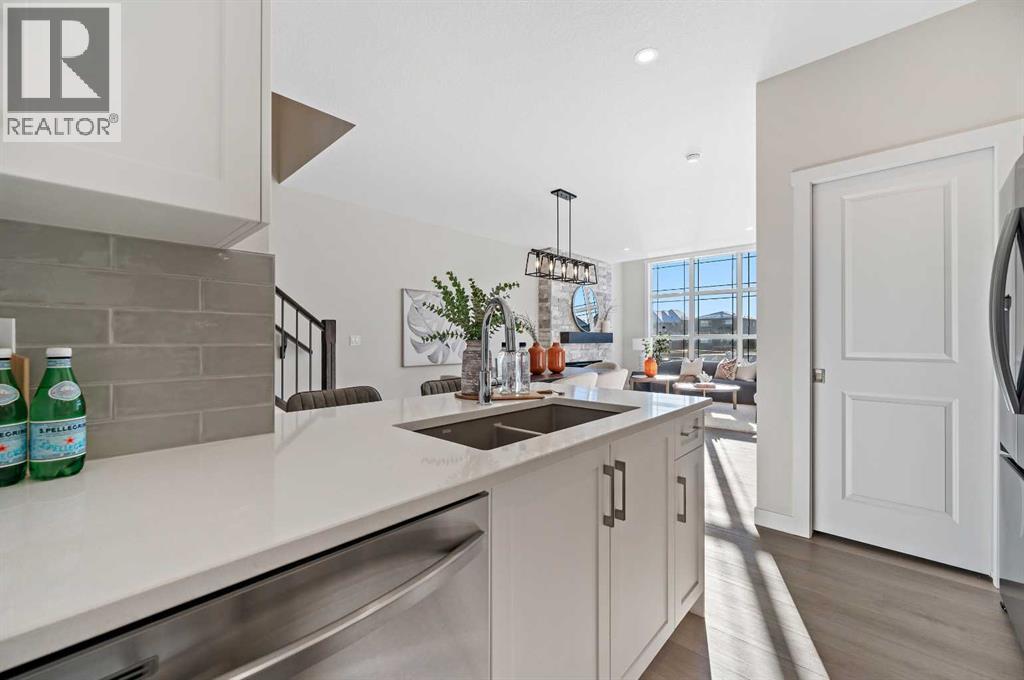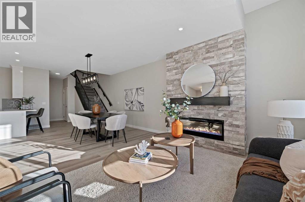 Genesis Builders introduces the Eli - a luxury street-side luxury townhome with NO CONDO FEES! The Eli townhome features an attached double garage and a rooftop patio, offering low-maintenance living. The thoughtfully designed home offers almost 1600 sq ft. plus an unfinished basement with 9-foot ceilings, ready for your ideas. Large windows and soaring ceilings on the main floor let natural light fill the open-concept living space. The chef-inspired kitchen features sleek cabinetry and stone countertops and is well-equipped with stainless-steel appliances. The kitchen is tucked away yet still feels open and inviting, providing ample room for activities in the open-concept dining and living room. A floor-to-ceiling tiled fireplace is the living room's focal point. Complementing the main floor is a convenient half bath, storage, and access to the attached double garage, which is large enough for a truck. Venturing upstairs, you will find a spacious primary retreat with a spa-like ensuite featuring a shower, his-and-hers sinks, and a walk-in closet. Two additional bedrooms, a full bathroom, a flex room, a 4-piece bathroom, and laundry facilities complete the upper level. Enjoy spending time on your upper rooftop patio, situated above the garage, which is an excellent space for entertaining. Bayview is a beautiful community with parks, benches and pathways that meander throughout the community and along the canals. Kids and adults alike will enjoy the outdoor basketball nets, gym, amphitheatre, and tennis courts, which will convert into a skating rink in the winter. Come and see for yourself all the amenities the community has to offer! (id:6769)
