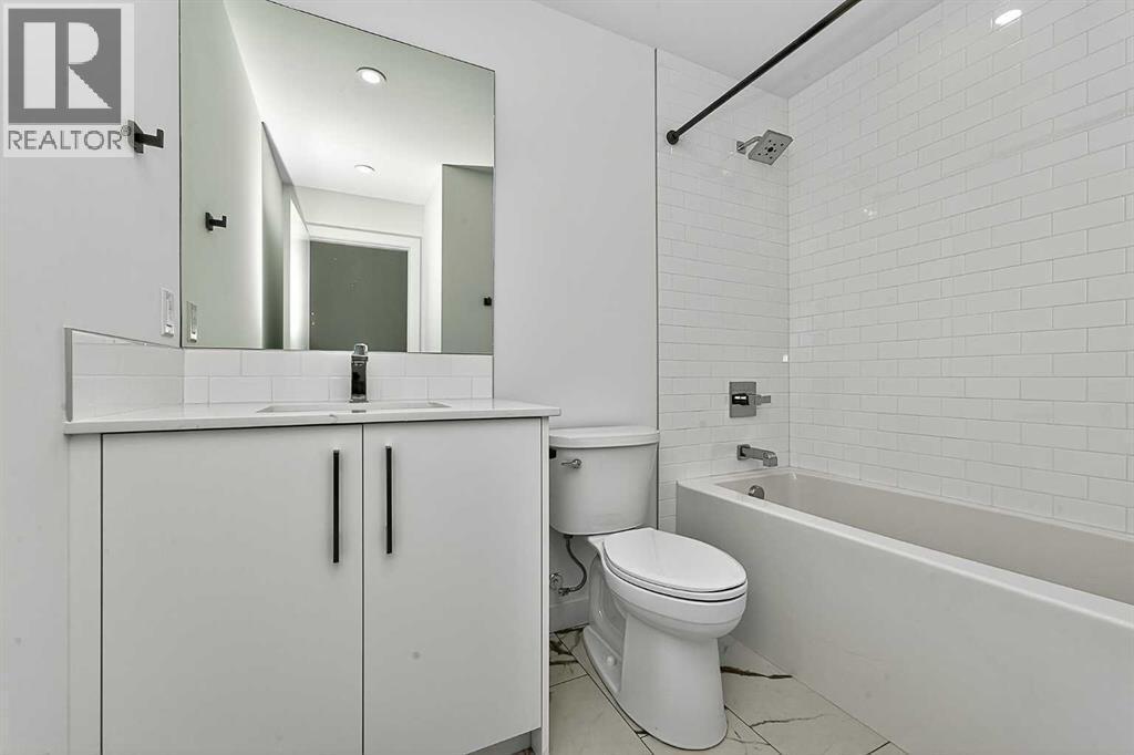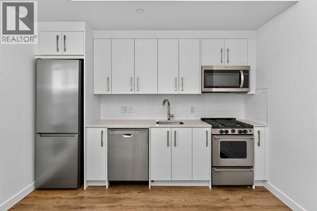 Welcome to Frontier by Truman Homes – an exclusive concrete-built residence ideally situated in West Hillhurst, just steps from the vibrant Kensington district, one of Calgary’s most desirable and walkable inner-city neighborhoods.This brand-new 1-bedroom, 1-bathroom corner suite on the 6th floor offers 393.79.sq. ft. of thoughtfully designed living space enhanced by floor-to-ceiling windows that fill the home with natural light.The open-concept layout showcases luxury vinyl plank flooring throughout, a spacious living and dining area, and a modern kitchen equipped with quartz countertops, stainless steel appliances, and a gas cooktop.The bright primary bedroom features expansive windows and generous closet space, while the contemporary 4-piece bathroom includes a quartz vanity and in-suite laundry for added convenience.Residents of Frontier enjoy premium amenities such as a state-of-the-art fitness center, co-working lounge, and a beautifully landscaped second-floor terrace. The building also offers titled underground heated parking and on-site retail, including Fresco, C+C Coffee, Crave Cupcakes, Metro Liquor, and more.With boutique shops, cafés, award-winning restaurants, and scenic Bow River pathways just steps away — plus quick access to Downtown Calgary and the LRT — this home perfectly blends comfort, convenience, and connectivity.Combining upscale finishes, intelligent design, and a prime corner location, this stunning unit is an outstanding opportunity for both homeowners and investors alike. (id:6769)