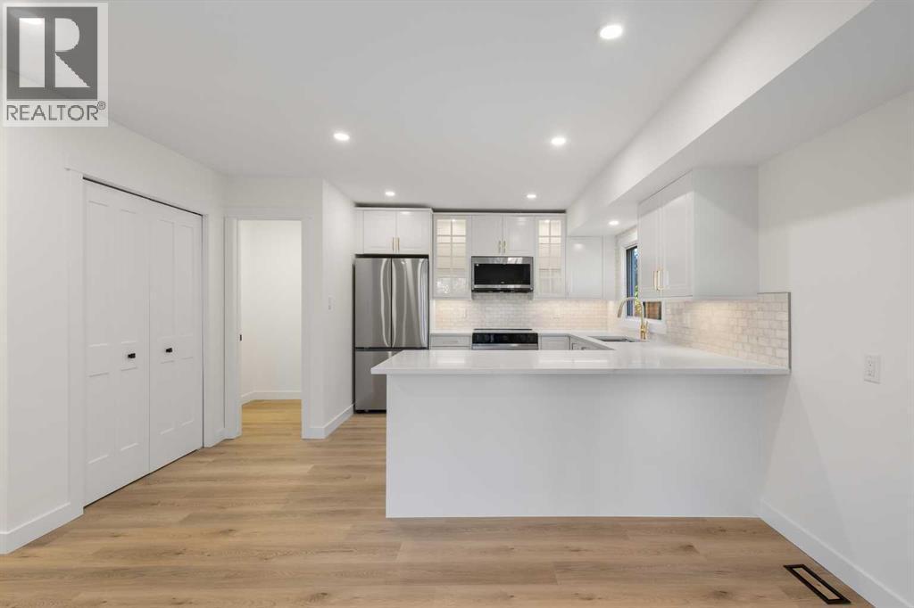 Welcome to this stunning, move-in-ready semi-detached bi-level home in the highly desirable SW community of Cedarbrae, ideally situated across from green space and boasting over 1,300 sq ft of developed living space with 3 spacious bedrooms and 1.5 bathrooms. This residence offers unbeatable peace of mind thanks to significant recent upgrades, including a brand new furnace and new shingles, while the entire interior is showcased by gorgeous new vinyl flooring throughout, complemented by warm, inviting ambiance. The heart of the home is the stylishly renovated kitchen, featuring sleek new white cabinetry, beautiful quartz countertops, stainless steel appliances, and a pantry, while both the main and lower-level bathrooms have been fully updated with modern fixtures. The bright living room includes a cozy wood-burning fireplace, and the adjacent dining area opens through sliding glass doors to a generous deck, perfect for outdoor entertaining; downstairs you will find the three generous bedrooms and the full 4-piece bath. Enjoy the outdoors in your fenced, private front yard, and benefit from the convenience of a dedicated parking pad, all while living close to parks, schools, shopping, and public transit in this incredibly family-friendly community. Book your private showing today! (id:6769)