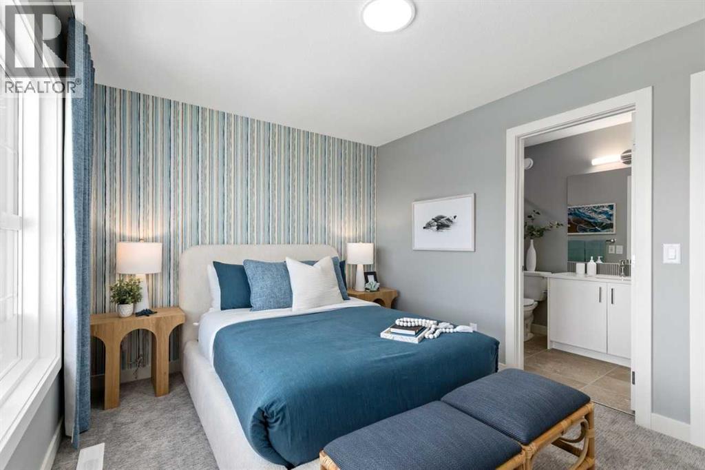 THIS IS A SHOWHOME AVAILABLE THROUGH LEASEBACK - the builder will temporarily rent the home back after possession and it will continue to be used as a showhome. Discover this beautifully upgraded Kingsley by Trico Homes, a stunning showhome located minutes from East Hills Shopping Centre. The main floor features a bright open layout with a flex room, a bedroom with full bath, a modern kitchen with a waterfall island, and a fully equipped spice kitchen. Upstairs offers four spacious bedrooms, three full baths, and a bonus room. The fully finished basement includes two large bedrooms, a full bath, and an oversized recreation area. This home provides exceptional value, professional maintenance, and a prime location close to shopping, parks, and transit—ideal for families seeking a well-designed property. ;Photos are representative. (id:6769)