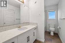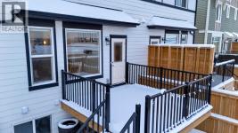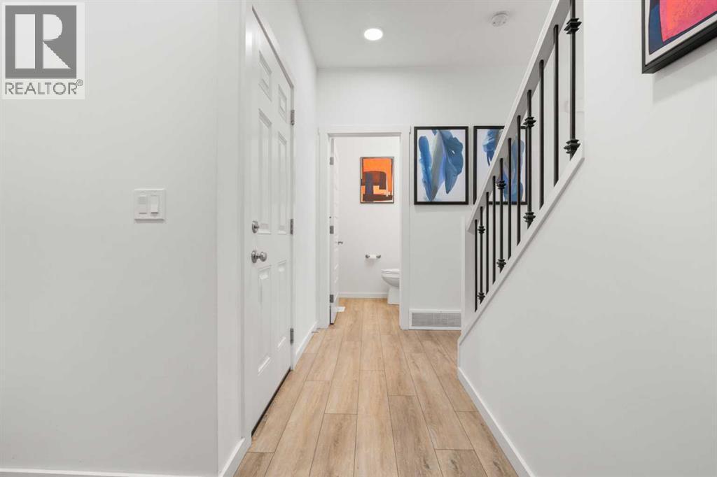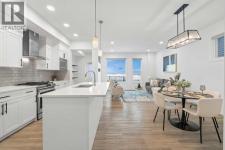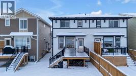 Welcome to this beautifully appointed 3-bedroom, 2.5-bath duplex in the peaceful and thoughtfully designed community of Creekstone—one of Southwest Calgary’s most exciting new neighbourhoods. This home offers the perfect blend of modern comfort and natural surroundings, featuring a quiet family-friendly street, a single attached garage, a spacious backyard with an oversized deck, and open views with no rear neighbours—including a glimpse of downtown Calgary. Inside, the main floor is filled with natural light thanks to oversized windows, 9 ft ceilings, and light-toned luxury vinyl plank flooring. The kitchen stands out with stainless steel appliances, rich dark cabinetry raised to the bulkhead, quartz countertops, a large pantry, and a generous centre island, all flowing into a bright dining area and a stylish rear living room with wall-to-wall windows, patio doors, and a custom wood-slat entertainment wall. Upstairs, a central bonus room provides flexible space, while the primary bedroom offers downtown views, a walk-in closet, and a beautiful 4-piece ensuite. Two additional bedrooms, a full bathroom, and a dedicated laundry room complete the upper level. The home also includes a separate side entrance with basement framing and plumbing already done, making it easier to convert into a future 1-bedroom suite (subject to city approval), supported by a low look-out basement window at eye level. Living in Pine Creek means enjoying over 50% preserved natural land with walking paths, wetlands, storm ponds, and playgrounds, plus future plans for a school and sports fields—all while being minutes from South Health Campus, Spruce Meadows, Fish Creek Park, and major routes like Macleod Trail and Stoney Trail. Whether you're starting a family, seeking more space, or exploring rental potential, this home delivers exceptional value, comfort, and lifestyle. (id:6769)