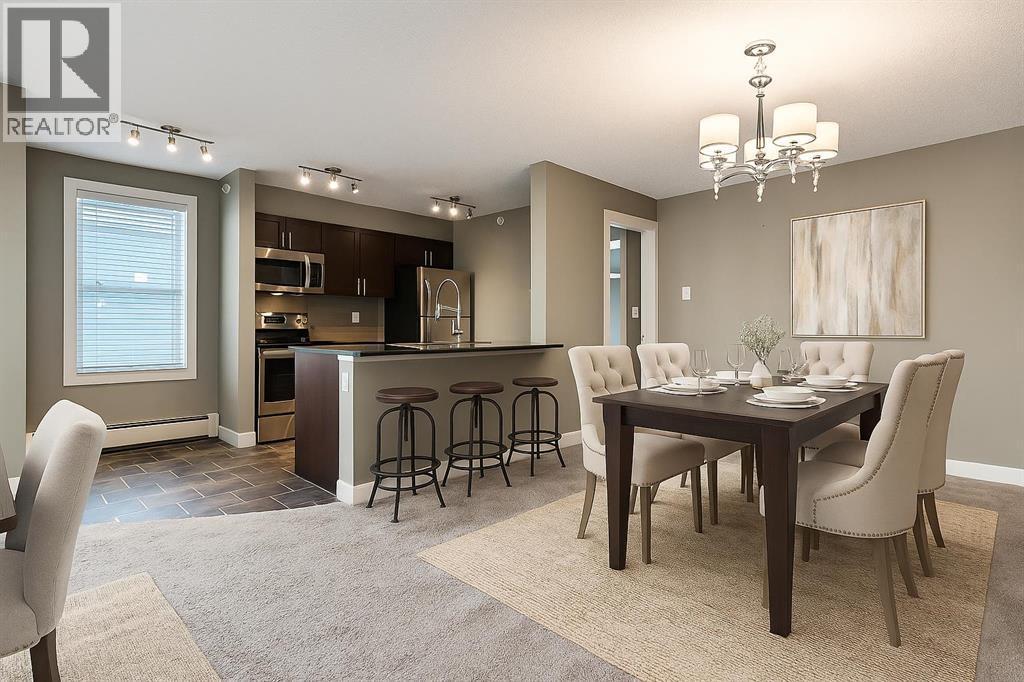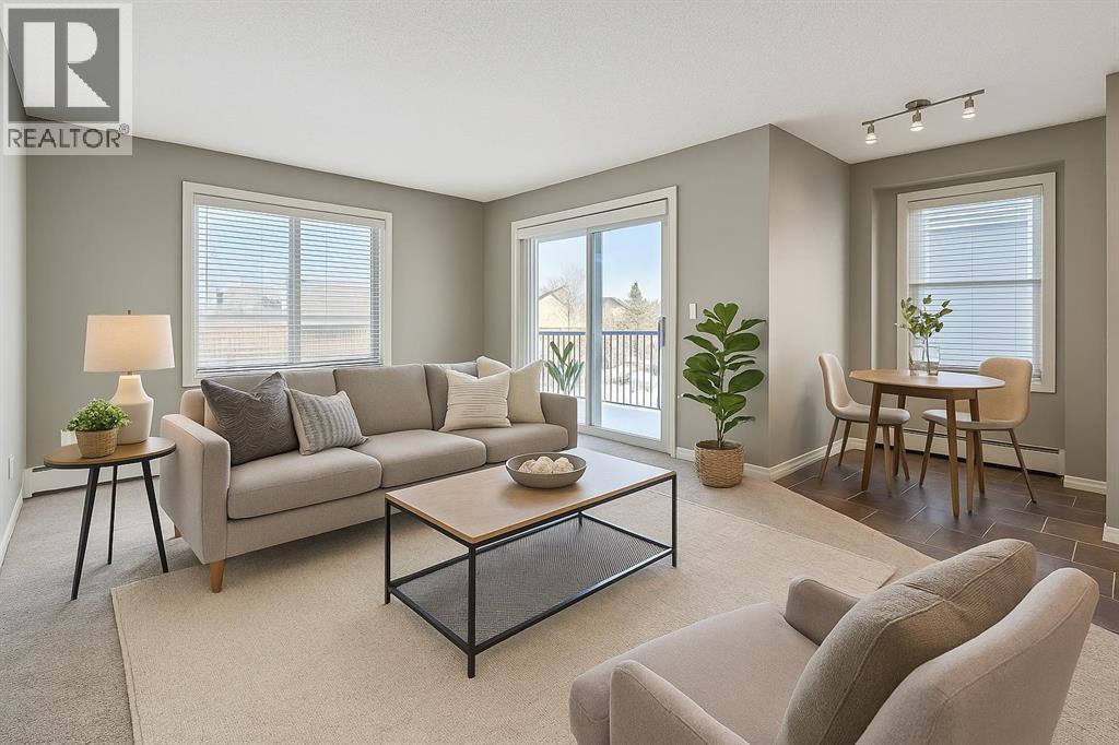 A rare opportunity to own a beautifully appointed CORNER, TOP-FLOOR home filled with warmth, sunshine, and endless natural light. This gorgeous 2-bedroom, 2-bathroom residence with a bonus flex space offers an exceptional layout, underground parking, and a vibrant location that places you minutes from downtown and every amenity imaginable.From the moment you walk in, the sense of openness is undeniable. The expansive front foyer feels more like an extension of your living space than an entryway—offering the perfect spot for a cozy coffee nook, a reading corner, extra storage, or even a small workspace. It’s a welcoming introduction to a home that feels both spacious and inviting.The building itself is undergoing a fresh transformation with new flooring and paint, giving the common areas a clean, contemporary look. Your underground parking stall is truly one of the best in the complex: oversized, extremely convenient, and located right outside the basement access door for effortless everyday living.Inside the unit, the thoughtful design places both bedrooms on opposite ends, creating ideal separation whether you’re hosting guests, sharing with a roommate, or simply wanting privacy. The Primary Suite is bright and comfortable, featuring a large walk-through closet and a private 3-piece ensuite. The second bedroom is generously sized and easily accommodates a queen bed.The heart of the home is the stunning open-concept kitchen and dining area, beautifully lit by natural light pouring through the corner windows. The kitchen offers excellent storage, great counter space, and room for either a small café-style table or an additional moveable island—perfect for those who love to cook or entertain. The dining area flows smoothly into the spacious living room, where large windows and the top-floor vantage point create a bright, uplifting atmosphere all day long.From the living room, step onto the sun-soaked corner balcony, an inviting outdoor retreat ideal for morn ing coffee, evening wine, container gardening, or enjoying the warmth of the afternoon sun. With its open exposure and extra space, it truly extends your living area outdoors.Complete with in-suite laundry, pet-friendly bylaws, low condo fees, and unbeatable access to Deerfoot Trail, transit, shops, parks, and Calgary’s downtown core, this home offers the perfect blend of convenience, comfort, and style. With possession available before Christmas, this top-floor sanctuary is ready to welcome its next owner to a lifestyle of ease and sunshine. (DISCLOSURE the unit is vacant and is virtually staged with options)CONDO FEES $509.95 per month! (id:6769)