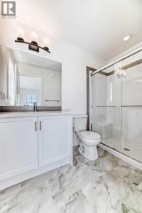 IF YOU’RE HOPING TO SETTLE IN BEFORE THE HOLIDAYS, THIS ONE MAKES IT SURPRISINGLY EASY. Immediate possession means the timeline isn’t theoretical—you can actually be living here while the rest of the city is still hunting for wrapping paper.The MAIN-FLOOR BEDROOM sets the tone for the entire home: thoughtful, flexible, and built for real life. With its own FULL BATHROOM just steps away, it works for visiting family, aging parents, or a dedicated office that doesn’t compete with the rest of the plan. From there, the main floor opens into a bright, grounded interior—9' CEILINGS, warm wood-tone vinyl plank, and a kitchen that gets the details right: full-height Oxford grey cabinetry, quartz countertops, a smoky stacked-subway backsplash, SILGRANIT UNDERMOUNT SINK, 400 CFM CHIMNEY HOOD FAN, and BUILT-IN MICROWAVE. The living room’s 50" ELECTRIC FIREPLACE feature wall gives the space a calm, modern anchor, and the open flow into the dining area makes both everyday routines and seasonal gatherings feel effortless.Upstairs, a CENTRAL BONUS ROOM creates separation between the master and the secondary bedrooms—so night owls, early risers, and winter-break sleepovers can peacefully coexist. The master steps things up with a RAISED CEILING HEIGHT, a bright walk-in closet, and an ensuite finished in soft, neutral tile. Laundry sits exactly where it should be—on the same floor as the clothes.A SEPARATE SIDE ENTRY, 9' foundation walls, a 200 AMP electrical panel, and thoughtful ROUGH-INS—FOR A BATHROOM, SECOND LAUNDRY, AND BAR/KITCHEN SINK—mean the basement isn’t just unfinished, it’s intentionally set up for the future. Whether that turns into multigenerational space, added living area, or long-term flexibility you can grow into, the groundwork is already done. Outside, the front yard is already sodded, and the 20' x 20' concrete parking pad is ready for a future garage while keeping parking simple now.Life in Sora puts you close to Stoney Trail, surrounded by new park s, playgrounds, and a growing list of amenities. It’s a community that’s still early in its story—making now a smart (and very convenient) time to arrive.And with possession available right now, you can be in—and settled—before the holidays even start. BOOK YOUR SHOWING TODAY! • PLEASE NOTE: Kitchen appliances are included, and will be installed prior to possession. Photos are of a DIFFERENT Spec Home of the same model – fit and finish may differ. Interior selections and floorplans shown in photos. (id:6769)