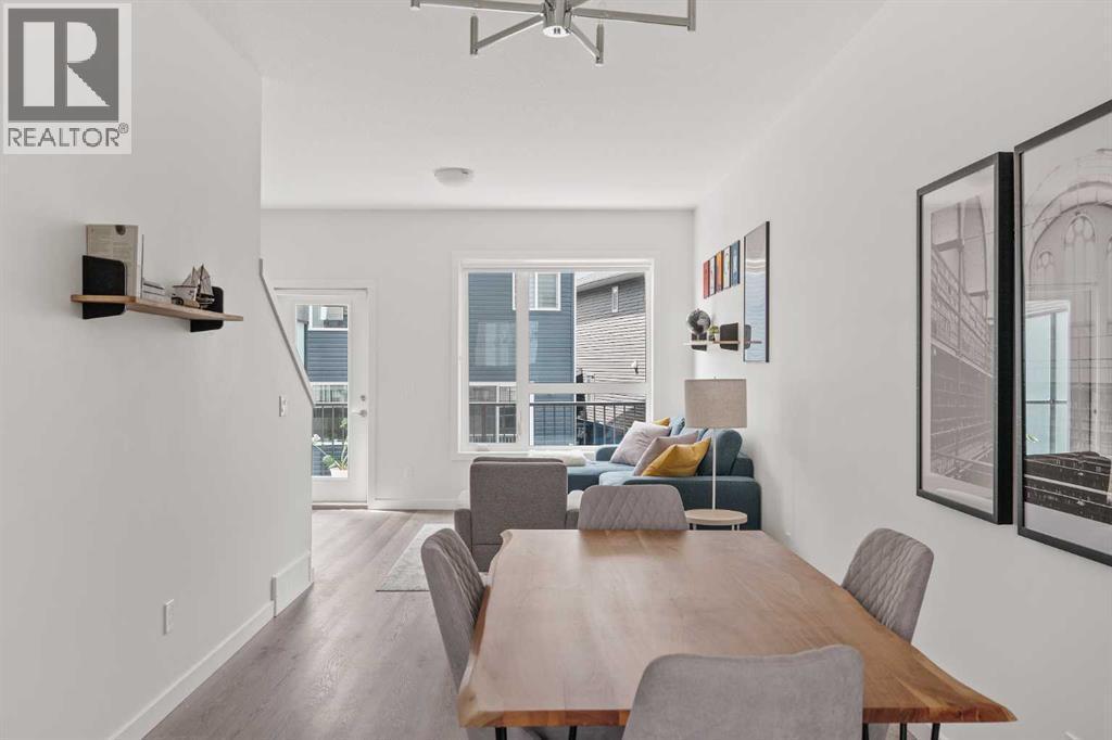 Maintenance-free living awaits in this sophisticated and modern townhome that has been lovingly cared for and is in like-new condition. Open and airy with oodles of natural light, stylish décor and a convenient dual master floor plan, this beautiful home is sure to impress. Park your vehicle safely out of the elements in the attached garage (with extra parking on the private driveway) and proceed into the entry level with a large flex space providing a ton of versatility for media, games, work or play. The second level is a stylish retreat with a bright and open floor plan leading to unobstructed conversations. Sit back and relax in the living room with an oversized window and a patio door to the expansive balcony with a gas line encouraging casual barbeques and time spent unwinding. Centring the open concept space is the dining room, perfect for entertaining. Culinary explorations are inspired in the beautiful kitchen featuring a plethora of 2-toned cabinets, stainless steel appliances, timeless subway tile and a breakfast bar that makes mornings a breeze. A handy powder room completes this level. Dual primary bedrooms grace the upper level, both are extremely spacious and bright with dual closets and private ensuites, perfect for roommates! Convenient upper level laundry adds another layer of ease to your routine. Set in an emerging, amenity-rich community with newly established schools, commercial developments, playgrounds, and green spaces, this location balances tranquillity with accessibility. Just minutes to Metis Trail, Stoney Trail, Country Hills, Costco, Cross Iron Mills, and the airport—this is truly a connected, convenient place to call home. (id:6769)