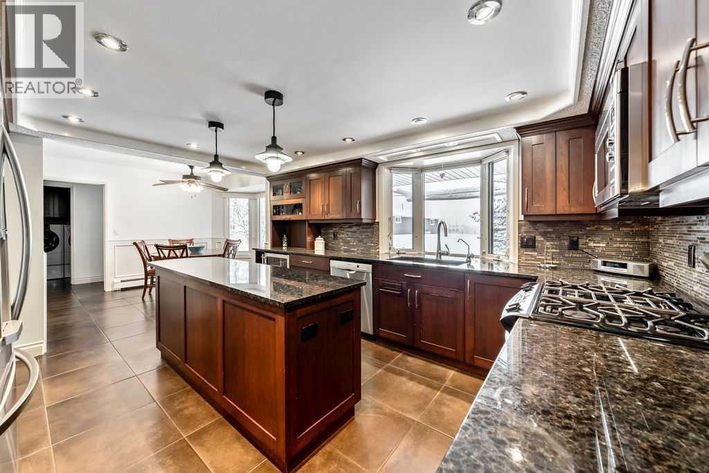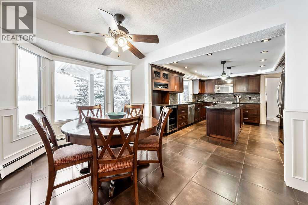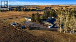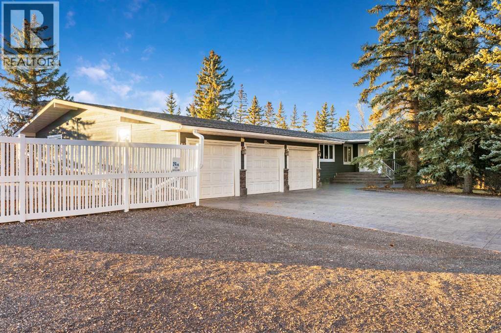Welcome to 200, 202035 80th Street West. This beautifully treed and well-maintained acreage offers outstanding privacy and an incredibly convenient location, just minutes from Calgary and Okotoks. Set on 2.60 acres and surrounded by mature evergreens, this large bungalow provides 2,775 sq.ft. above grade and over 5,700 sq.ft. of total living space. It’s a rare opportunity to enjoy quiet country living with mountain views while remaining within walking distance to the city.The main level is bright and welcoming, with a spacious front entry, rich hardwood floors and large windows overlooking the property. The dining and sitting rooms are warm, comfortable spaces with plenty of natural light. The kitchen is practical and well-designed, offering full-height cabinetry, granite counters, a large island, wine storage and a sunny breakfast nook with a clear sightline into the backyard.The primary suite offers a true sense of retreat with its impressive dimensions, easily accommodating a king bed, space for a reading area and lounge furniture. The custom walk-in closet delivers outstanding organization, and the beautifully finished ensuite features a deep soaker tub, glass shower, double vanity and rich wood cabinetry. Two additional bedrooms, a full bathroom, an office or den, a family room, a mud room and a laundry room complete the main level.The lower level is fully developed and adds a lot of flexibility, with a large recreation area, bar space, media room, three more bedrooms, two bathrooms, several storage rooms and a convenient kitchenette. This would be a great fit for large families, multigenerational living or anyone wanting extra space for hobbies or entertaining guests. A steam room is roughed in and ready for the next owners to finish if desired.Outside, the property offers both privacy and usable yard space. Tall trees create a natural buffer around the home, and there is plenty of open lawn for recreation, parking or future customization. The fully fe nced garden with elk fencing and raised beds is ideal for growing produce or flowers. The home also has an attached 26' x 50' triple garage with oversized doors, upper storage and lots of room for vehicles or equipment. There is also a separate detached shop with two overhead doors for extra workspace or storage. The property is serviced by a 6 GPM well, a septic tank and field and natural gas.With its excellent location, privacy, square footage and versatility, this acreage is a fantastic opportunity in a highly sought-after area. It offers the quiet of country life while keeping you close to all city amenities. (id:6769)