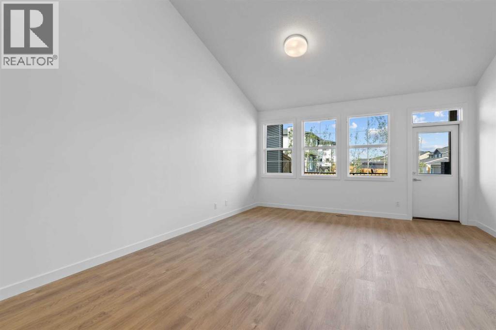 Discover this rare opportunity within Acadia Villas, an exclusive, private gated community nestled in the heart of the award-winning Cooper's Crossing neighborhood. Designed specifically for the discerning downsizer, this community features just 40 meticulously crafted, luxury bungalows, promising both security and serenity. Step into this exceptional bungalow, spanning 1,401 square feet of thoughtfully designed open concept living. The bright and airy ambiance in living area is defined by soaring vaulted ceilings that flood the space with natural light, enhancing the sense of spaciousness and grandeur. The main floor has an ideal layout which hosts 1 bedroom plus den and two full bathrooms, complemented by a practical back hall and a dedicated laundry room for ultimate convenience. The primary bedroom is a true sanctuary, featuring its own vaulted ceiling and generous proportions. The opulent five-piece ensuite is a spa-inspired finishes complete with a walk-in shower, a decadent freestanding soaker tub, and elegant double sinks. Throughout the home, you will find premium finishes including sleek quartz countertops with undermount sinks, durable luxury vinyl plank, and sophisticated tile flooring in all bathrooms. Every detail reflects an unwavering commitment to luxury and low-maintenance living. For those envisioning even more living area, the unfinished basement presents limitless potential. This expansive space offers the opportunity to add additional bedrooms, an expanded entertainment area, or a personalized recreational space—ensuring the home can grow with your changing needs. Acadia Villas provides luxury living without compromise, offering the independence of a bungalow with the security and maintenance-free ease of a gated community. (id:6769)