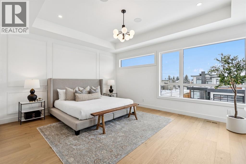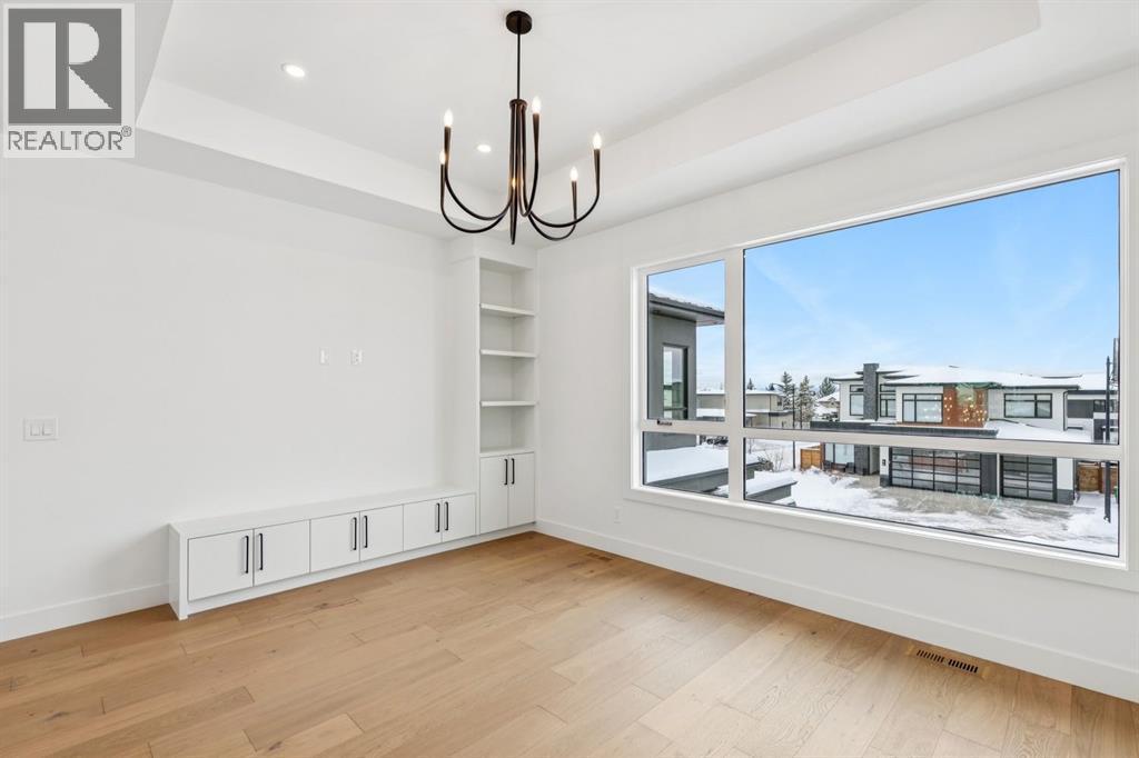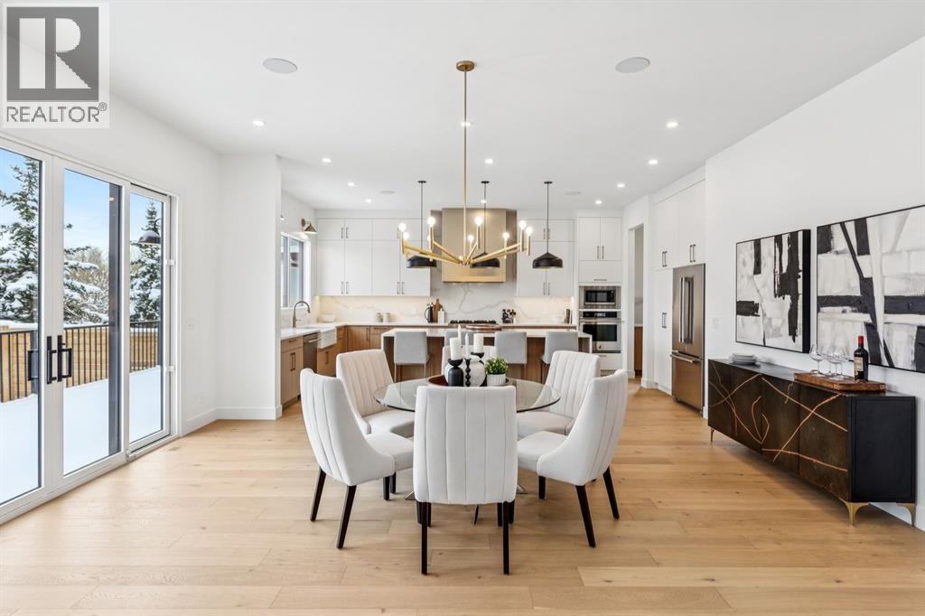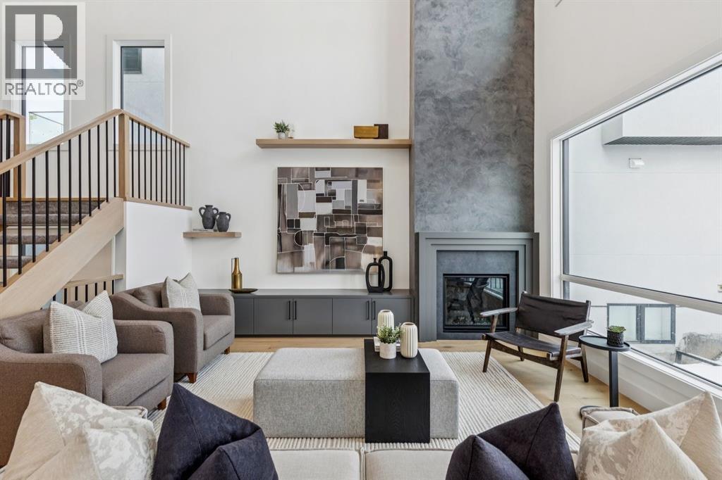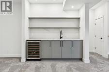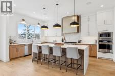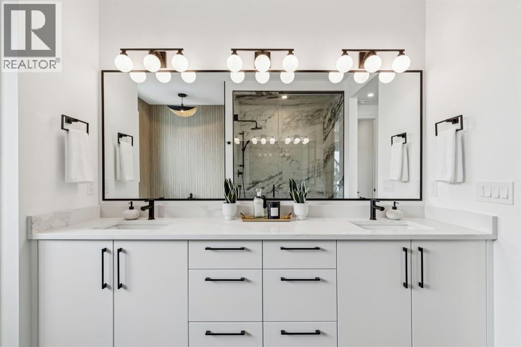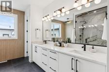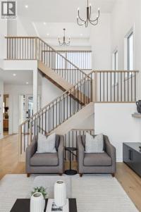 Welcome to this luxury modern residence by A|K Design & Development, perfectly situated in a premier cul-de-sac surrounded by high-end homes in prestigious Elveden Park. Offering over 3,300 sq ft above grade, this contemporary masterpiece delivers timeless design, upscale finishes, and exceptional functionality. The grand open-concept main floor features a dramatic open-to-below living room with custom built-ins and a striking plaster fireplace. The gourmet kitchen is the centrepiece of the home, showcasing a large quartz island, designer gold range hood, high-end JennAir appliances, and a walk-through pantry with direct access to the heated triple attached garage. An exceptional mudroom with built-in lockers and a full closet provides outstanding everyday convenience. A dedicated main-floor office and elegant design details complete the level. An impressive open-rise staircase leads to the upper floor, where a spacious bonus room anchors the family space. The luxurious primary retreat is designed to impress with a tray ceiling, private lounge area, and an oversized walk-in closet. The spa-inspired ensuite offers double vanities, a large walk-in shower, a soaker tub, and designer feature walls—creating a serene sanctuary for relaxation. Two additional bedrooms, each with its own walk-in closet, share a beautifully appointed bathroom with double vanities. The fully developed basement is crafted for entertainment and wellness, featuring a large family room with built-ins and theatre wiring, a rec area, a stylish wet bar with wine cooler, and a separate gym with a full mirrored wall. Zoned heated floors add comfort throughout. Additional highlights include: heated triple attached garage, smart-home readiness, rough-ins for A/C, Vacuflo, and an alarm system. A rare opportunity to own a luxury home in one of Calgary’s most exclusive neighbourhoods, surrounded by parks, top-rated schools, and upscale amenities. (id:6769)
