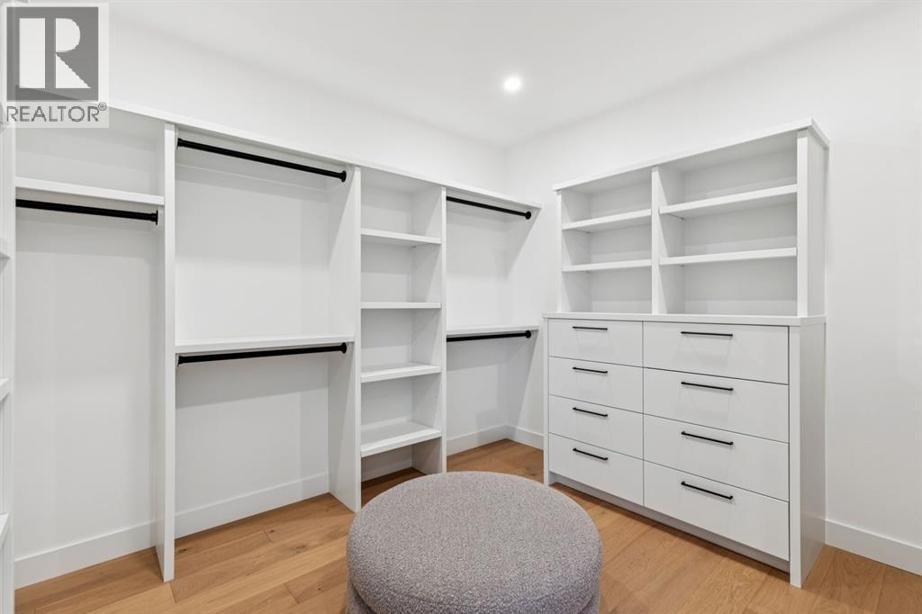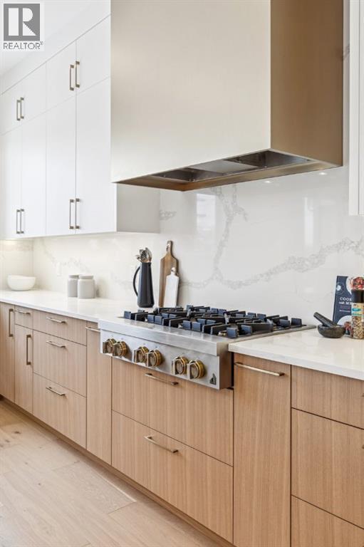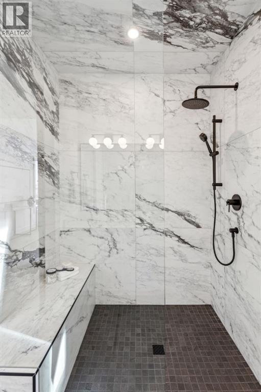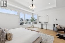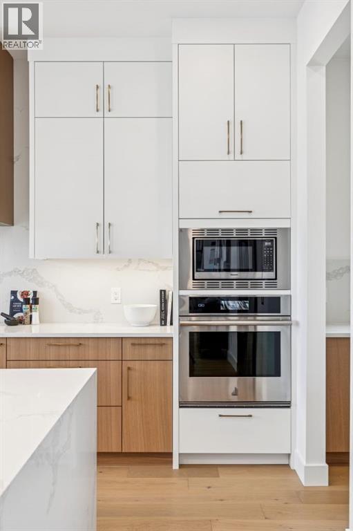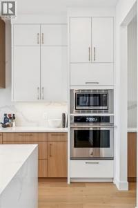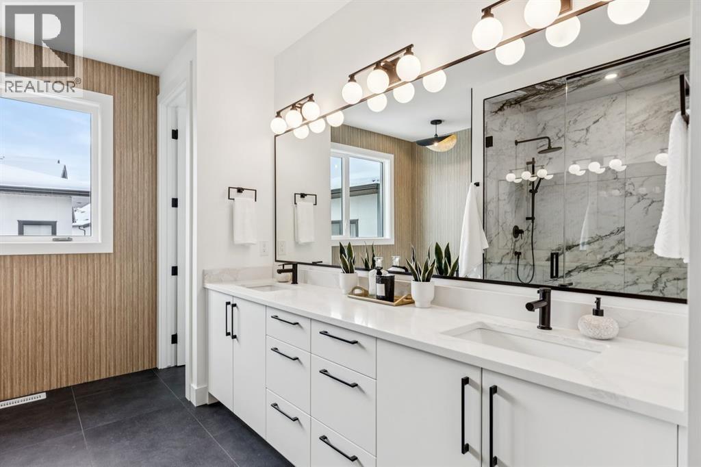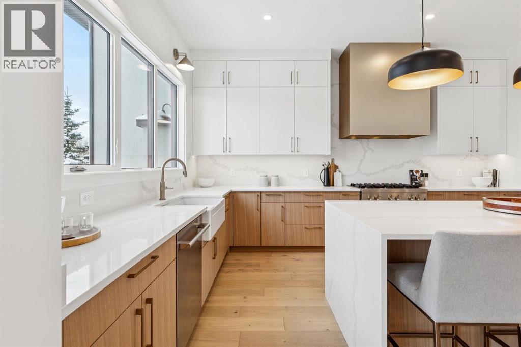 Welcome to this luxury modern residence by A|K Design & Development, perfectly situated in a premier cul-de-sac surrounded by high-end homes in prestigious Elveden Park. Offering over 3,300 sq ft above grade, this contemporary masterpiece delivers timeless design, upscale finishes, and exceptional functionality. The grand open-concept main floor features a dramatic open-to-below living room with custom built-ins and a striking plaster fireplace. The gourmet kitchen is the centrepiece of the home, showcasing a large quartz island, designer gold range hood, high-end JennAir appliances, and a walk-through pantry with direct access to the heated triple attached garage. An exceptional mudroom with built-in lockers and a full closet provides outstanding everyday convenience. A dedicated main-floor office and elegant design details complete the level. An impressive open-rise staircase leads to the upper floor, where a spacious bonus room anchors the family space. The luxurious primary retreat is designed to impress with a tray ceiling, private lounge area, and an oversized walk-in closet. The spa-inspired ensuite offers double vanities, a large walk-in shower, a soaker tub, and designer feature walls—creating a serene sanctuary for relaxation. Two additional bedrooms, each with its own walk-in closet, share a beautifully appointed bathroom with double vanities. The fully developed basement is crafted for entertainment and wellness, featuring a large family room with built-ins and theatre wiring, a rec area, a stylish wet bar with wine cooler, and a separate gym with a full mirrored wall. Zoned heated floors add comfort throughout. Additional highlights include: heated triple attached garage, smart-home readiness, rough-ins for A/C, Vacuflo, and an alarm system. A rare opportunity to own a luxury home in one of Calgary’s most exclusive neighbourhoods, surrounded by parks, top-rated schools, and upscale amenities. (id:6769)