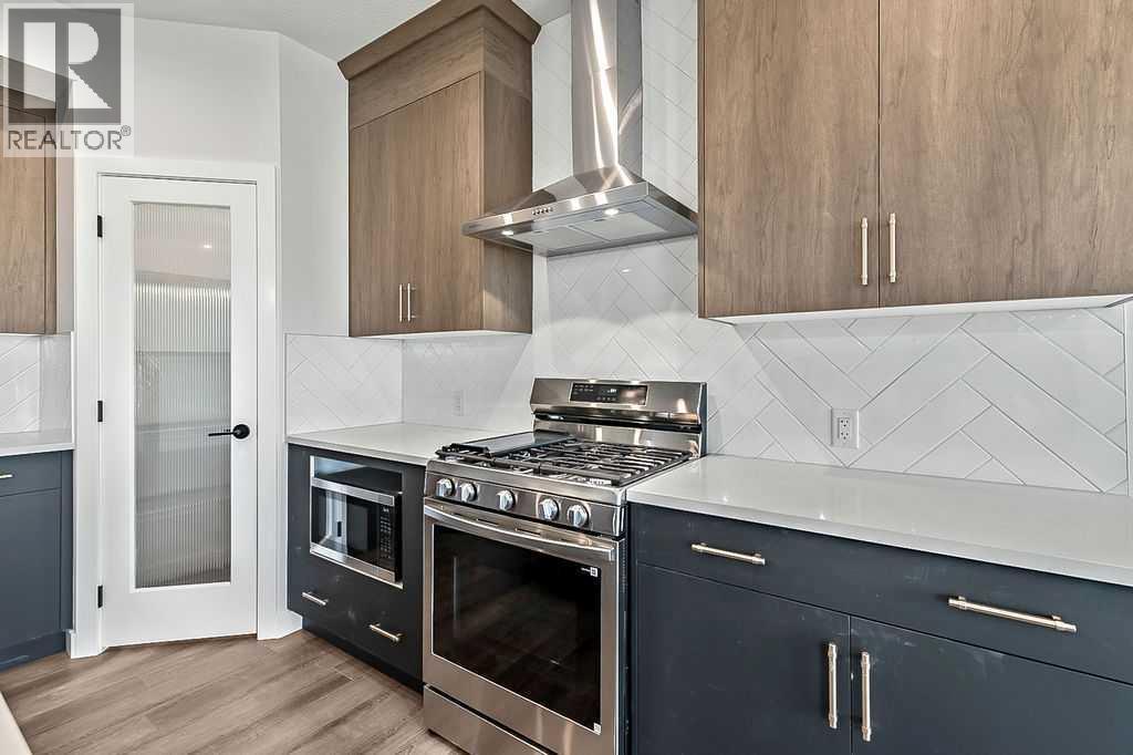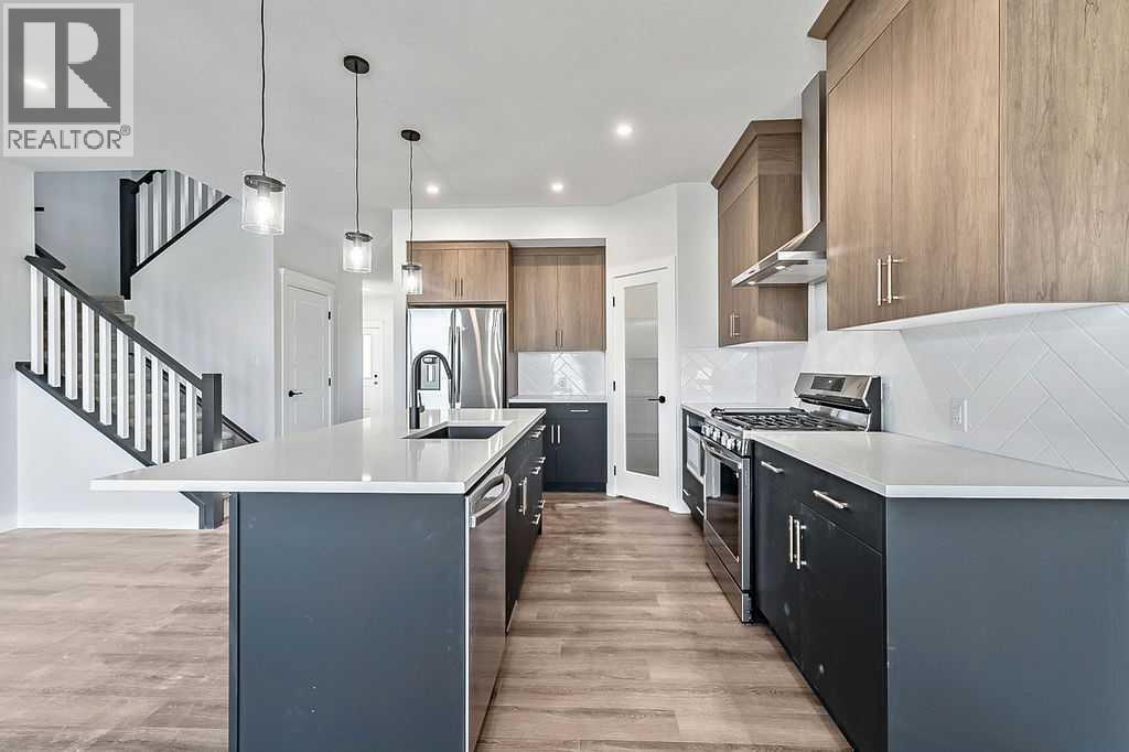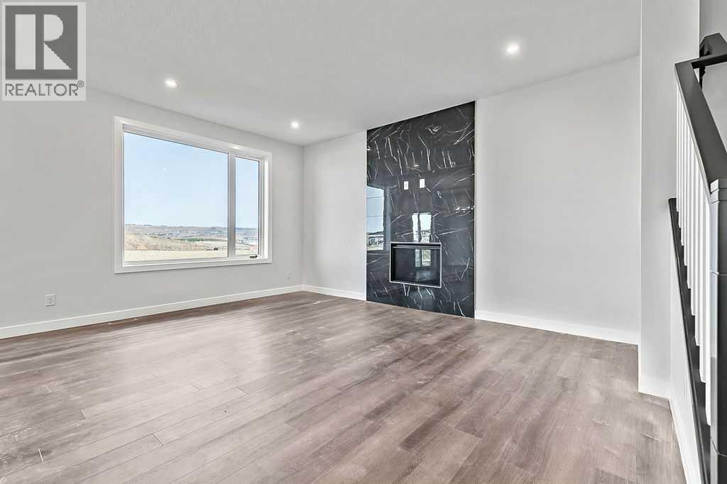 Purchase this home in January 2026 and Nuvista Homes will pay your first three mortgage payments, or on any spec home and you will receive a cheque for $10,000 after possession. Located in the vibrant new community of Southbow Landing in South Cochrane, this exquisite brand new residence provides over 2,000 square feet of living space, embracing modern comfort with classic elegance. The THOUGHTFULLY DESIGNED floor plan offers three spacious bedrooms and two and a half baths, perfect for families or anyone seeking refined living. The 9' ceilings on the main floor create a sense of openness and airiness. The kitchen features gorgeous cabinetry featuring extended upper cabinets for ample storage. Quartz countertops offer both functionality and sophistication, while the gas fireplace in the living room adds warmth and an inviting ambiance. The main floor showcases luxury vinyl plank flooring, chosen for both its beauty and durability. Whether you're entertaining guests or enjoying a quiet evening, the seamless flow of this level makes it perfect for any lifestyle. Upstairs has a central bonus room that offers privacy by separating the serene primary suite from the secondary bedrooms. This area is ideal for a family playroom or a cozy retreat. The convenience of an upstairs laundry room enhances the livability of the space. There is a rear deck that extends off the eating area, perfect for summer barbecues and relaxing evenings. The home includes an EXTRA WIDE DOUBLE ATTACHED GARAGE, providing both security and convenience for your vehicles and storage needs. The allure of this property extends beyond its walls, as it is situated in the burgeoning community of Southbow Landing. Exciting plans for the neighbourhood include ample green spaces, schools, and scenic pathways. Quick and easy access to downtown Calgary and the majestic Rocky Mountains. This home is not just a place to live—it’s a lifestyle, offering exceptional quality, space, and location. Welcome to y our new Southbow Landing home BUILT BY NUVISTA HOMES, ONE OF CALGARY'S PREMIER BUILDERS known for top rated customer service. (id:6769)