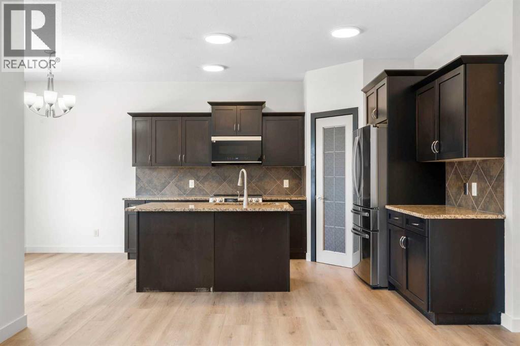 | FULLY RENOVATED | 3 BED & 2.5 BATH | BONUS ROOM & OFFICE | DOUBLE GARAGE | Welcome to this beautifully renovated home in the highly sought-after community of Williamstown in NW Airdrie—where comfort, style, and convenience come together effortlessly. Thoughtfully updated throughout, this property showcases high-end upgrades including new appliances, premium vinyl plank flooring, 40oz carpet, fresh paint, updated baseboards and trims, and more. Set in a vibrant, family-friendly neighbourhood, Williamstown offers unmatched walkability to parks, scenic pathways, peaceful ponds, the Nose Creek Preserve, and multiple amenities. A charming southwest-facing front porch sets the tone—perfect for morning coffees and relaxed evenings. Step inside to a private foyer with a coat closet, leading into a bright, open-concept main floor bathed in natural light. Newly installed flooring, a soft neutral colour palette, and large windows create a welcoming and airy feel throughout the year. A versatile office off the main living area doubles as a family room or den, offering flexibility for any lifestyle. The spacious living room features a rare gas fireplace and views of the backyard. The kitchen—designed for both everyday living and entertaining—includes granite countertops, white steel appliances, a large island, dark cabinetry, upgraded pot lighting, and a pantry for added storage. The adjacent dining area is surrounded by picturesque windows, offering an inviting space for meals or gatherings. Down the hall is a discreet powder room combined with the laundry area, along with a well-designed mudroom that connects directly to the oversized double garage, complete with epoxy flooring and LED lighting. Upstairs, the new plush carpeting ties the space together beautifully. The east wing features a massive bonus room with three large front-facing windows—ideal for an entertainment setup. The west wing hosts the spacious primary suite with a walk-in closet and a luxurious 4-piece ensu ite. Two additional bedrooms and a second full bathroom complete the upper level. The undeveloped basement provides a blank canvas, equipped with bathroom rough-ins and a large egress window, ready for your future vision. Outside, the generous backyard is primed for summer enjoyment with a large deck perfect for BBQs and gatherings. You're steps from Herons Secondary School, moments from shopping centres, and just a quick hop to local transit and QE2—making daily errands and commuting a breeze. This exceptional home delivers the perfect blend of lifestyle, location, luxury and is truly the BEST VALUE in Airdrie. Don’t miss your chance—book your private showing today. (id:6769)