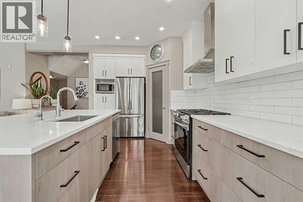 ***OPEN HOUSE - Saturday November 29 from 1-3 pm***Welcome to your beautifully updated family home in the highly sought-after community of Royal Oak. Situated on a quiet street and set on a large pie-shaped lot, this property offers the perfect blend of style, comfort, and pride of ownership shows both inside and out.Step inside to a spacious, inviting front entry that flows into a bright open-concept main floor. The newly renovated chef-inspired kitchen is a true standout, featuring a large island with extra seating, farmhouse sink, corner pantry, stainless steel appliances, and a gas stove, perfect for cooking and entertaining. Spacious dining room offers access to the backyard! The adjoining living room offers warmth and charm with its gas fireplace, creating the ideal space to unwind. A 2pc powder room and convenient main floor laundry room complete this floor!Upstairs, you'll find three generously sized bedrooms, with a shared 4pc bath. The primary suite is massive with 5pc ensuite with large soaker tub, shower, his & her sinks and walk-in closet! The large bonus room contains vaulted ceilings - ideal for movie nights, a playroom, or a home office setup. All bathrooms have been recently refaced, adding a fresh, modern feel throughout.The fully finished basement expands your living space with a huge recreation room, tons of storage, and potential to easily add a fourth bedroom if desired.Enjoy the outdoors in your expansive west facing backyard, complete with a large deck, hot tub, and a gas line for your BBQ — perfect for summer gatherings and relaxing evenings.With a double attached garage, updated finishes, and a prime location close to schools, parks, pathways, and amenities, this Royal Oak gem truly has it all. Book your showing today! (id:6769)