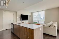Perched on the 9th floor with sunny south and east views of the downtown core and the sunny south towards the Elbow river, this corner unit is a must see. Calla is a long-time favourite in the Beltline for its location and walkability to downtown and 17 Avenue. This 2-bedroom, 2-bathroom layout is a favourite in the building as it is one of the largest floorplans in the building and rarely these style units come available. With 961 square feet, large windows, and consistent sun exposure. It is an ideal space for someone who enjoys everything inner city life has to offer. As you enter this floorplan foyer creates a defined entry away from the main living area. The open concept living space is functional and bright. Floor to ceiling windows showcase the downtown skyline which can be enjoyed both day and night. Dark espresso laminate floors pair with the kitchen, which features a large quartz island and well-appointed storage. The kitchen flows to the dining and living areas and opens to a private SE balcony with room to relax as well as space for a barbecue. The two bedrooms sit on opposite sides of the unit, which is an ideal layout. The primary bedroom has a walkthrough closet and a 4-piece ensuite with a stand-up shower and soaker tub. The second bedroom is spacious and works well as a bedroom, office or flex room. A walk-through closet connects to a 3-piece bath. In suite laundry and strong storage complete the interior. This unit has had some recent updates which include fresh paint, new carpet, new washer/dryer, upgraded faucets, central AC and more. Calla provides great amenities such as concierge, a fitness room, yoga space, sauna, guest suite, bike storage, and visitor parking plus secure storage rooms on the same floor as the unit. One titled parking stall is included. This home is ideal for singles or professional couples who want inner city convenience and to be in the heart of walkable accessibility to everything you need. (id:6769)