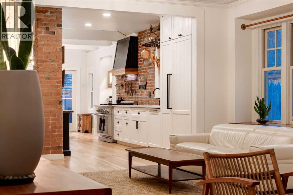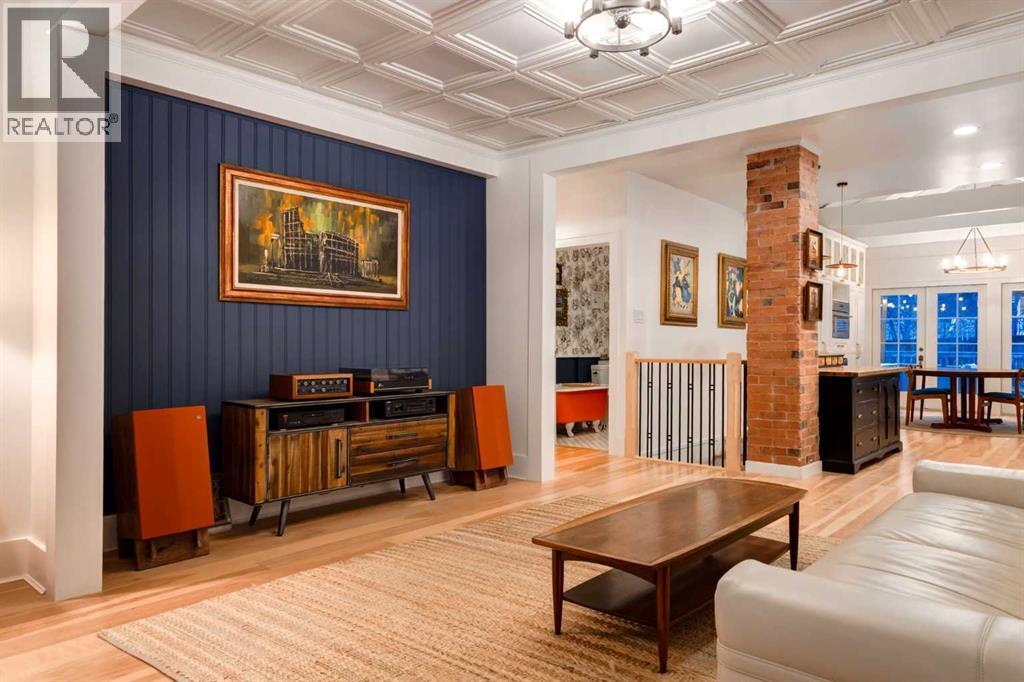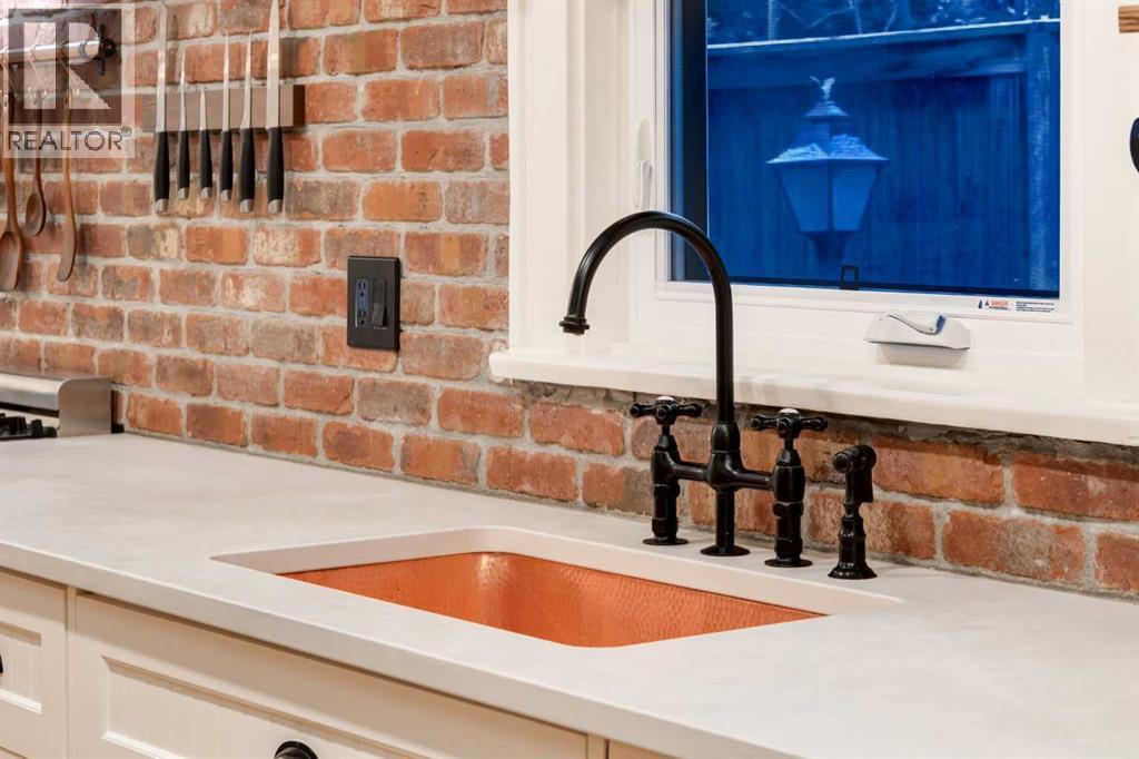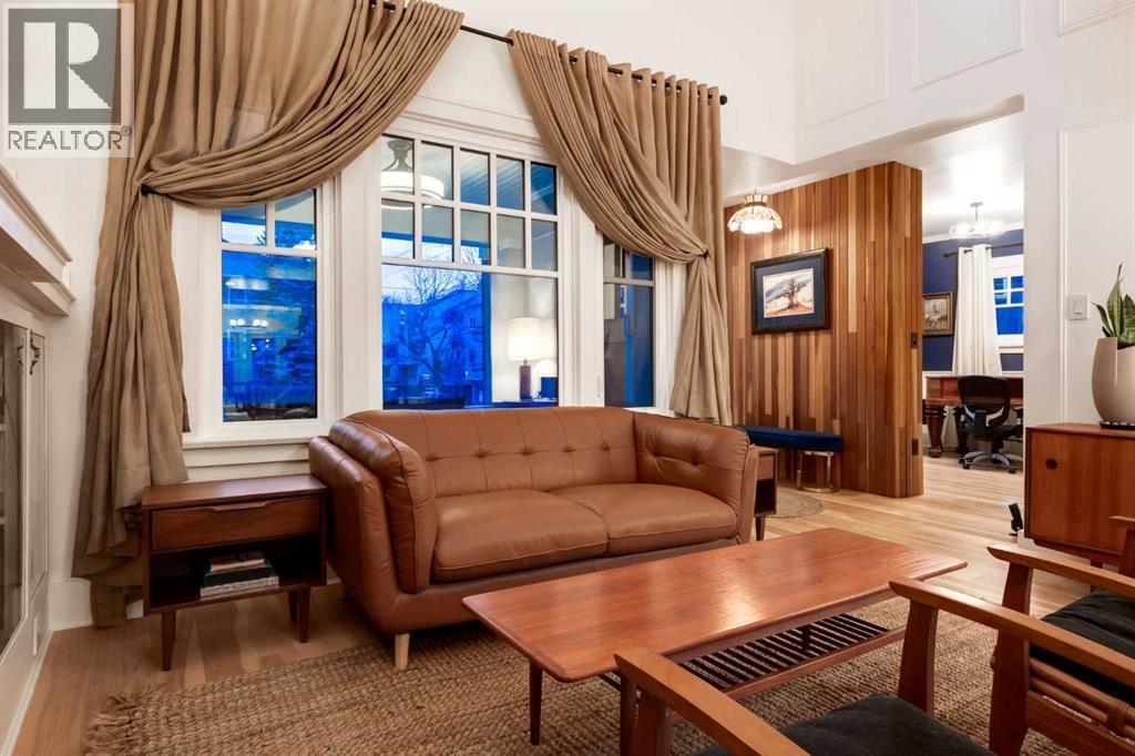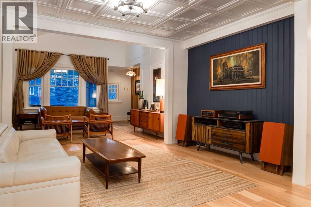 OPEN HOUSE SATURDAY - 11AM to 3PM. Set in Upper Mount Royal, this beautifully renewed Craftsman home offers an exceptional blend of architectural charm, bespoke finishes, and modern, high-performance upgrades. Surrounded by mature trees and framed by artful landscaping, the property rests on a quiet, private street just a short walk from 17th Avenue, yet feels worlds away in its tranquility. A covered front porch welcomes you into a residence defined by warmth and craftsmanship. The front gardens are meticulously designed with rock wall detailing, perennial plantings, and carefully placed rock borders with new sod installed in 2023. Established species anchor the outdoor spaces with year-round texture and colour, all maintained by a five-zone sprinkler system. At the rear of the home, double French doors open onto an expansive wraparound deck - a series of outdoor living and dining spaces that celebrate the home’s connection to nature. Inside, the residence unfolds with a curated blend of original detail and modern sophistication. Engineered hardwood floors span the main and upper levels, while custom wallpaper, stained glass sconces, coffered ceilings, vaulted ceilings—including one with a skylight—and built-in shelving create an atmosphere of timeless charm. The original brick chimney remains a focal point, preserving the home’s architectural story. The kitchen is both beautifully crafted and superbly equipped. Custom wood and beadboard cabinetry, Caesarstone countertops, and a brick backsplash are paired with a suite of premium appliances and a custom hood venting system. Details such as the copper sink, overhead potholder, and a dedicated coffee and scotch bar elevate both daily living and entertaining. The home’s bathrooms carry the same blend of history and refinement. The main bath features a classic clawfoot tub, while the primary ensuite is a true retreat, complete with a custom antique double vanity topped with hardwood counters, an oversized glass shower with gold-finished rain and hand-held fixtures, heated floors, and the original butler’s door connecting directly to the walk-in closet. The lower level offers extensive storage and a hidden room that lends itself beautifully to your own private “speakeasy”, music room, cigar and scotch lounge, or personal retreat. A new asphalt roof was installed in 2023, and a 21-panel, 8.91-kilowatt solar array added in 2025. Nearly all windows and the rear doors have been upgraded to Lux units, complemented by JELD-WEN windows in select spaces. The electrical service was upgraded to 200 amps in 2023, the furnace control board was replaced in 2024, and on-demand hot water is installed. The heated, oversized double attached garage offers exceptional utility with direct access to the home, easily accommodating two vehicles with extra space for other “toys”. This Upper Mount Royal residence embodies luxury in its truest form—not through excess, but through craftsmanship, character, and an enduring connection to place. (id:6769)