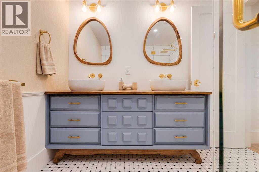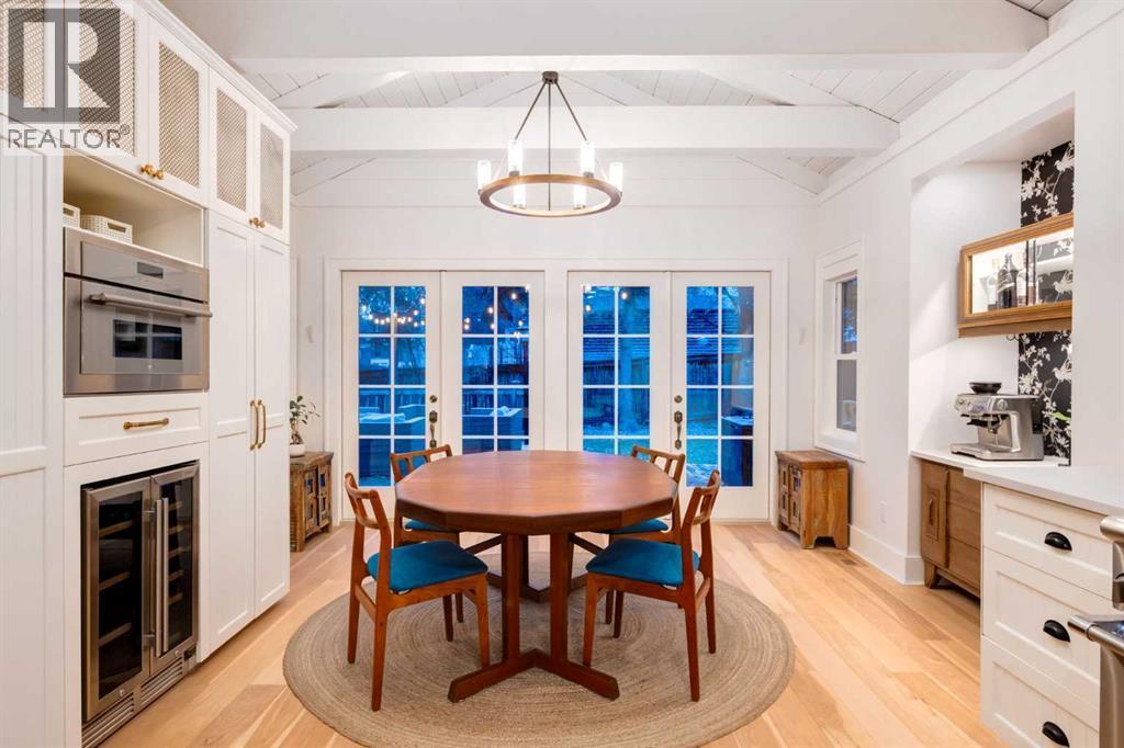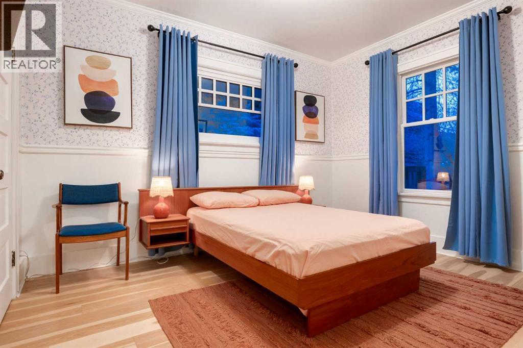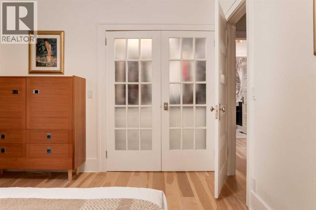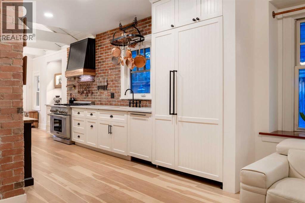OPEN HOUSE SATURDAY - 11AM to 3PM. Set in Upper Mount Royal, this beautifully renewed Craftsman home offers an exceptional blend of architectural charm, bespoke finishes, and modern, high-performance upgrades. Surrounded by mature trees and framed by artful landscaping, the property rests on a quiet, private street just a short walk from 17th Avenue, yet feels worlds away in its tranquility. A covered front porch welcomes you into a residence defined by warmth and craftsmanship. The front gardens are meticulously designed with rock wall detailing, perennial plantings, and carefully placed rock borders with new sod installed in 2023. Established species anchor the outdoor spaces with year-round texture and colour, all maintained by a five-zone sprinkler system. At the rear of the home, double French doors open onto an expansive wraparound deck - a series of outdoor living and dining spaces that celebrate the home’s connection to nature. Inside, the residence unfolds with a curated blend of original detail and modern sophistication. Engineered hardwood floors span the main and upper levels, while custom wallpaper, stained glass sconces, coffered ceilings, vaulted ceilings—including one with a skylight—and built-in shelving create an atmosphere of timeless charm. The original brick chimney remains a focal point, preserving the home’s architectural story. The kitchen is both beautifully crafted and superbly equipped. Custom wood and beadboard cabinetry, Caesarstone countertops, and a brick backsplash are paired with a suite of premium appliances and a custom hood venting system. Details such as the copper sink, overhead potholder, and a dedicated coffee and scotch bar elevate both daily living and entertaining. The home’s bathrooms carry the same blend of history and refinement. The main bath features a classic clawfoot tub, while the primary ensuite is a true retreat, complete with a custom antique double vanity topped with hardwood counters, an oversized glass shower with gold-finished rain and hand-held fixtures, heated floors, and the original butler’s door connecting directly to the walk-in closet. The lower level offers extensive storage and a hidden room that lends itself beautifully to your own private “speakeasy”, music room, cigar and scotch lounge, or personal retreat. A new asphalt roof was installed in 2023, and a 21-panel, 8.91-kilowatt solar array added in 2025. Nearly all windows and the rear doors have been upgraded to Lux units, complemented by JELD-WEN windows in select spaces. The electrical service was upgraded to 200 amps in 2023, the furnace control board was replaced in 2024, and on-demand hot water is installed. The heated, oversized double attached garage offers exceptional utility with direct access to the home, easily accommodating two vehicles with extra space for other “toys”. This Upper Mount Royal residence embodies luxury in its truest form—not through excess, but through craftsmanship, character, and an enduring connection to place. (id:6769)