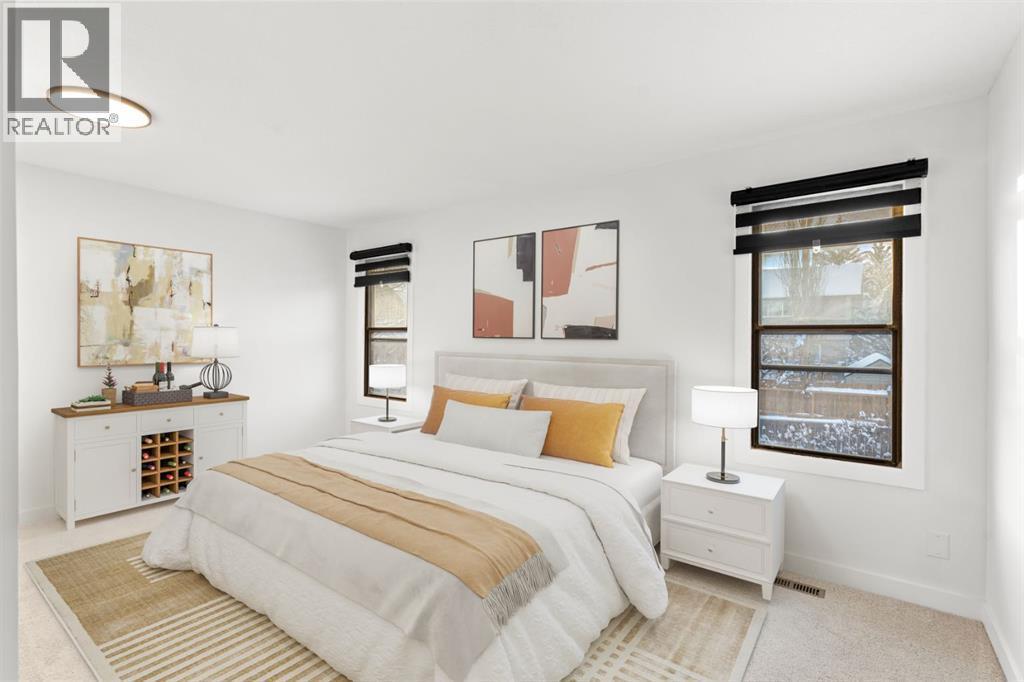Welcome home to this freshly updated two-storey gem in lovely MacEwan Glen—move-in ready for the Holidays. With 1,700+ sq.ft. of developed living space on a 35’ x 101’ lot, this home delivers modern comfort and real-life practicality. The bright front living room features a cozy wood-burning fireplace and large windows that flood the space with natural light. At the heart of the home is a newly designed chef’s kitchen, complete with full-height cabinetry, quartz counters, decorative tile backsplash, new Whirlpool stove & Bosch dishwasher, stylish central island, and designer lighting. The dining nook opens onto an expansive west-facing backyard via sliding doors—perfect for BBQ's or evening wind-downs on the deck. Upstairs, two generous bedrooms (including a roomy primary) sit alongside a fully remodelled 4-pc bath with a tiled tub/shower and quartz-topped vanity. The lower level also shines with new carpet, pot lights, a newly cut-in egress window, and flexible space ideally suited for media, hobbies, or a home gym. Fully fenced with alley access, the west yard provides ample space to play or relax. A tandem front parking pad adds everyday convenience. Notable 2025 updates include: new roof, hot water tank, fridge, stove, front door, interior doors, flooring (LVP, carpet, tile), wall paint, kitchen (cabinets, quartz counters, tile backsplash), half bath, full bath, basement egress window, exterior wood siding and fence paint. A warm, modern home in an established NW community—this one’s worth the visit. (id:6769)