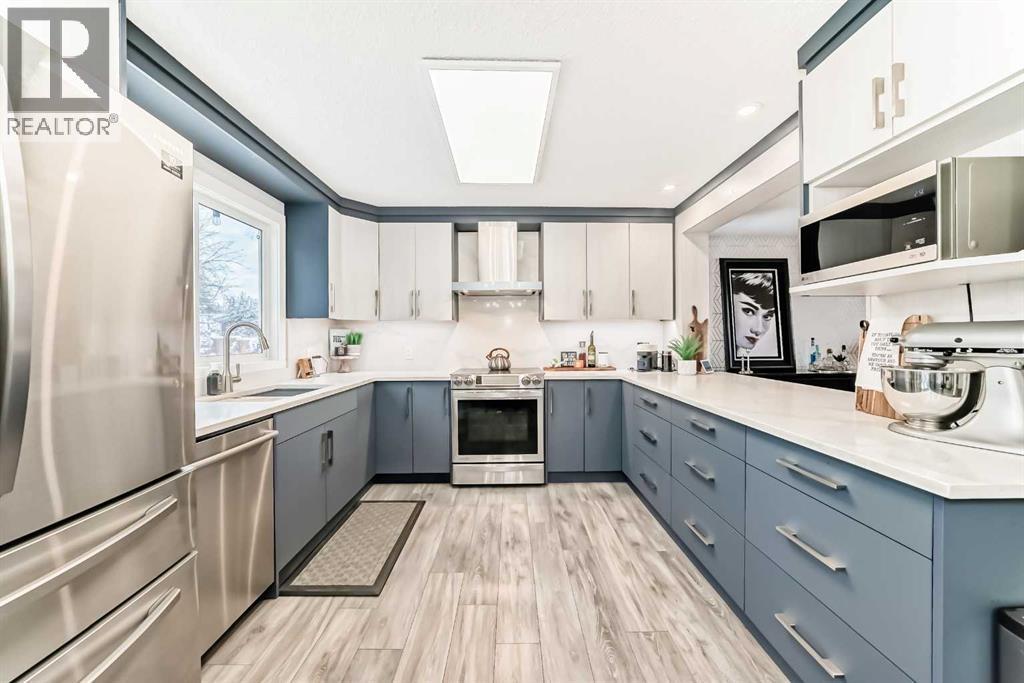 This exceptional updated 5 bed/3.5 bath + office two storey home, in the highly desirable & mature Deer Run Estates is a must see! Located on a quiet cul de sac, the home sits on on a huge pie lot, and perfect for a family at any stage of life. Walking up to the home, you'll appreciate the flagstone walkway, Gemstone lighting, widened driveway for plenty of parking & new overhead garage door on the heated & insulated double attached garage. The first things to catch your eye upon entry is the soaring ceilings, full wall of windows & grand staircase with rock feature wall, gorgeous modern chandeliers and engineered hardwood & luxury vinyl plank flooring. The generous open concept living & dining spaces with wet bar is ideal for hosting large gatherings with family & friends. The fully renovated kitchen features modern two tone cabinetry, all new appliances with an induction range & convection oven (but also has a gas connection in behind), quartz counters and breakfast nook with new lighting. The sunken family room features a large bay window & wood burning fireplace with mantle and built in bookcases on either side, a great spot to enjoy a family movie night. A main floor office/bedroom, laundry area, updated powder room & mud room area complete the main floor. Upstairs you'll find a large bonus area, perfect for the teens in your life to relax. The serene primary suite features a generous sleeping area with large bay window overlooking the private backyard, and good sized walk in closet. The fully renovated spa-like ensuite features a double vanity w/quartz counters, huge glass steam shower, soaker tub to unwind in at the end of the day, in-floor heat and loads of additional cabinetry. Two large secondary bedrooms & 5 pc main bath complete the upper level. In the lower level you'll find an illegal suite with full kitchen, large bedroom, games area & large recreation area with a second wood burning fireplace flanked by built ins, plus a huge 4 pc bath. Off the kitc hen the west facing backyard oasis is calling! There you'll find a expansive composite deck with plenty of space for dining al fresco and large lounging area. The large pie shaped yard features newer fencing, artificial turf for kids & fur babies to play, a large flagstone fire pit area (matching with the front flagstone work), landscape lighting, extensive landscaping, drip line irrigation in the gardens, gas line connectors on two sides of the home and two storage sheds. Ideally located a quick walk to Fish Creek Park Bow Valley Ranch & the Bow River, Deer Run Community Centre & tennis courts, and a playground just a block away. Additionally, the home is located close to Deer Valley Marketplace with it's updated shops, restaurants/pubs, Co Op grocery, medical & dental services, fitness center, family fun center & schools/daycares make this the perfect family community. Commuting is a breeze with easy access to Bow Bottom Trail and Deerfoot Trail. Book your showing today! (id:6769)