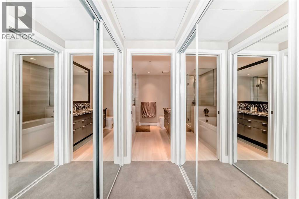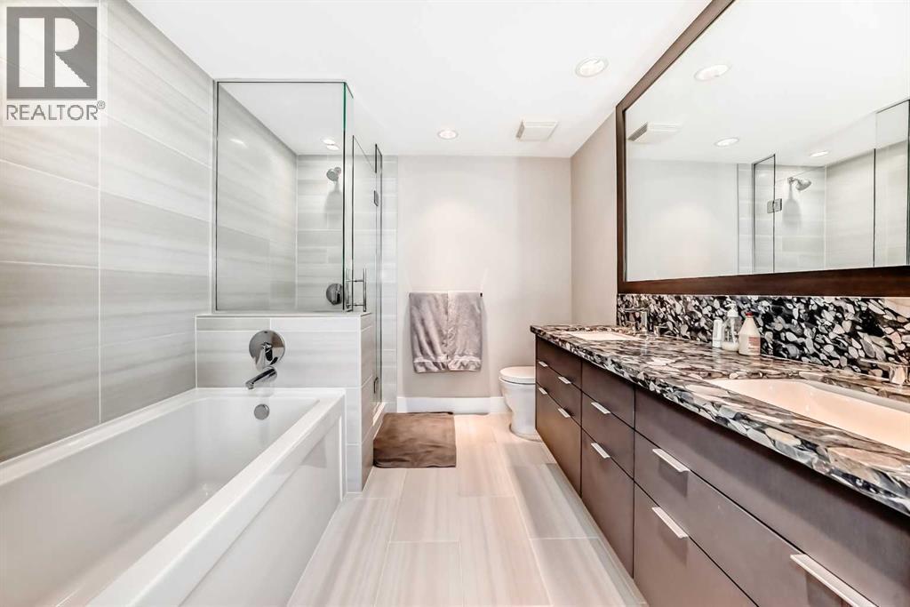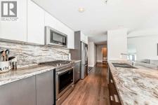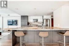 Welcome to one of Calgary's newest and best built high rise luxury living condos with concierge, the Evolution. This two bedroom, two bathroom corner unit has beautiful west sunset views, views of the Calgary Tower as well as river views from the large wrap around patio that is perfect for entertaining, enjoying the sunshine, summer nights and bbq-ing. This open concept unit boasts spacious dining, living, lounging and kitchen areas with a granite natural stone island that provides lots of extra counter space for cooking and dining. The two good sized bedrooms are complemented by their own bathrooms. The master has his and her closets and a five piece en-suite with over sized soaker tub as an added bonus. With many built ins, upgrades, fine finishings, in suite laundry, two parking stalls and storage, this unit has it all. The common areas also provide for a beautiful roof top garden with dining and lounging areas equipped with bbq, a party and recreation room with pool table and full kitchen. Across the hall from the party room is the fitness room with workout machines and sauna. Call to book your private viewing of the East Village's Evolution today! (id:6769)