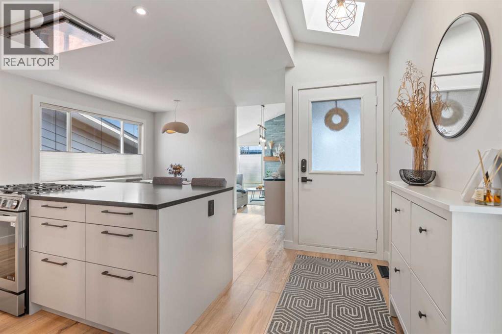 Are you looking for a small town feel in a big city. This beautiful Bowness bungalow with a one bedroom full illegal suite offers so much. 3 bedrooms and 3 bathrooms. The home has been fully renovated to the highest standards with German engineering in mind. The kitchen is HACKER kitchens that is sourced in Germany. The vaulted ceilings and sky lights with the sunken living room offers a feeling of spaciousness and calm. Uniform high quality floors throughout. The dining room is perfect for entertaining and quiet evenings. The bathrooms are modern and European sourced fixtures and custom made vanities. The master retreat offers full views of a full garden and outdoor entertaining. The main floor plan and design is next to none as far as quality and style. The one bedroom suite with complete private entrance has great flow and function. It has a full function kitchen and access to storage and laundry. The one bedroom is large enough for a king size bed and has huge windows. This home is perfectly situated close to grocery stores and walking amenities plus the Main Street of Bowness. Walking paths, bike paths and boutique shopping. Enjoy Bowness park and have a quick zip to the mountains. Skip the townhouse and buy this beautiful home that is move in ready and basically brand new! (id:6769)