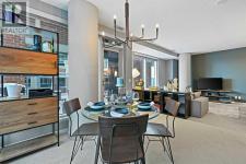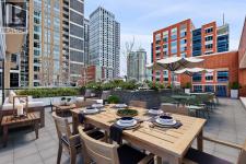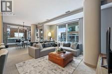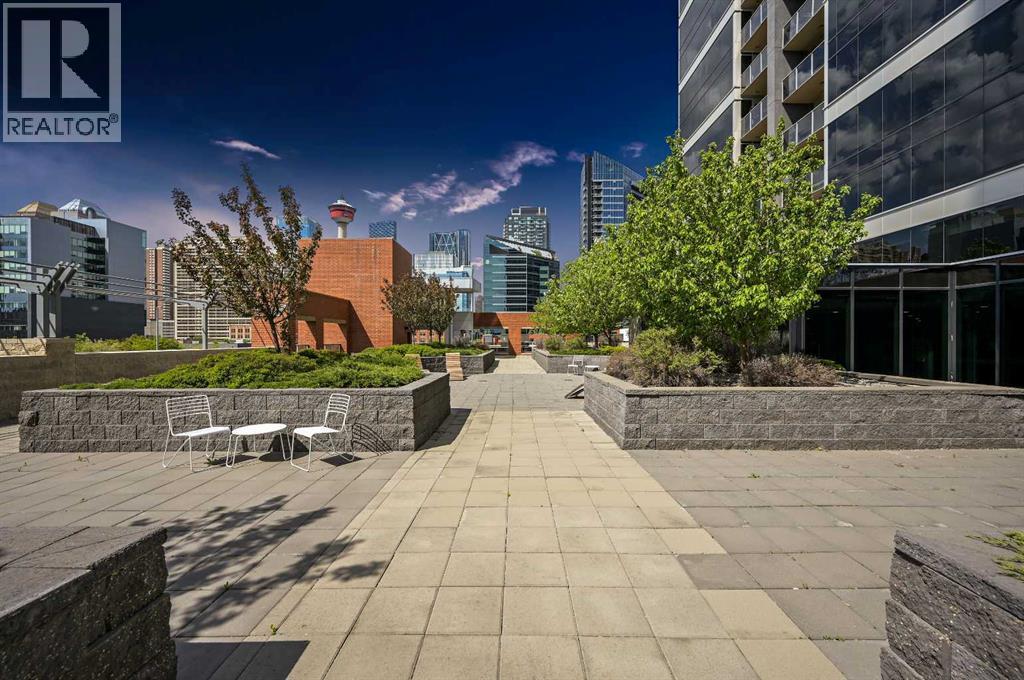 Massive Patio + Prime Downtown Lifestyle Discover urban living at its best in this single-owner 2-bedroom, 2-bathroom condo with an open-concept layout. The kitchen island with quartz counters and stainless steel appliances flows seamlessly into the living and dining area — perfect for entertaining or relaxing at home. Large windows facing the east and south sides of the unit flood the condo with abundant natural lighting. The master suite features a built-in closet and private ensuite, while the second bedroom is ideal for a home office or guest space. Step outside to your patio larger than the condo itself, with South & West exposure — perfect for summer evenings, BBQs, or simply enjoying your private outdoor retreat.Additional conveniences include titled underground parking and an assigned storage locker. Building amenities enhance your lifestyle: fitness center, yoga/wellness space, steam room, landscaped terrace, secure fob access, and 24-hour security. Located just steps from the C-Train, Stampede Grounds, BMO Convention Centre, and the new home of the Calgary Flames, with shops, restaurants, and entertainment all within walking distance, this condo offers the ultimate downtown lifestyle. (id:6769)