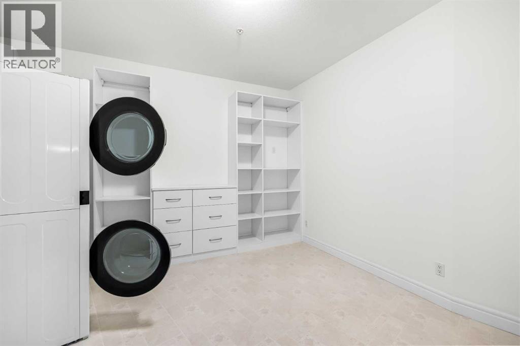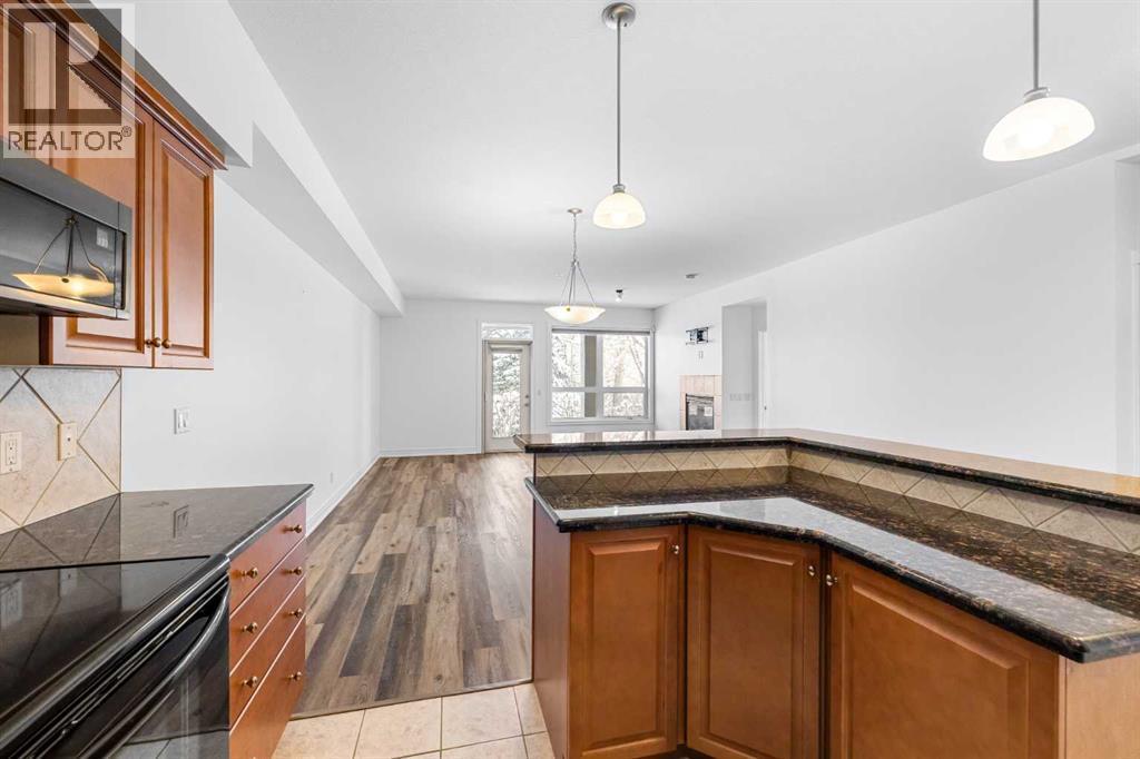Nestled in a serene, natural setting, this beautifully appointed one-bedroom condo offers the perfect blend of modern convenience and outdoor tranquility. Located in a sought-after NW community, the property backs onto the Valley Ridge Golf Course, providing views right from your private living space. Heated by an in floor heat system you will always be at that perfect ambient temperature. Large windows frame picturesque vistas of the rolling hills and mature trees, this home offers a peaceful retreat where nature is always just a step away. Inside, you'll find an open-concept living and dining area, designed to maximize space and light. The living room features large windows that invite the outdoors in, creating a bright and airy atmosphere. The modern kitchen is equipped with stainless steel appliances, oversized island, sleek countertops, and plenty of storage, making it a perfect space for both entertaining and everyday cooking. This main floor unit walks directly out onto your own private patio that spans across the unit providing tons of personal outdoor living space. The spacious bedroom provides a comfortable haven, with ample closet space and more of those views of the golf course and surrounding greenery. The ensuite is stylishly designed, offering a clean, contemporary feel with all the amenities you'd expect for ultimate relaxation. There is a flex room that has been used as an office with builtins, and shares a space with in-suite laundry making laundry day a breeze without the need to leave the comfort of your home. This unit also comes with two underground heated parking stalls, ensuring you'll never have to worry about parking, no matter the weather, as well as a separate storage locker to keep your seasonal items, sporting equipment, and extra belongings neatly tucked away. The complex is surrounded by nature trails and pathways, perfect for outdoor enthusiasts who enjoy hiking, biking, or simply strolling through the scenic surroundings. The Valley Ridge Golf Course offers a stunning backdrop, with beautifully manicured fairways and a peaceful atmosphere, making this condo an ideal location for those who appreciate a connection to nature without sacrificing the conveniences of urban living. Whether you're relaxing in the comfort of your own home or exploring the outdoors, this condo offers the best of both worlds—privacy, convenience, and an unparalleled connection to the beauty of nature. It’s a perfect place for anyone seeking a peaceful and modern living space with easy access to outdoor recreation and stunning views. (id:6769)