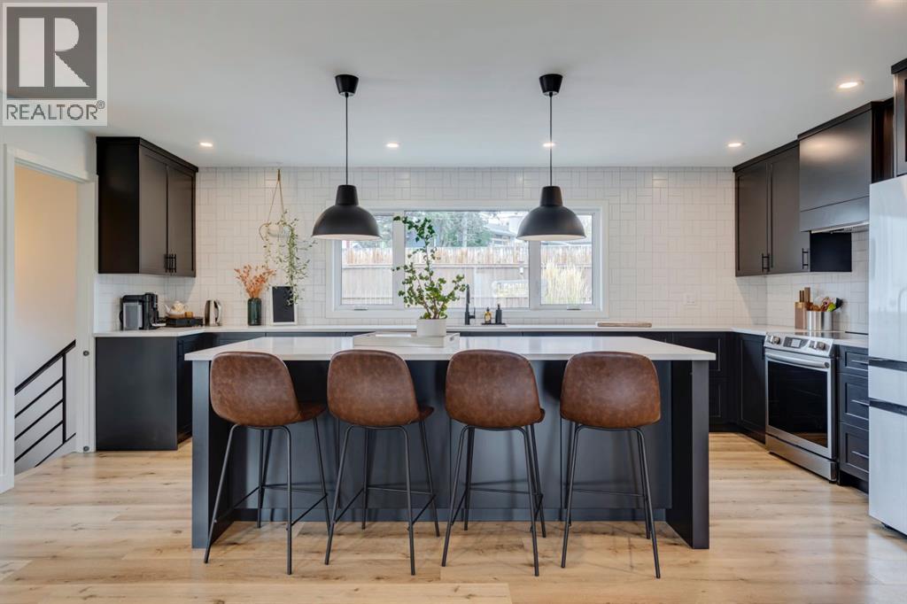 **OPEN HOUSE NOV.30TH FROM 2-4PM** Welcome to one of Maple Ridge’s most desirable pockets, where active lifestyle meets bespoke luxury. This STUNNING, fully renovated bungalow is an entertainer’s dream, perfectly situated steps from Calgary’s top city-owned golf course and a large community green space. Enjoy unparalleled year-round recreation, from summer golf and winter sledding to ski-in/ski-out cross-country skiing right outside your door. Driving up, the home’s captivating curb appeal is instantly noticeable. The charming exterior features upgraded triple pane windows, defined by tasteful black trim, contrasting beautifully against the white stucco cladding and decorative archways. Step inside to be greeted by seamless front-to-back sight lines that flood the open-concept living space with maximum natural light. The heart of the home is the meticulously crafted gourmet kitchen, maximizing both functionality and style. It flows seamlessly through the spacious dining area, the manicured backyard, and the charming living room - anchored by two beautiful south facing windows. The primary suite offers a true sanctuary with a generous walk-in closet and a spa-inspired 4-piece ensuite featuring a sleek, curb-less shower. The main level is completed by two additional well-sized bedrooms, a modern 3-piece bathroom with ample storage, and a practical office nook. You'll continue to be impressed by the fully developed basement. It hosts a massive wet bar that could also function as a second full kitchen (if desired), equipped with a sink, full-sized fridge, dishwasher, stove top, and microwave hood fan, plus an island with seating. The basement’s open floor plan is ideal for a media room, play area, or multi-purpose use. Two large additional bedrooms and a 3-piece bathroom complete this versatile living space. The outside presents a professionally landscaped backyard, maximized for multiple uses, including a poured concrete sitting area, a fire-pit zone, and grass space. It also provides secure trailer storage via the paved alley. The front detached garage is a mechanic or hobbyist’s dream, measuring a large 22’ x 23’, drywalled, insulated, and equipped with a sub-panel and 220V plugs. Complete with unmatched efficiency and peace of mind with updated hvac, electrical, plumbing, roofing, insulation, and so much more! Located on a quiet street with little to no traffic, this home provides a safe, mature neighborhood to call your own. **Be sure to view the full detailed UPGRADE LIST and 3D VIRTUAL OPEN HOUSE TOUR for a better look** (id:6769)