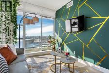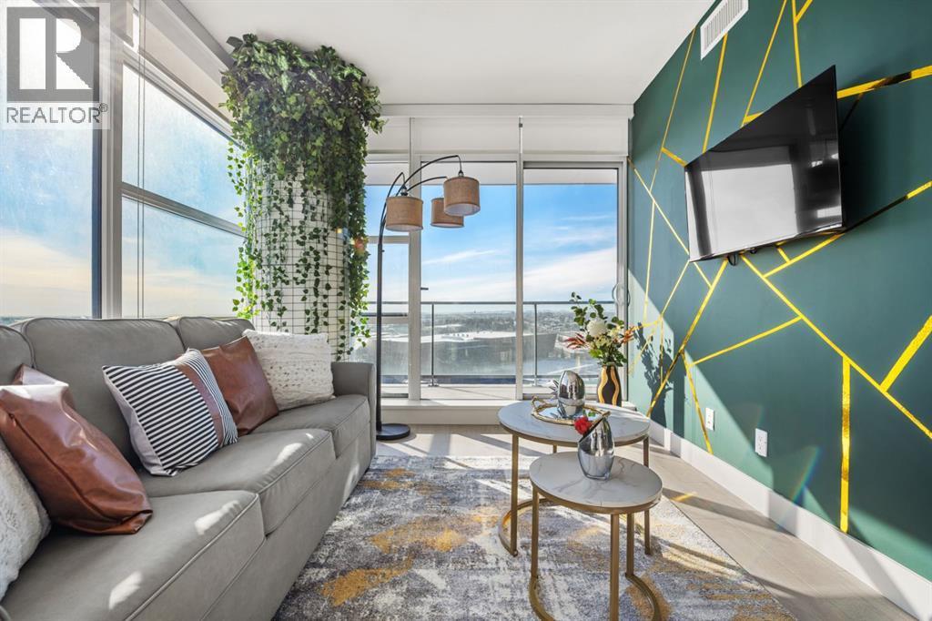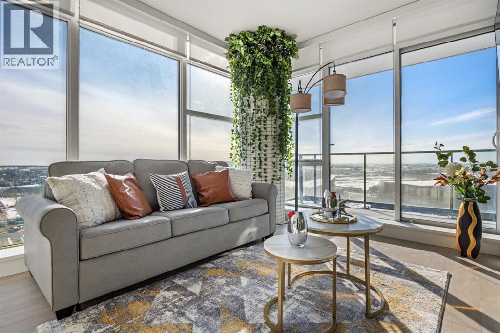 Premium Corner Unit with Unmatched Views in The Guardian South Tower.Step into elevated urban luxury with this exceptional, fully furnished corner residence on the 20th floor of The Guardian — Calgary’s tallest residential tower. Perfectly positioned in the most desirable stack of the building, this rare opportunity offers unobstructed panoramic views of the mountains, Bow River, downtown skyline, and Calgary’s emerging entertainment district, including the upcoming events centre and new stadium.From sunrise to sundown, the floor-to-ceiling glass walls flood the space with natural light and provide a cinematic backdrop to every room — a feature only available in premium-tier corner units.Inside, the home boasts:•Two well-separated bedrooms for privacy and functionality•A sleek, modern kitchen with high-gloss cabinetry, integrated appliances, and quartz countertops•An open-concept layout ideal for entertaining or executive living•A spacious primary suite with walk-in closet and spa-inspired ensuite•Airy ceilings and high-end finishes that reflect The Guardian’s signature contemporary designProfessionally staged, this suite shows like new — and includes the option to be sold fully furnished, offering an effortless move-in or turnkey investment for corporate stays or luxury short-term rentals.Located in East Village, steps from transit, cafes, the Saddledome, Stampede Park, and the future event hub, this is one of the best-positioned investments in Calgary’s core.?? Includes titled parking and exclusive building amenities such as concierge, gym, social lounge, and workshop. (id:6769)