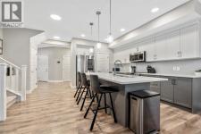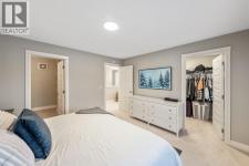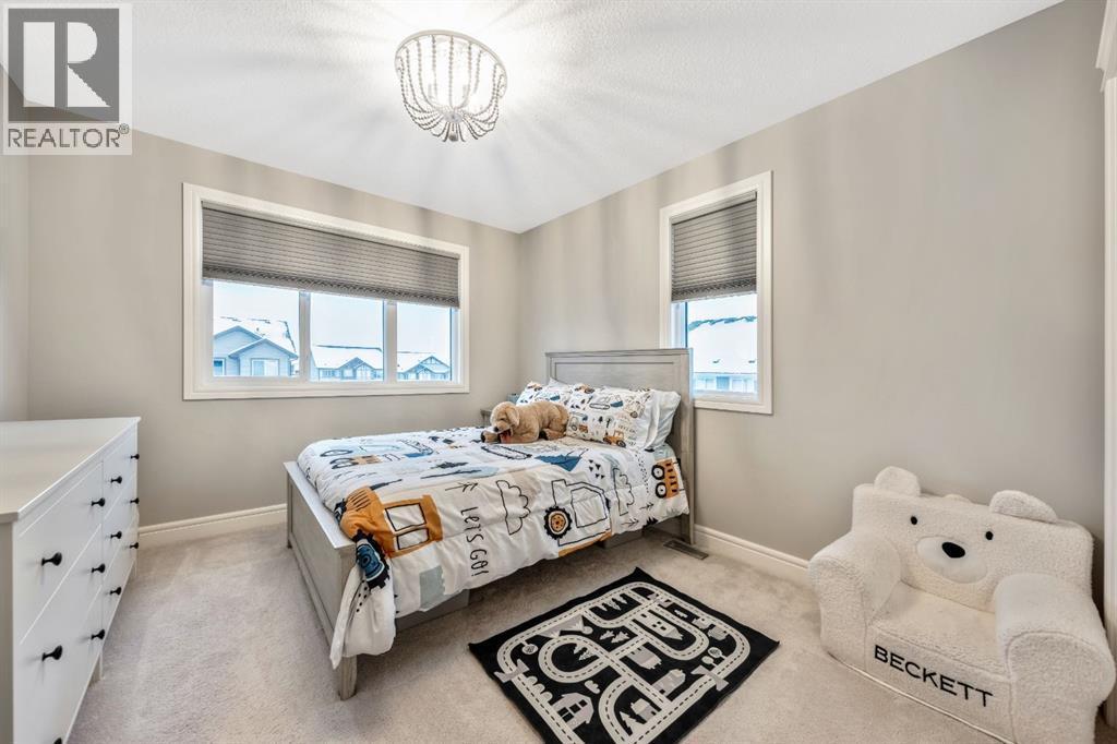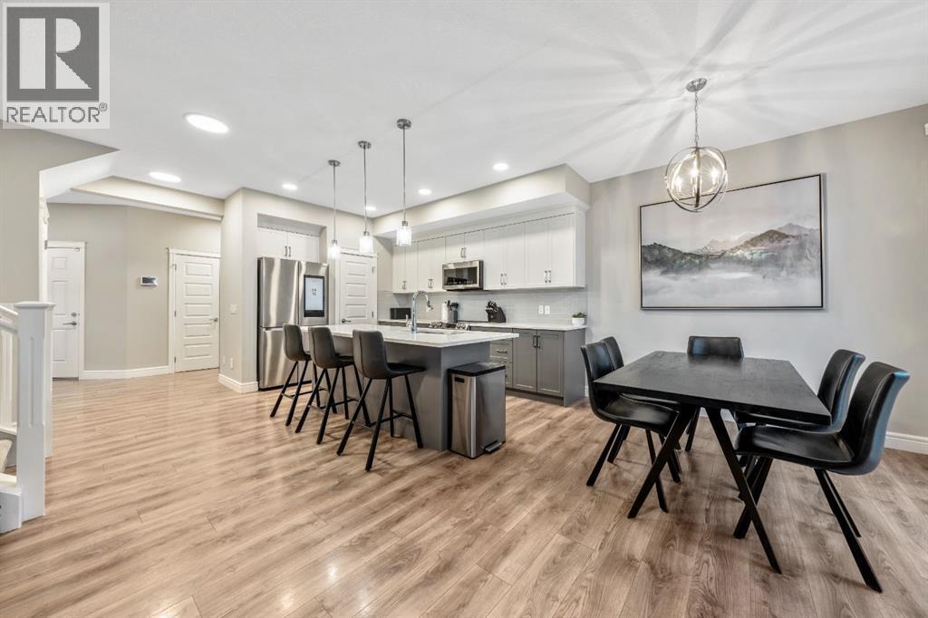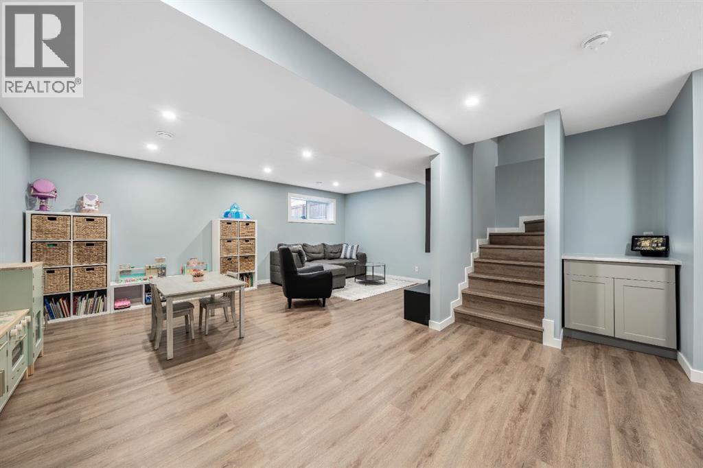 Welcome to this beautifully upgraded, FULLY FINISHED home offering modern finishes, thoughtful design, and exceptional comfort from top to bottom. Set on a fully fenced lot and complete with a HEATED DOUBLE GARAGE, this property is truly move-in ready with nothing left to do. Step inside to a bright, inviting main floor where style meets modern function. The open-concept layout features a stunning kitchen with upgraded appliances—including a smart fridge, induction stove, dishwasher, and microwave—plus a large island perfect for meal prep and gathering. The spacious living room offers a sleek electric fireplace with a custom pull-out mantel designed to discreetly house your media components. The generous dining area flows seamlessly to the private, fully fenced backyard with a storage shed and a gas line on the deck for those summer BBQ nights. Upstairs, the primary bedroom impresses with a luxurious 5-piece ensuite and a walk-in closet. Two additional well-appointed bedrooms share a beautifully finished 4-piece bathroom. The upper level also features a large laundry closet equipped with Samsung appliances, custom cabinets, and built-in shelving for added convenience. The professionally finished (permitted) basement expands your living space with a second electric fireplace, an included TV, and a full 4-piece bathroom with an extra-deep soaker tub—ideal for relaxing after a long day. The heated double attached garage is both comfortable and functional, complete with included wooden shelving for extra storage. Additional features and upgrades include: a tankless water heater, central air conditioning, central vacuum, Gemstone exterior lighting, two electric fireplaces, all window coverings (including blackout blinds), fully fenced yard, and an included storage shed. Located in Heartland, this home offers quick access to nearby amenities and an easy escape to Ghost Lake, Canmore, and the Rocky Mountains—perfect for weekend adventures and everyday convenience. (id:6769)