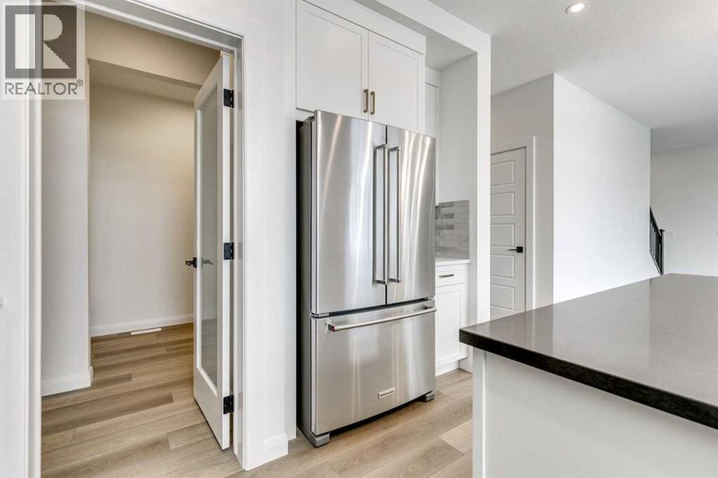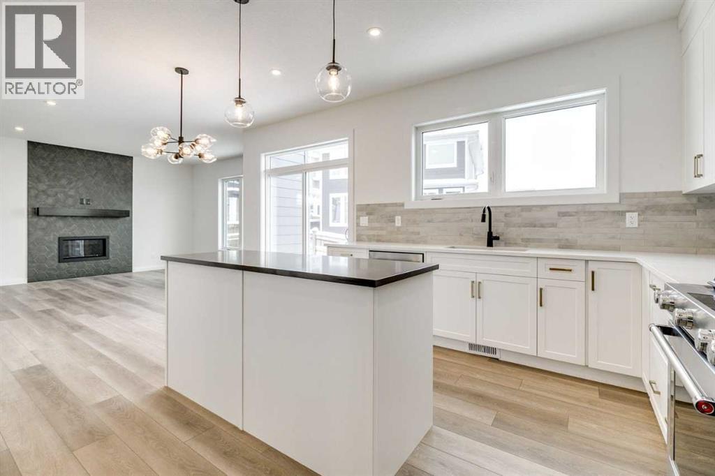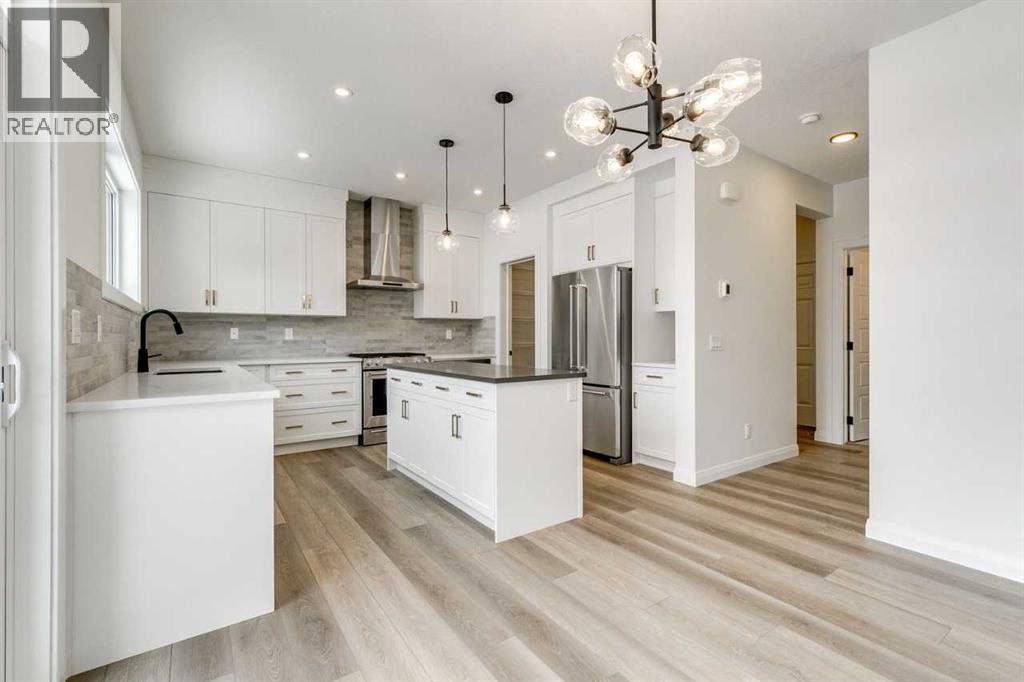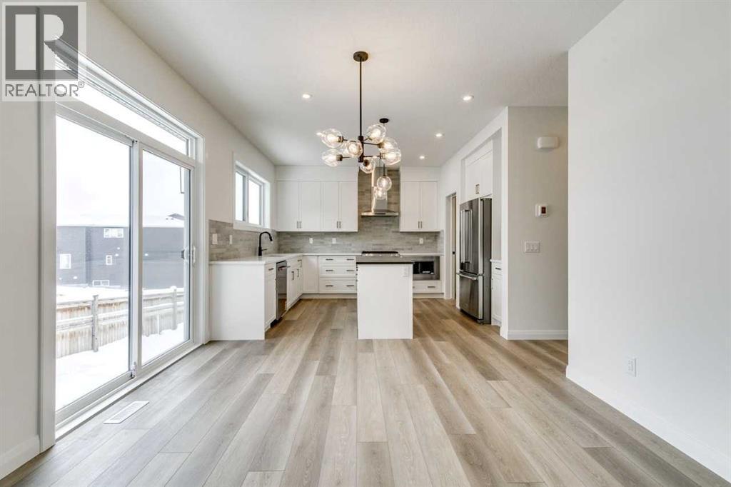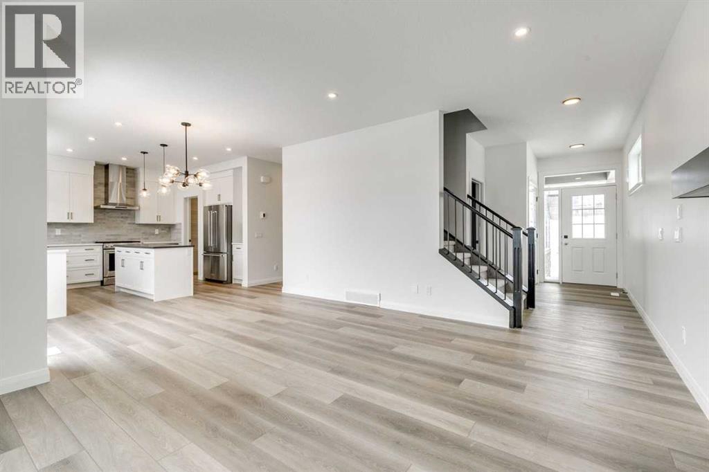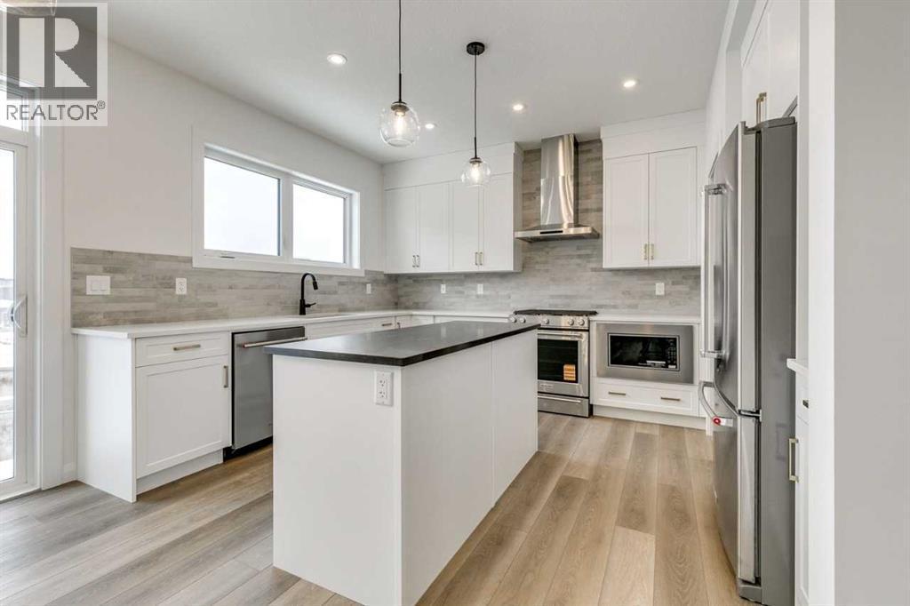 Welcome to the Custom Merritt 2 by Broadview Homes in the desirable community of Hudson Pine Creek — a stunning 2,315 sqft residence walkable to the environmental reserve and designed for modern living. This open-concept layout offers 4 spacious bedrooms, 2.5 baths, a main floor flex room, and a vaulted bonus room perfect for relaxing or entertaining. The chef’s kitchen features stainless steel appliances including a hood fan and built-in microwave, 42” upper cabinets with soffit and crown molding to the ceiling, and sleek granite or quartz countertops. The primary retreat boasts elegant tray ceilings and a luxurious 5-piece ensuite. With 9’ basement ceilings, a sunshine basement, and an oversized double garage, this home blends luxury, comfort, and long-term potential. (id:6769)