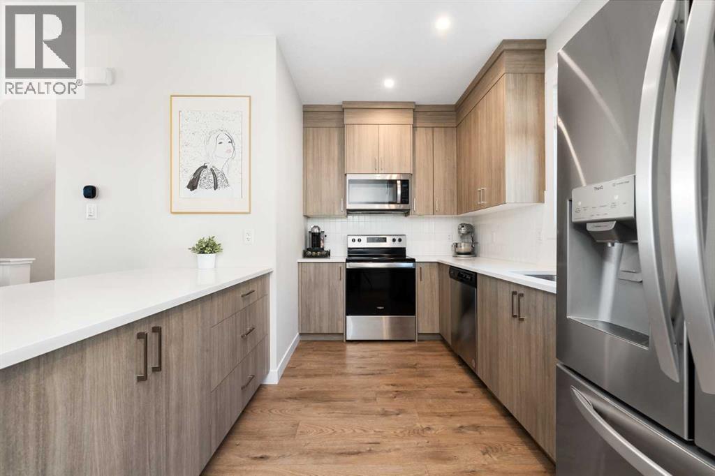 Set in the vibrant and ever-growing community of Brightside in Seton, this modern three-storey townhome delivers an appealing blend of comfort, practicality, and elevated design. Thoughtfully planned and exceptionally maintained, it offers 1,182 square feet of well-used living space, ideal for anyone seeking a contemporary home with smart upgrades throughout. A generous front flex room welcomes you inside—perfect as a home office, fitness nook, or creative studio. From here, direct access to the oversized single attached garage makes day-to-day living incredibly convenient, offering excellent storage options and protection from the elements. Up on the main floor, natural light pours into a bright and open layout. The spacious living room provides a relaxed setting for movie nights and casual entertaining, while the adjacent kitchen is a true standout. Full-height cabinetry, granite countertops, stainless steel appliances, and a well-planned layout make it both stylish and highly functional. A natural gas line on the balcony off the dining area allows for effortless year-round grilling. Hunter Douglas blinds add a refined finishing touch, providing both privacy and a polished look. The top floor is dedicated to two inviting bedrooms, each offering its own ensuite—an incredible feature that enhances comfort, privacy, and versatility for roommates, guests, or small families. The primary suite feels especially welcoming, while the second bedroom mirrors the convenience with its own private bath. An additional half bath on the main level adds to the overall ease of daily life. Comfort is further elevated with central air conditioning for warm summer days, ensuring the home stays cool and enjoyable throughout the season.Outside your door, Seton offers the best of modern suburban living—restaurants, shopping, the YMCA, the South Health Campus, greenspaces, and quick routes around the city. It’s a neighborhood designed for connection and convenience, matching perfectly wi th the thoughtful design of this townhome. With upgraded finishes, two ensuites, a versatile main-floor flex space, and a layout that makes the most of every square foot, this home delivers an effortless blend of style and livability, ready for its next owner to move in and enjoy. (id:6769)