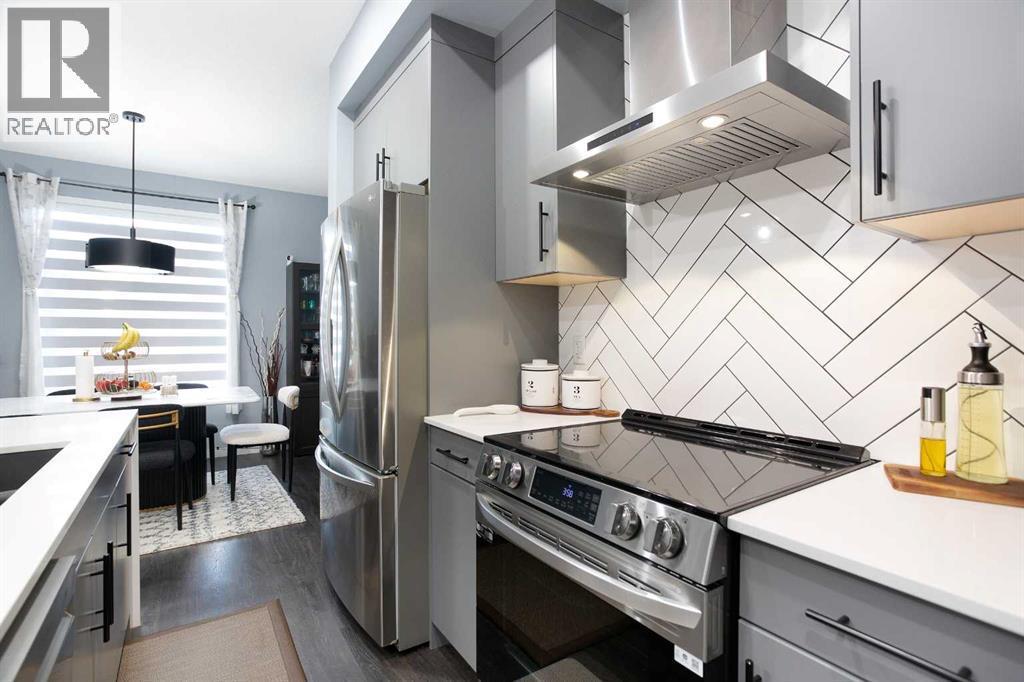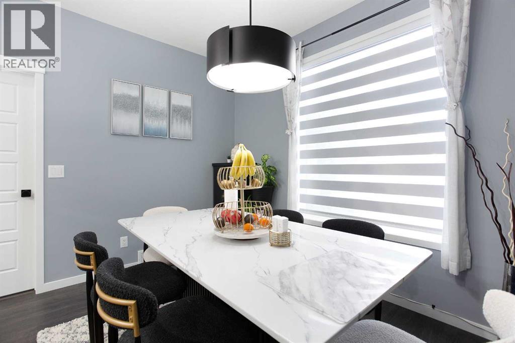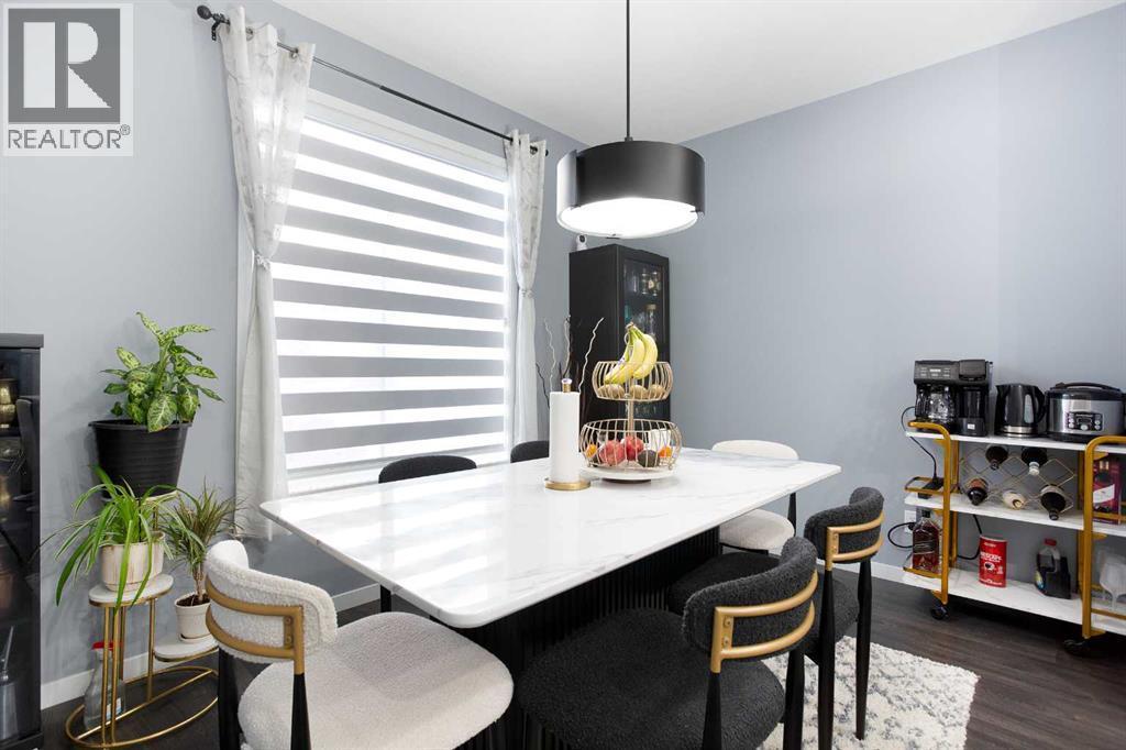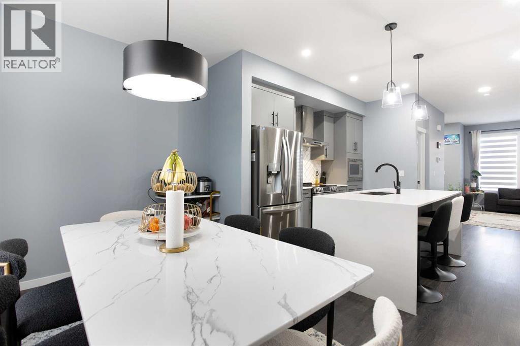 Welcome to this beautifully updated 3-bedroom, 2.5-bath Morrison-built home located in the vibrant, family-friendly community of Belmont, Calgary. Thoughtfully upgraded and meticulously maintained, this home combines modern style with exceptional functionality—perfect for families, professionals, or anyone seeking a move-in-ready home in a rapidly growing area. Step inside to an open and inviting main floor featuring luxury vinyl plank flooring, contemporary finishes, and large windows that fill the space with natural light. The stylish kitchen stands out with quartz countertops, stainless steel appliances, upgraded cabinetry, and a spacious island ideal for cooking, hosting, or casual dining. The adjoining living and dining areas create a seamless flow, making the space perfect for both everyday living and entertaining. Upstairs, you’ll find three generous bedrooms, including a serene primary suite complete with a walk-in closet and a private 4-piece ensuite. Two additional bedrooms, a full bathroom, and a convenient laundry area complete the upper level. Every room feels fresh, modern, and move-in ready. Outside, the property features a well-sized backyard with plenty of room for play, pets, or future personalization. Located just down the street from one of Belmont’s many upcoming commercial plaza, homeowners will soon enjoy walkable access to shops, services, and dining. Several parks, pathways, and playgrounds are within easy walking distance, making it an ideal setting for outdoor lovers and families. With extensive updates, quality construction, and an unbeatable location in one of Calgary’s fastest-growing communities, this Morrison-built home is an exceptional opportunity. Move in and enjoy comfort, convenience, and a lifestyle that continues to improve as the neighbourhood grows. Don't delay, book your showing today. (id:6769)