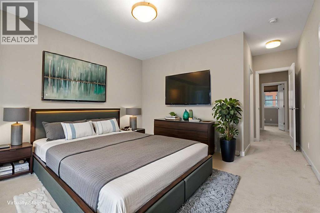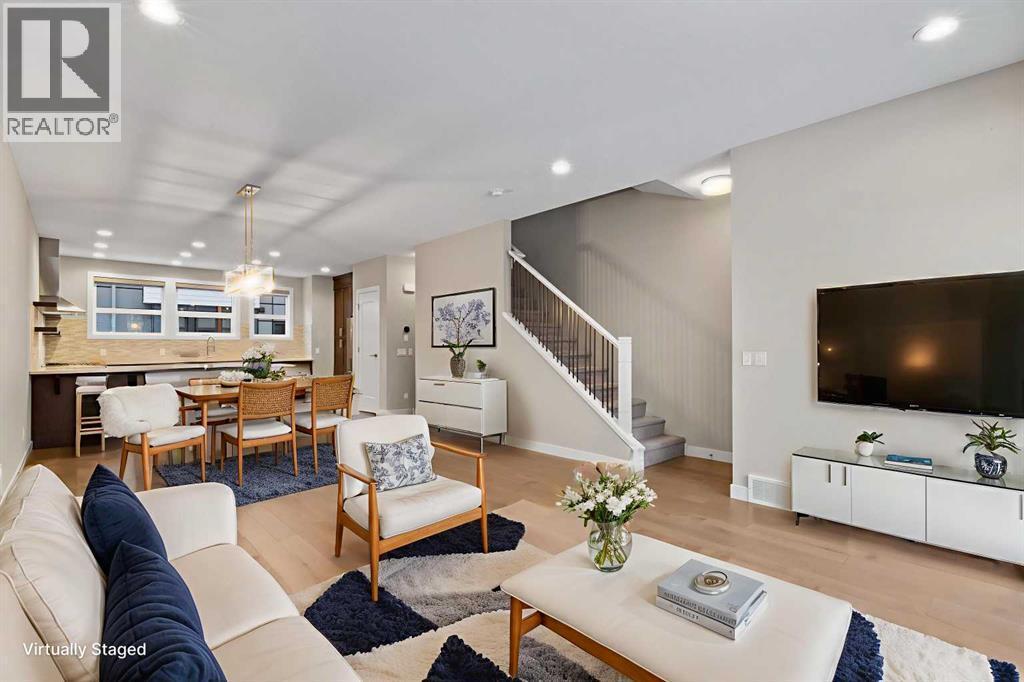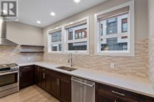 Experience modern, executive townhome living in the highly sought-after University District. This home offers a spacious 1,660 sqft of meticulously designed air conditioned space., overlooking the quiet inner courtyard. The ground floor provides direct entry from the double attached garage into a spacious den/office. This versatile flex space is perfect for a home-based business, gym, or additional storage. The main living level is an entertainer's dream, featuring high ceilings and an open-concept layout. The gourmet, U-shaped kitchen is highlighted by a gas stove, sleek quartz countertops, a generous breakfast island, and premium Bosch stainless steel appliances. The spacious dining and living areas lead to your private deck, which offers a view over the complex’s inner courtyard and community playground. A stylish two-piece powder room completes this level. The top floor is dedicated to rest and convenience. It features a practical upper-level laundry and the executive Dual Primary Suite layout—a premium feature consistent with the complex's top-selling homes. The main suite offers a double closet and a luxurious four-piece ensuite with a dual-sink vanity and walk-in shower. The second master retreat also features its own private four-piece ensuite and ample closet space. The added bonus is the well run complex is also pet friendly. Located in Calgary’s vibrant University District, this home provides an unmatched urban lifestyle. Enjoy walking distance to the U of C, Foothills Hospital, and a growing list of premium retail amenities. University District's popular main street offers an anchor Save-On-Foods, Cineplex VIP Theatres, OEB Breakfast Co., Analog Coffee, and more. This is a turn-key opportunity in an established, popular community. (id:6769)