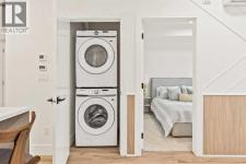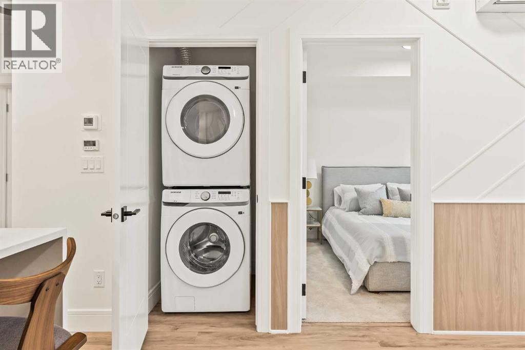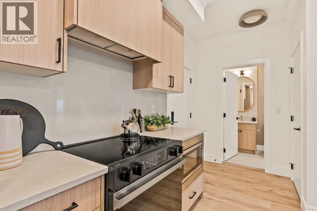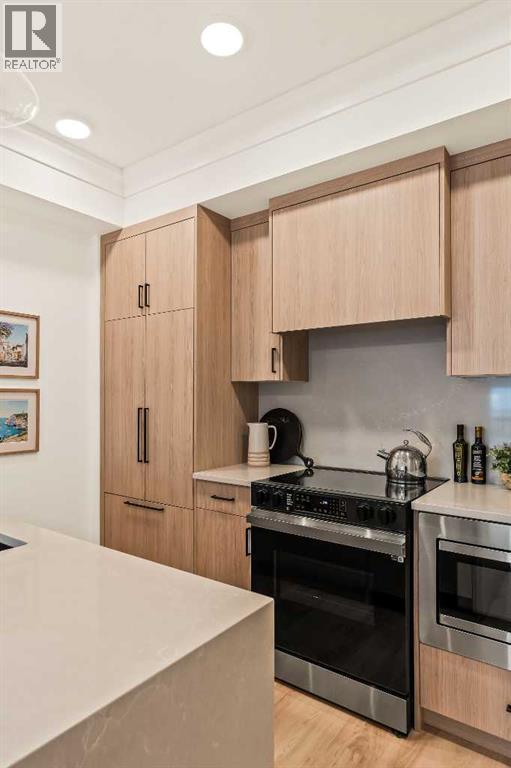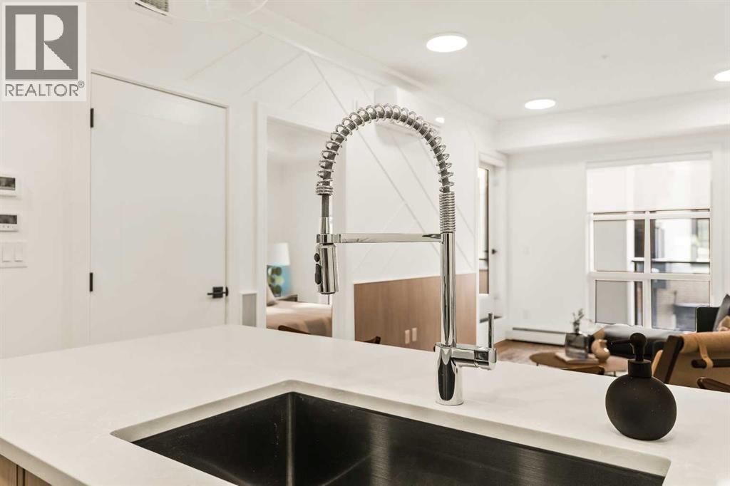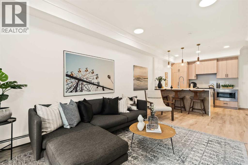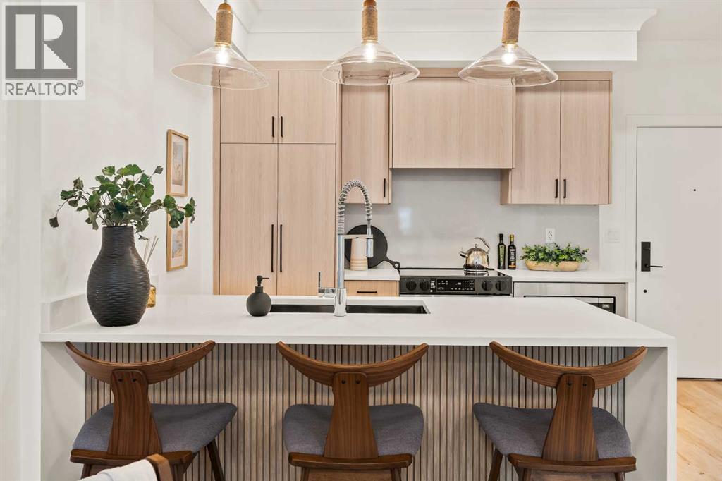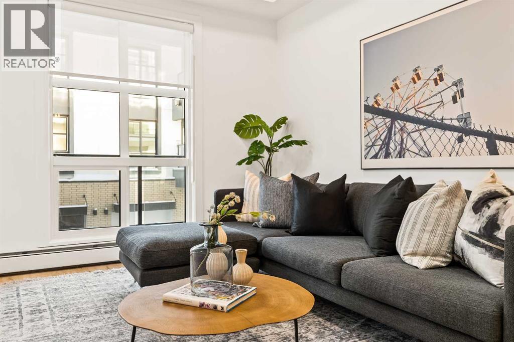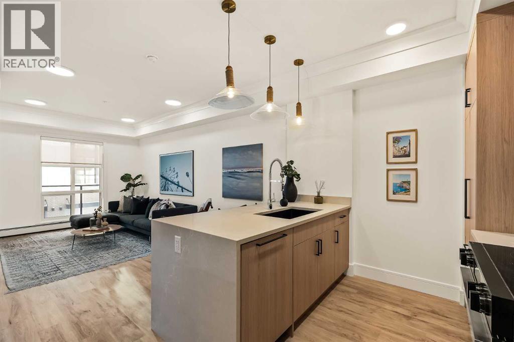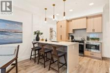 Exceptional value is offered with this brand new property that features nearly 500 square feet of living space and is situated in the central and amenity-rich community of the University District. This 1 bedroom, 1 bathroom condo features low condo fees, offering the perfect opportunity for first-time buyers, investors, or downsizers looking for maintenance-free living. Resilient luxury vinyl plank flooring greets you as you enter the home and flows throughout the main living area. This home offers an open-concept layout with 10-foot ceilings and large South-facing windows that flood the space with natural light throughout the day. The stunning kitchen features quartz countertops, a large peninsula with a waterfall edge and breakfast bar for additional seating, a built-in microwave, and an integrated refrigerator, dishwasher, and range hood, creating a clean and minimalist aesthetic. The kitchen overlooks the living and dining areas - making this the perfect space for entertaining friends and family. The spacious bedroom offers plush carpet underfoot, a double closet, and a large South-facing window. The 4-piece bathroom features a large vanity, a deep bathtub, subway tile backsplash throughout, a linen closet, and ceramic tile flooring. Step outside onto your oversized 178 square foot covered balcony that offers plenty of room for patio furniture, a barbecue, and even garden boxes for those with a green thumb. Additional features that round out this unit include air conditioning, in-unit laundry, and secure underground parking to keep your vehicle safe and out of the elements. This well-managed building offers secure bike storage, an EV vehicle charger, and visitor parking for your guests. Centrally located in the heart of the University District, this property offers the perfect walkable location and is only a short walk to nearby cafes, restaurants, shopping, entertainment, green space, the University of Calgary, Alberta Children's Hospital, and Market Mall. With in only a 5-minute walk you have top restaurants like OEB Breakfast Co., UNA Pizza + Wine, Native Tongues, and The Banquet. Daily commuting is easy with nearby public transit stops and quick driving access to Shaganappi Trail and 16th Avenue. This property offers the best value in the Dean’s Landing development based on it’s size and price point so don’t miss out on this incredible opportunity! (id:6769)